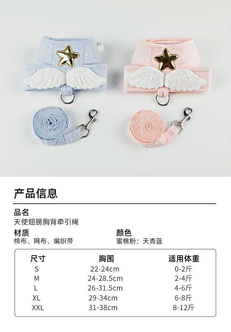 天使翅膀猫咪牵引绳背心式牵引带狗狗幼猫外出牵引防挣脱宠物用品