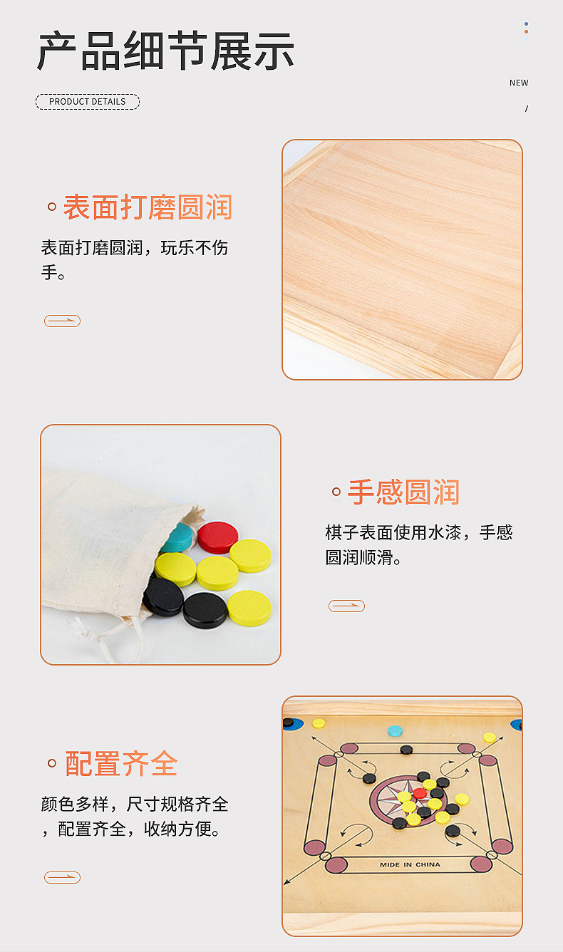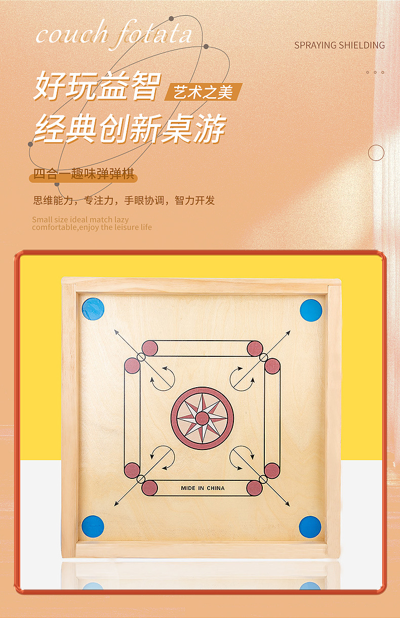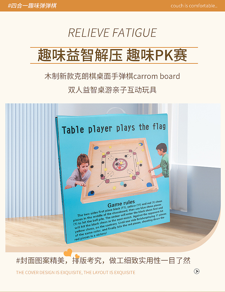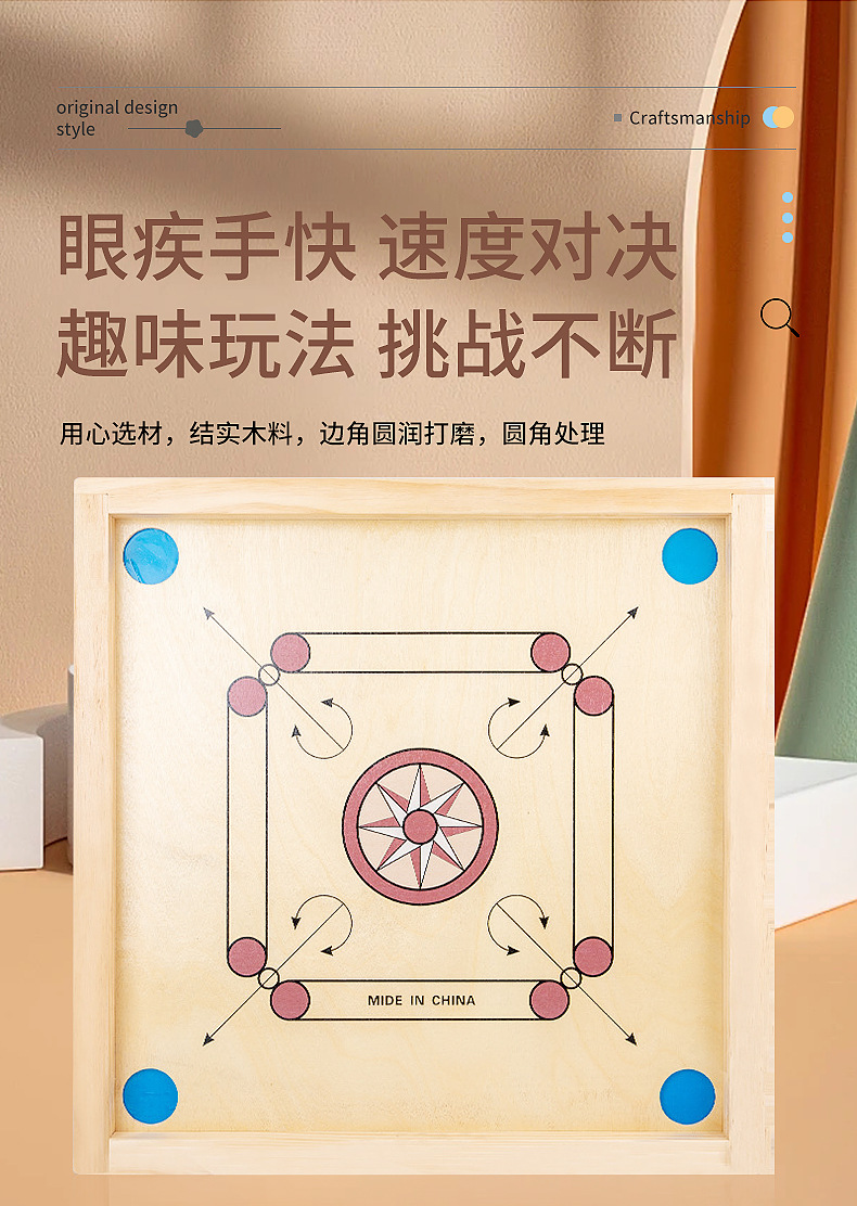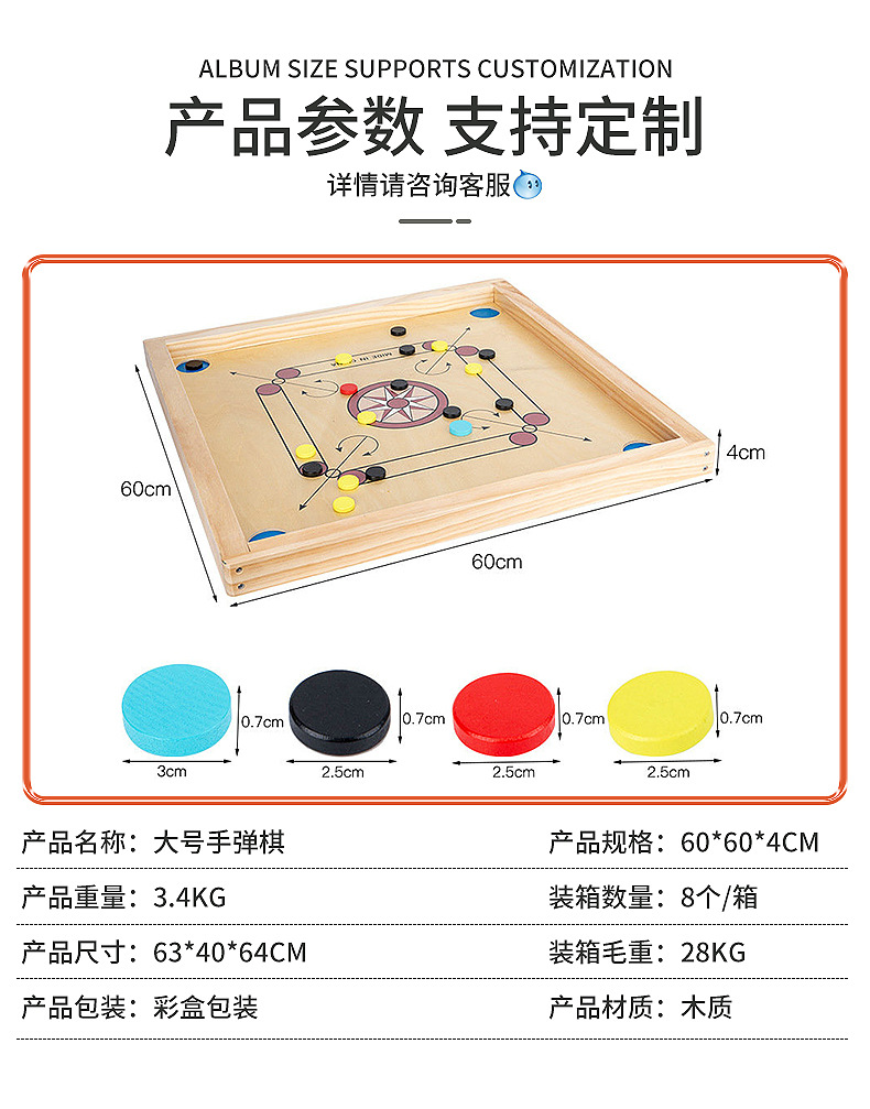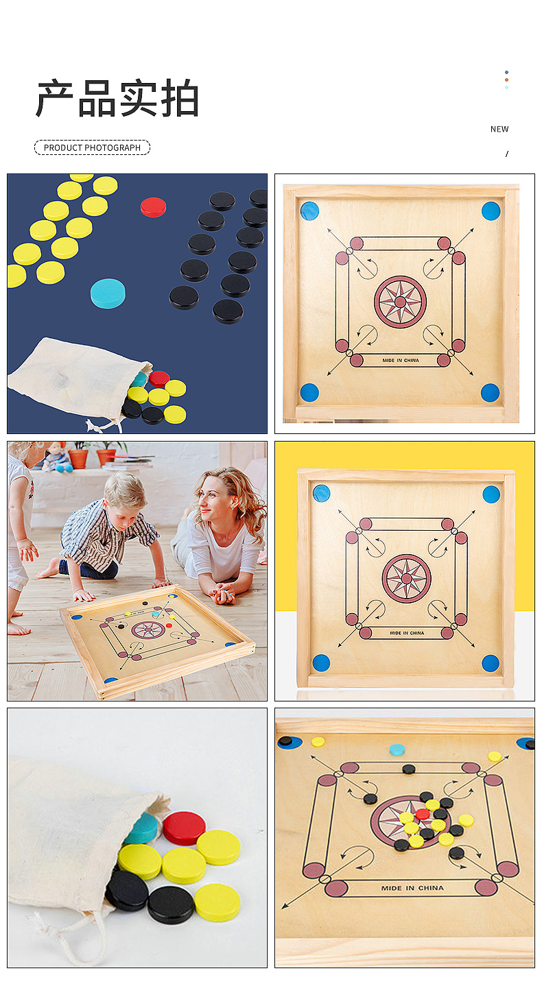 木制新款克朗棋桌面手弹棋carrom board双人益智桌游亲子互动玩具