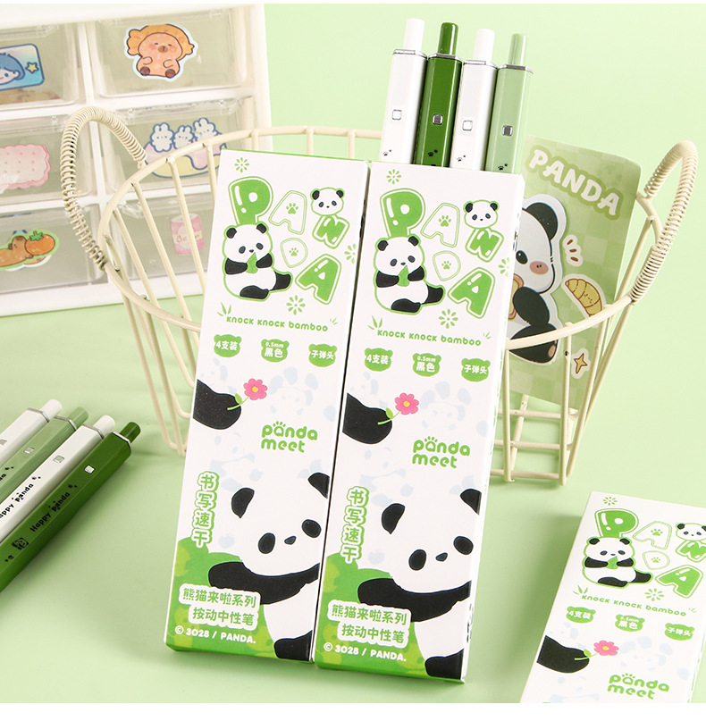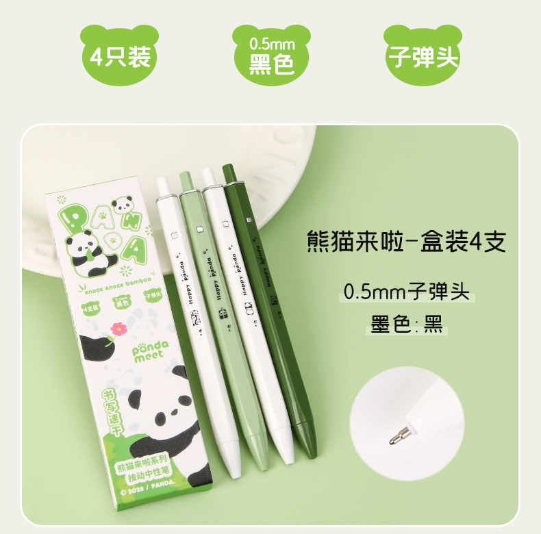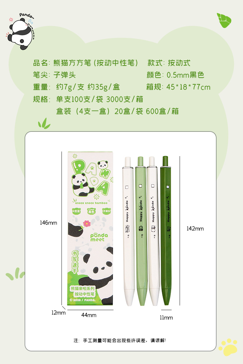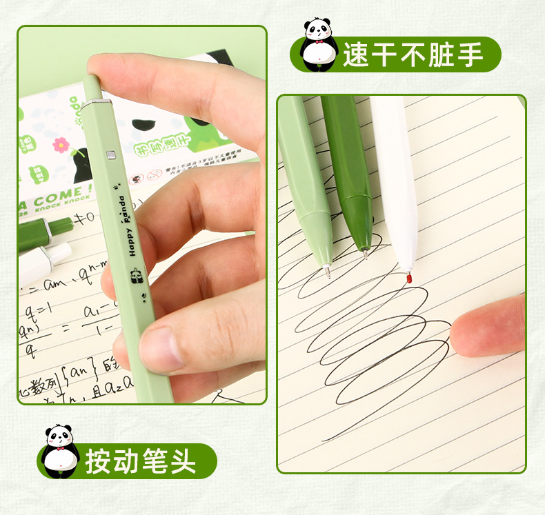 新款熊猫方方笔卡通顺滑0.5中性笔学生考试刷题速干黑色水笔批发