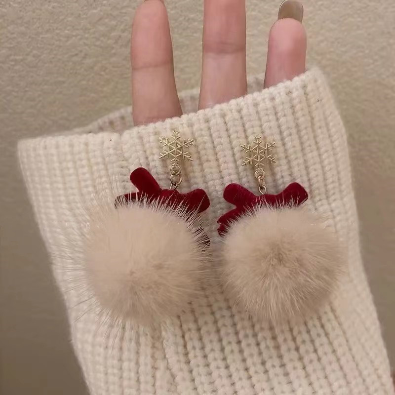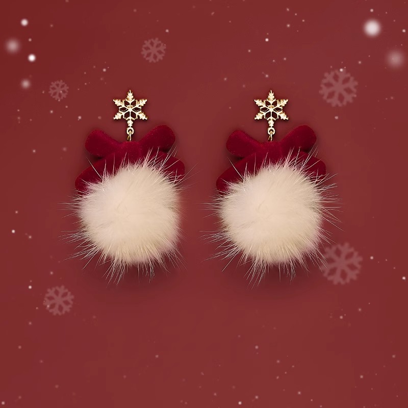 专注耳夹圣诞秋冬毛球蝴蝶结无耳洞耳夹女小众设计感高级甜美耳饰