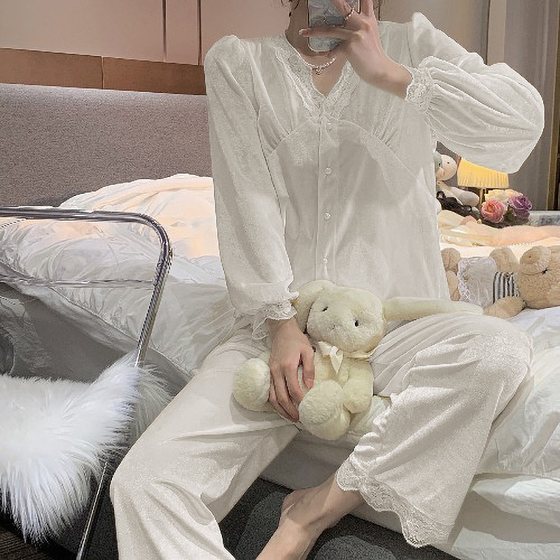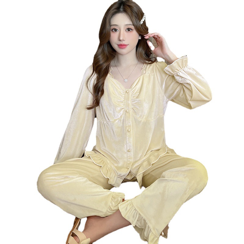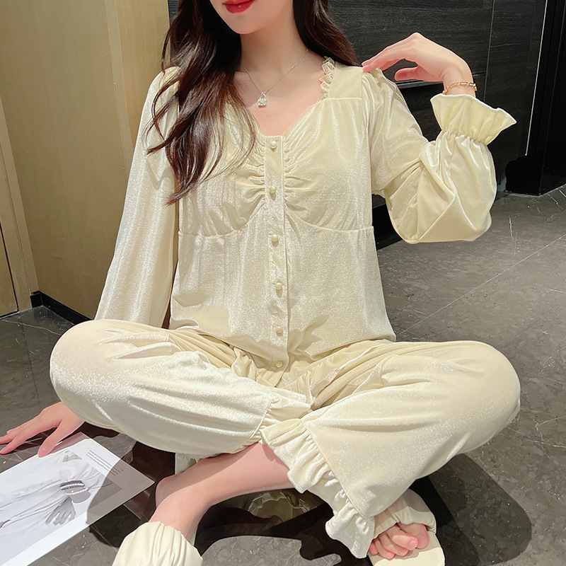 金丝绒睡衣女款春秋季长袖长裤新款秋冬高级感带胸垫家居服批发