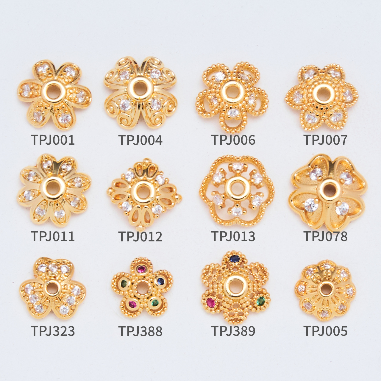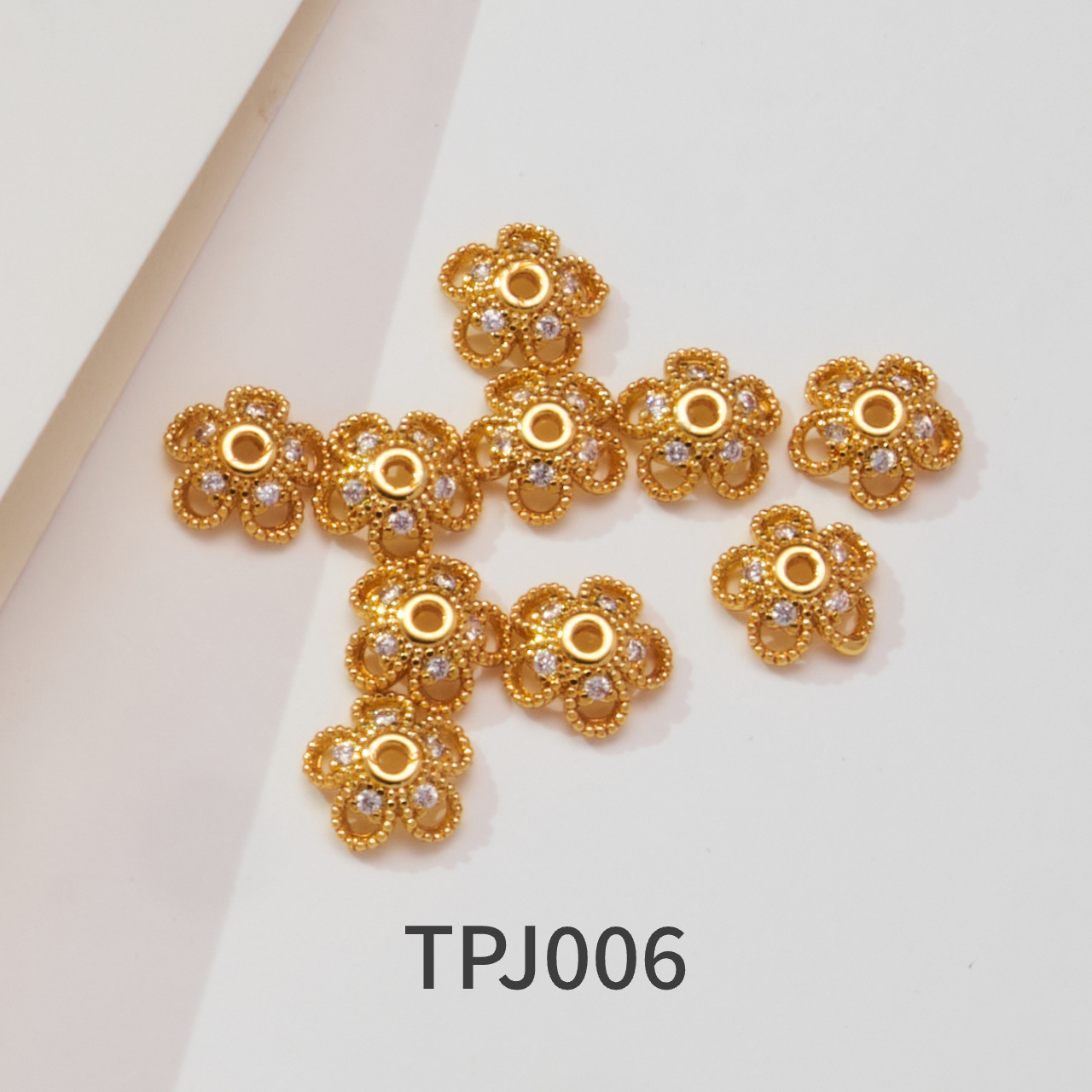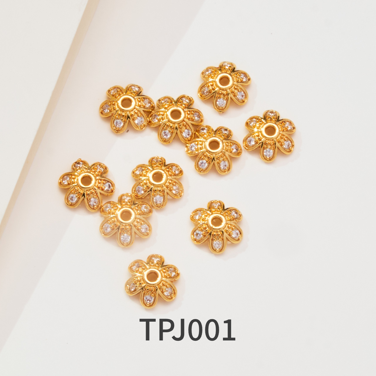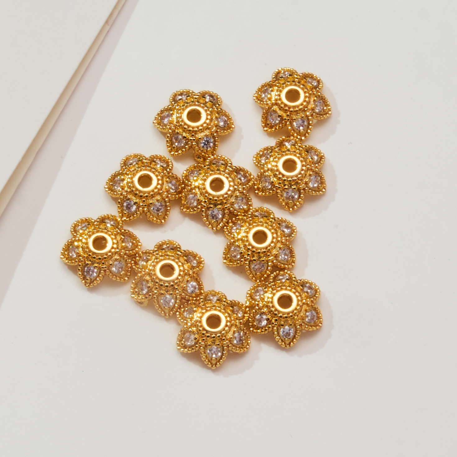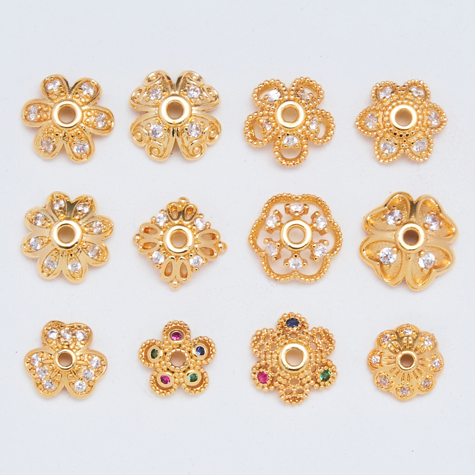 铜镀18K金强保色微镶锆石花托花帽珠托雪花片手串手链diy饰品配件