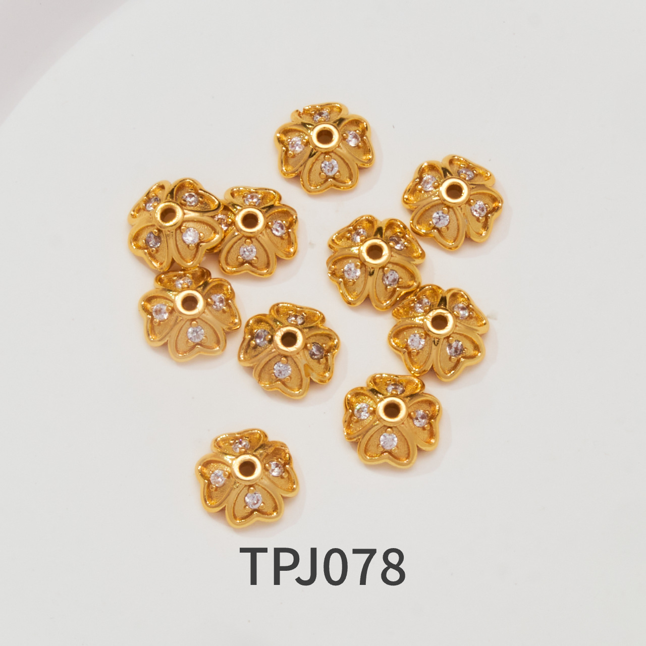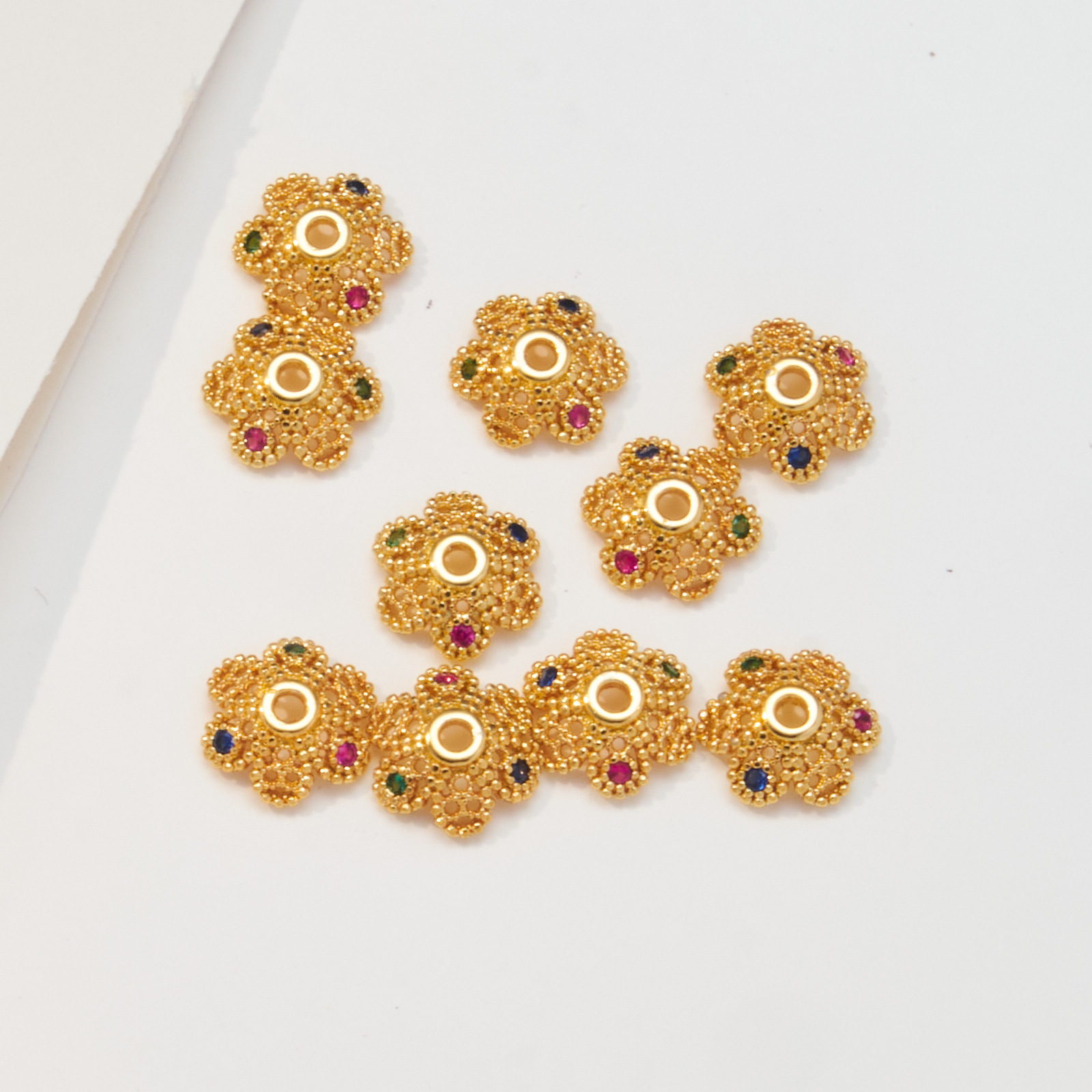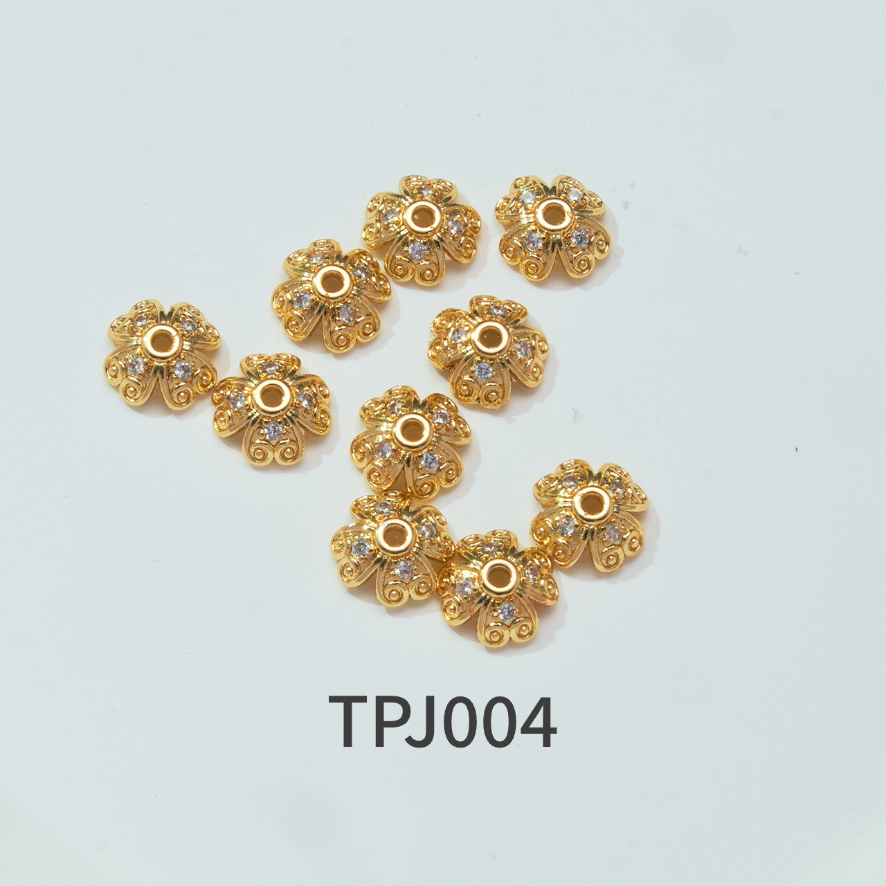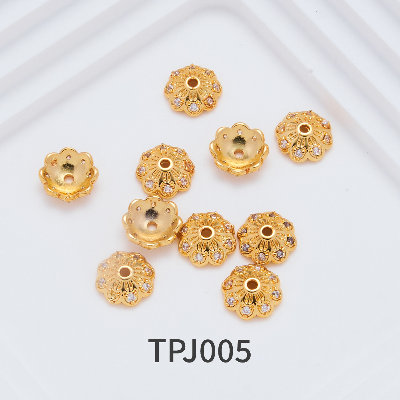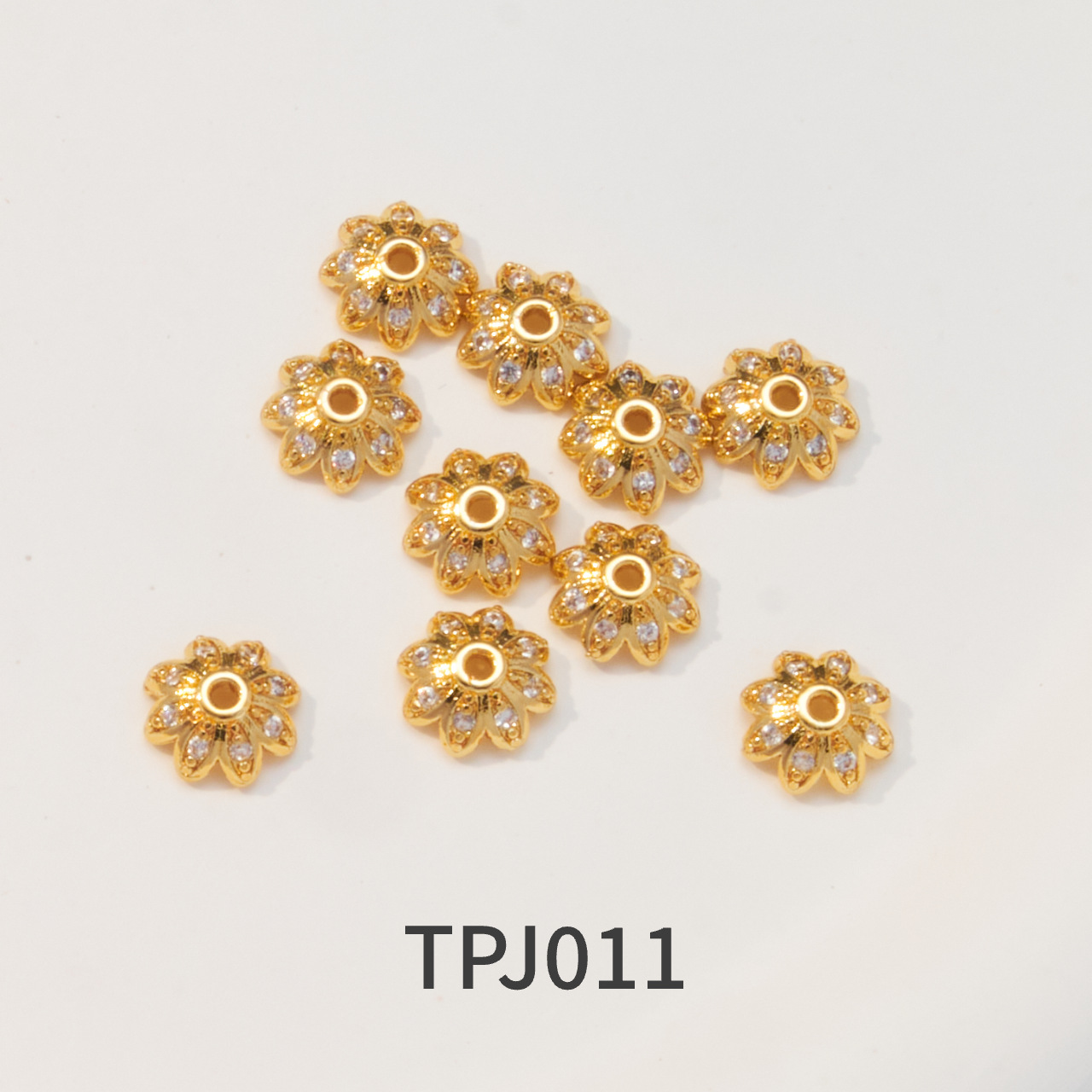 铜镀18K金强保色微镶锆石花托花帽珠托雪花片手串手链diy饰品配件