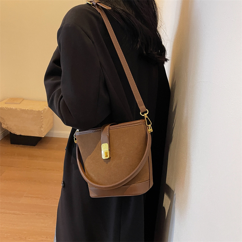 秋冬女包磨砂水桶包高级感大容量单肩斜挎气质小众手提腋下小包包