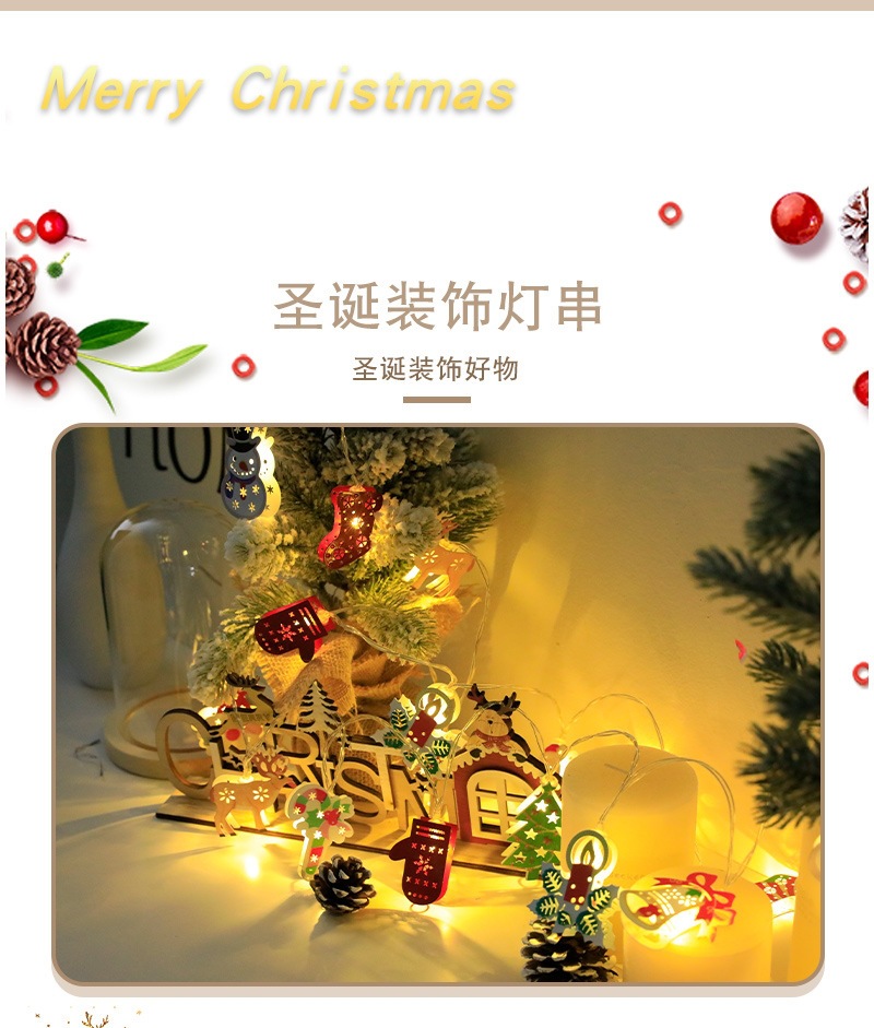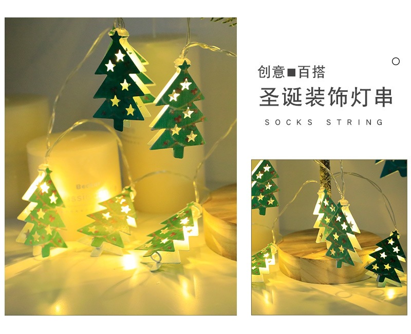 外贸专供圣诞节装饰灯光氛围灯圣诞树老人雪花小鹿满天星铁艺灯串