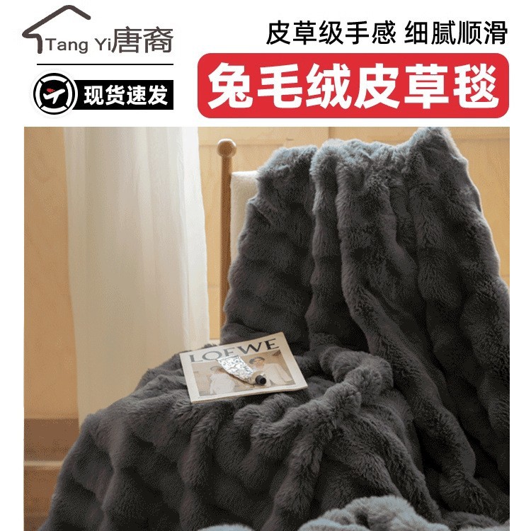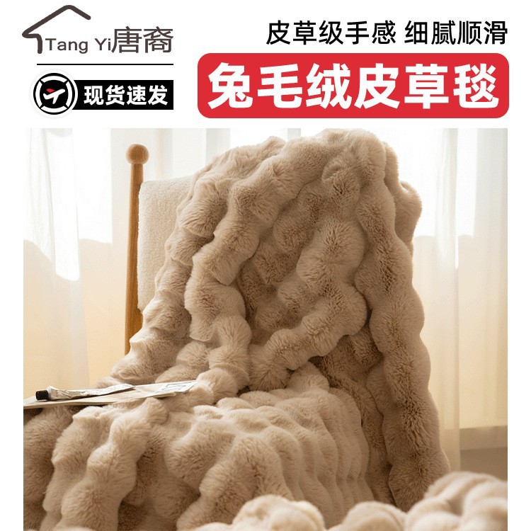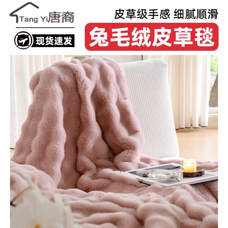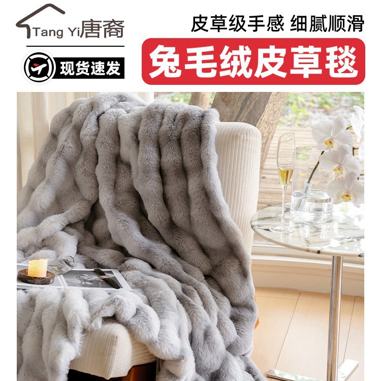 轻奢兔毛绒毛毯长毛办公室披肩小毯子冬季午睡毯沙发毯高级感盖毯