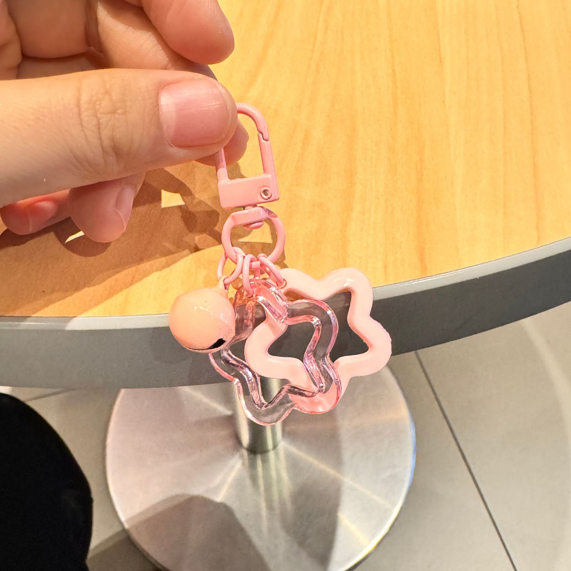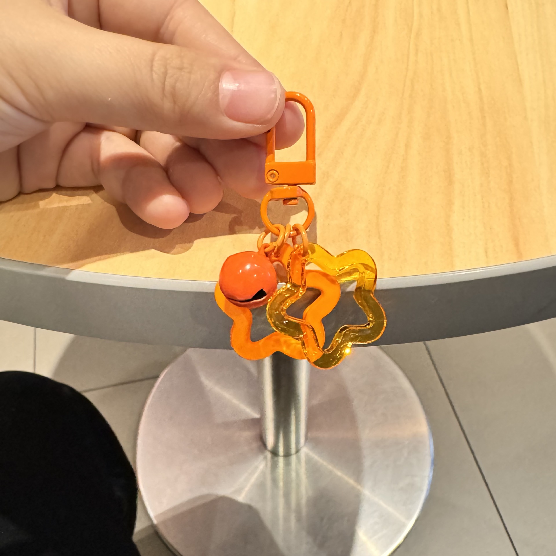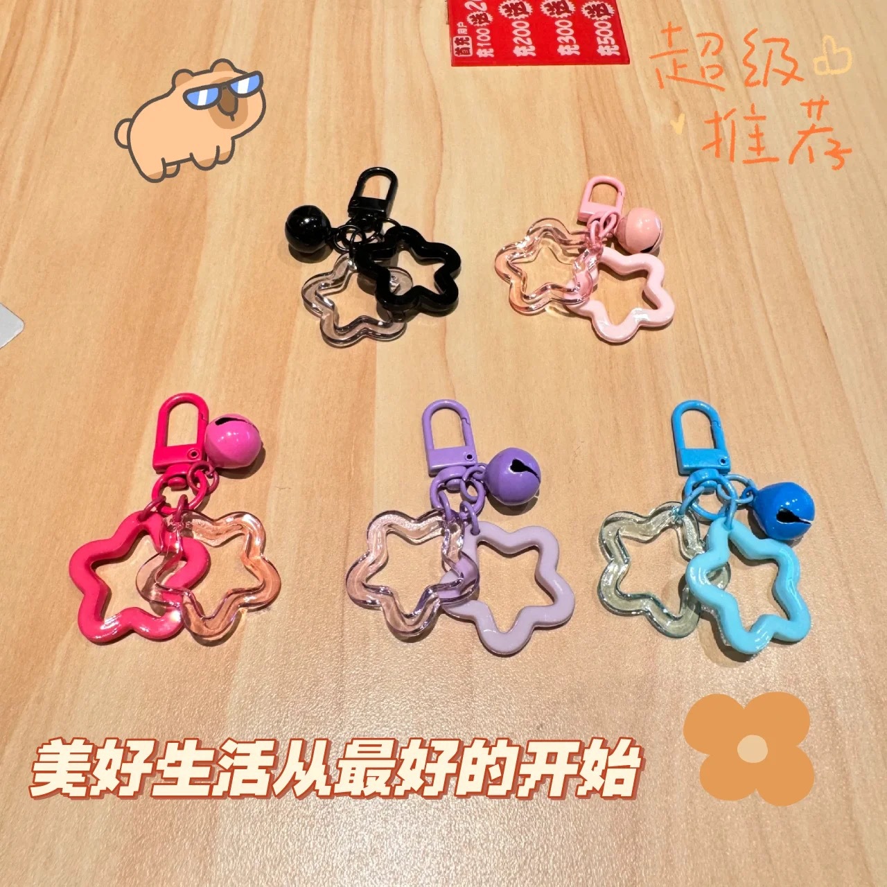 钥匙扣挂件亚克力镂空五角星彩色铃铛 饰品配饰耳机套女包包装饰