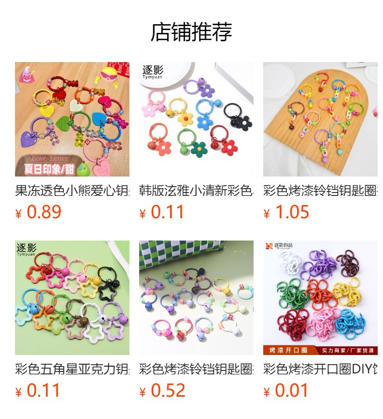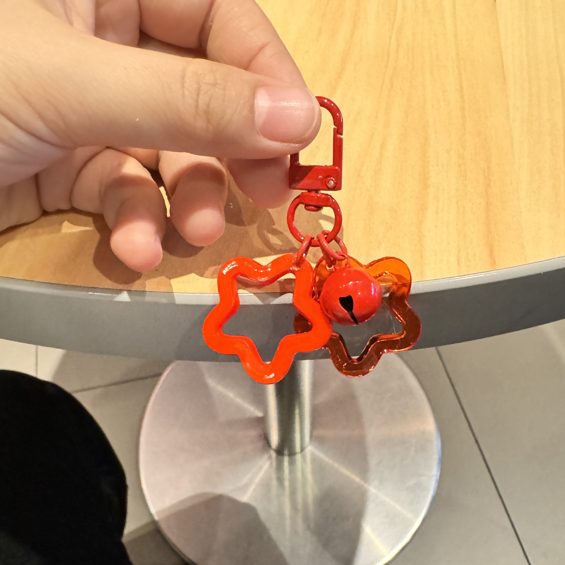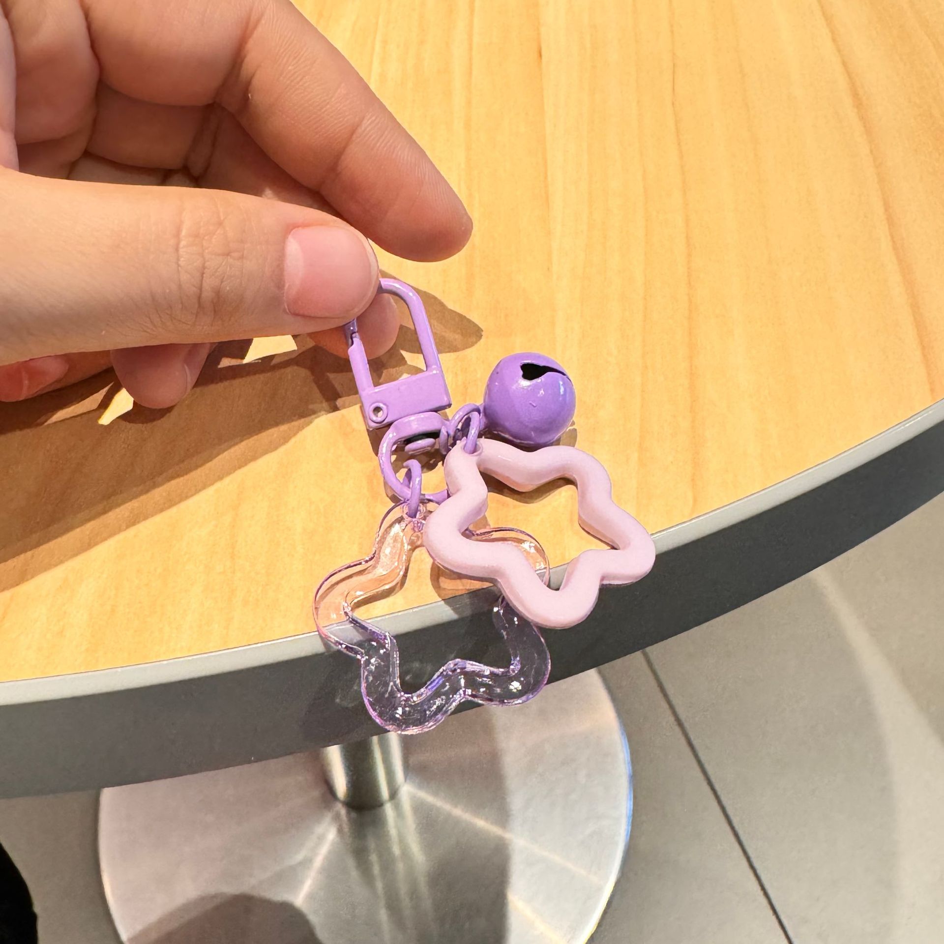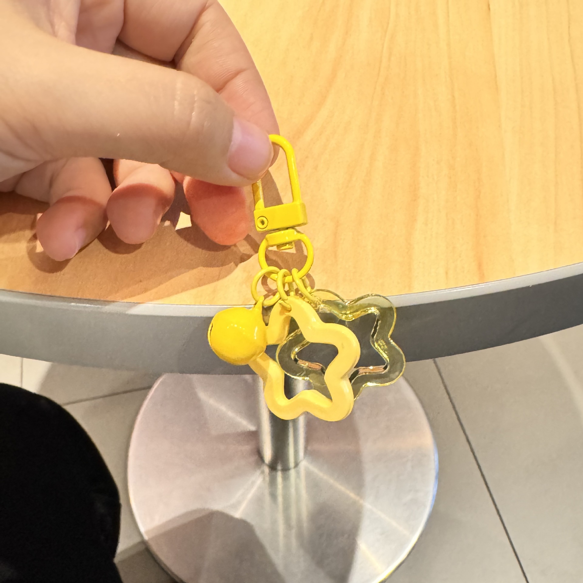 钥匙扣挂件亚克力镂空五角星彩色铃铛 饰品配饰耳机套女包包装饰