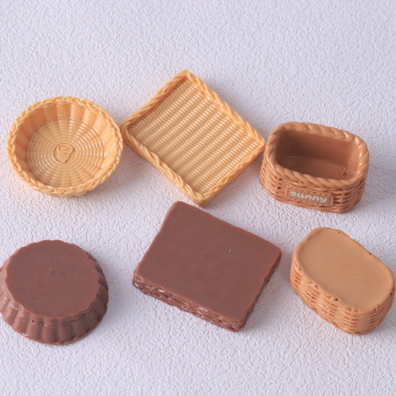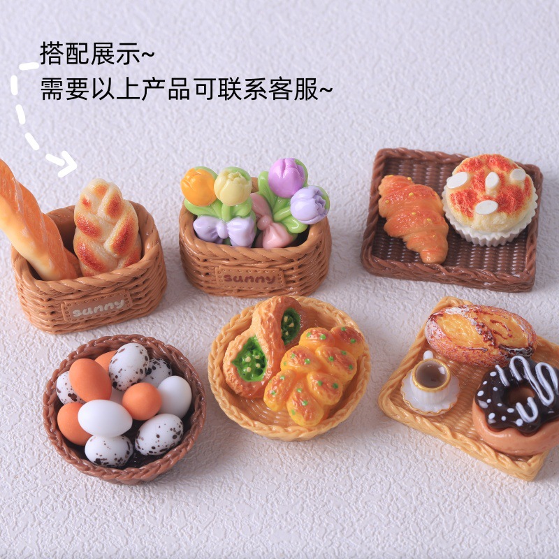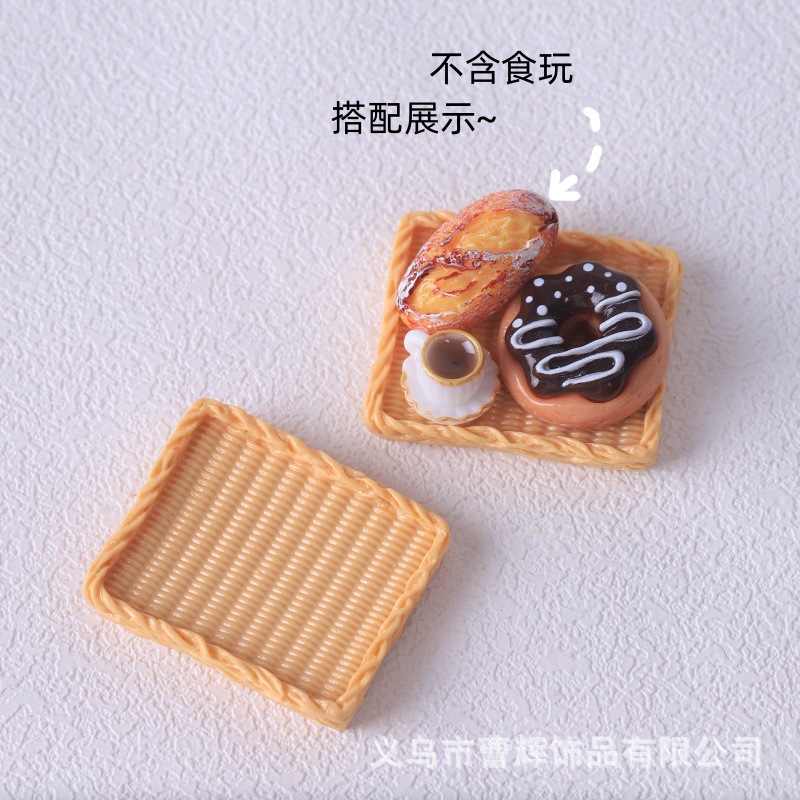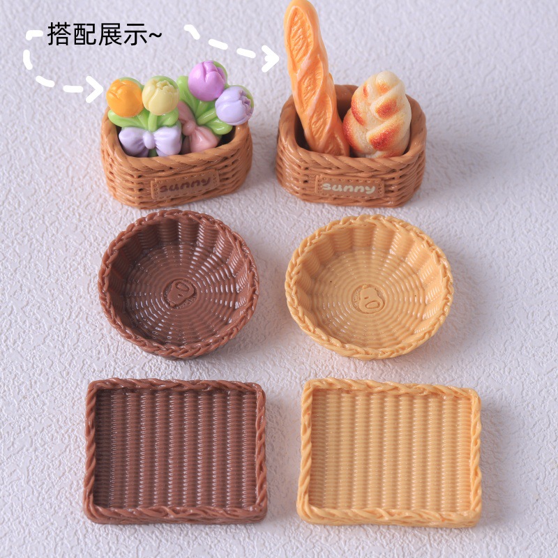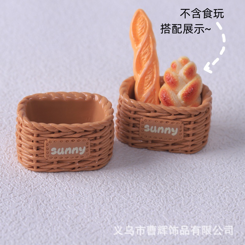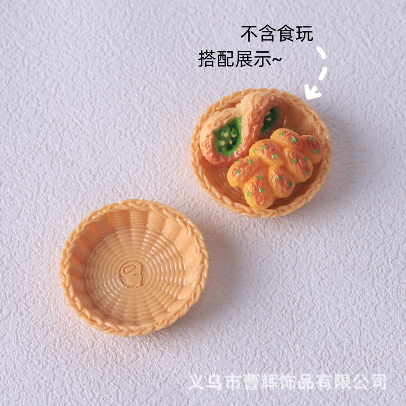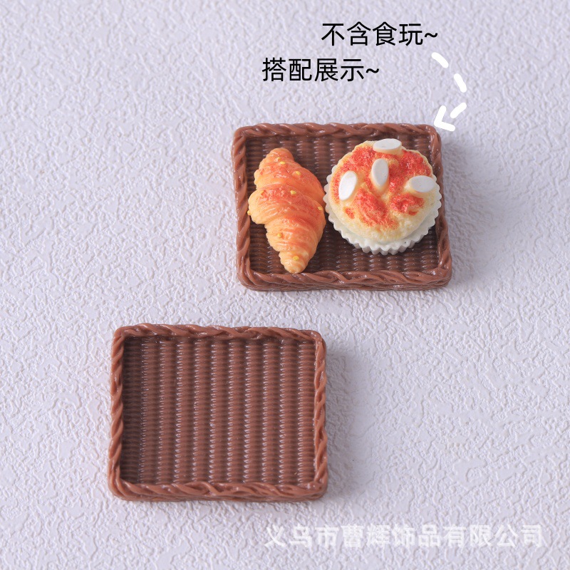 仿真迷你面包筐小竹篮 面包托盘 diy食玩树脂配件 娃娃屋玩具摆件