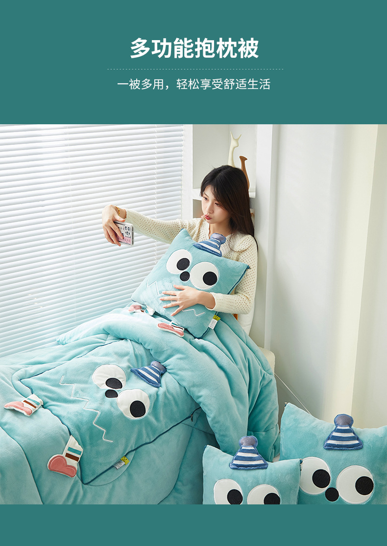 牛奶绒抱枕被子两用二合一加厚午睡毯子办公室枕头被车载车用靠枕