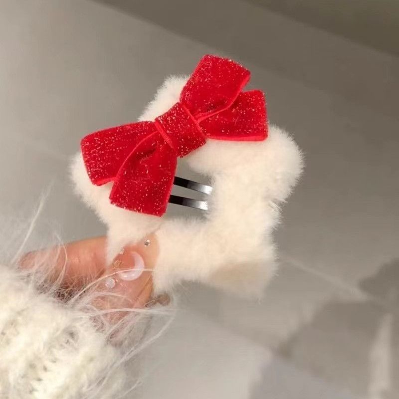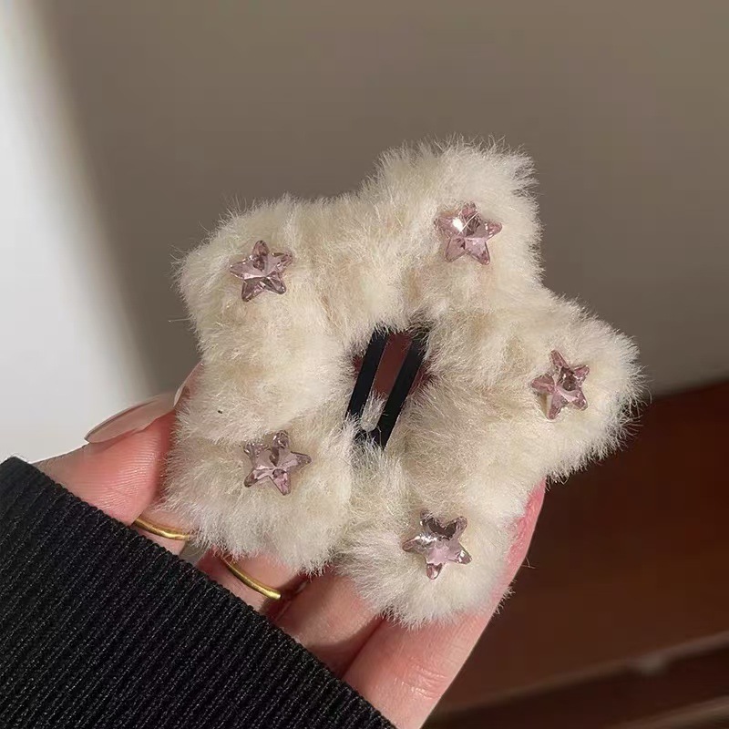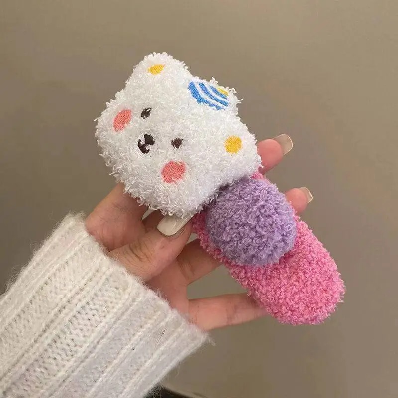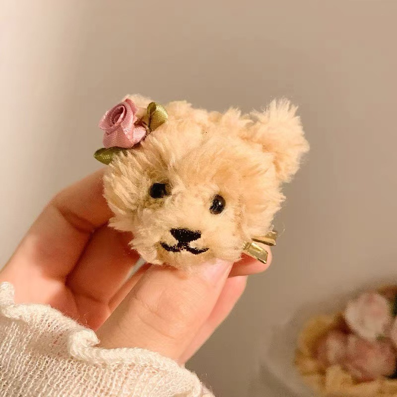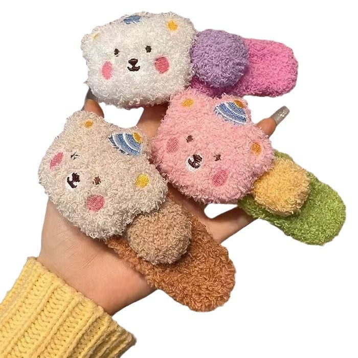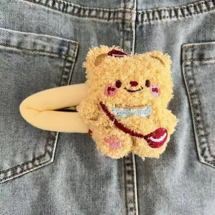 毛绒布丁小熊可爱鸭嘴夹大号发夹头饰刘海2024新款后脑勺少女日系