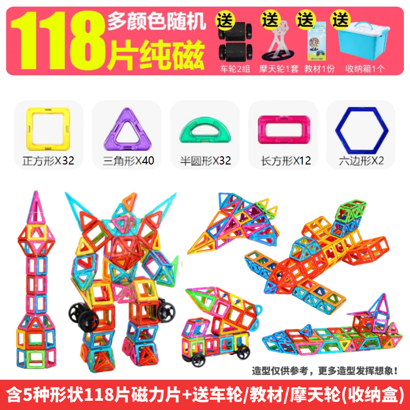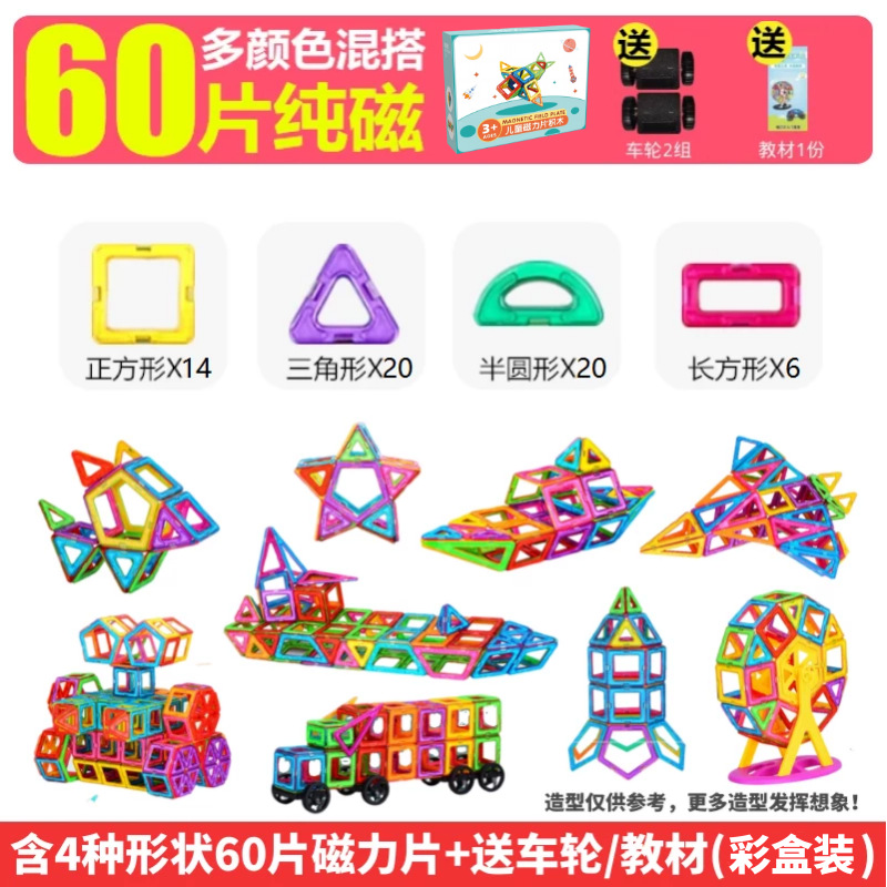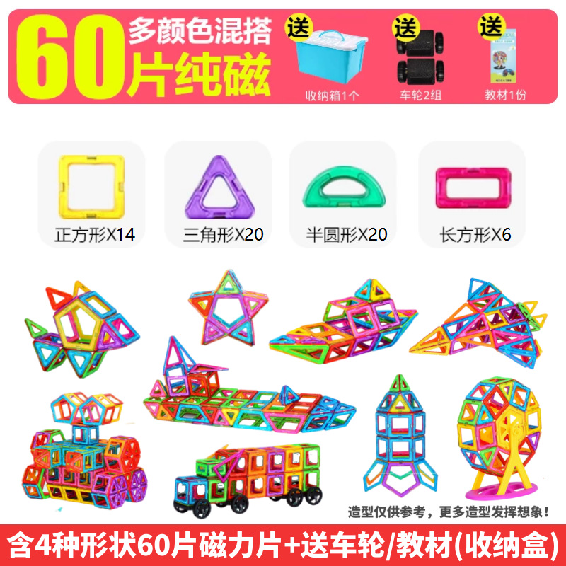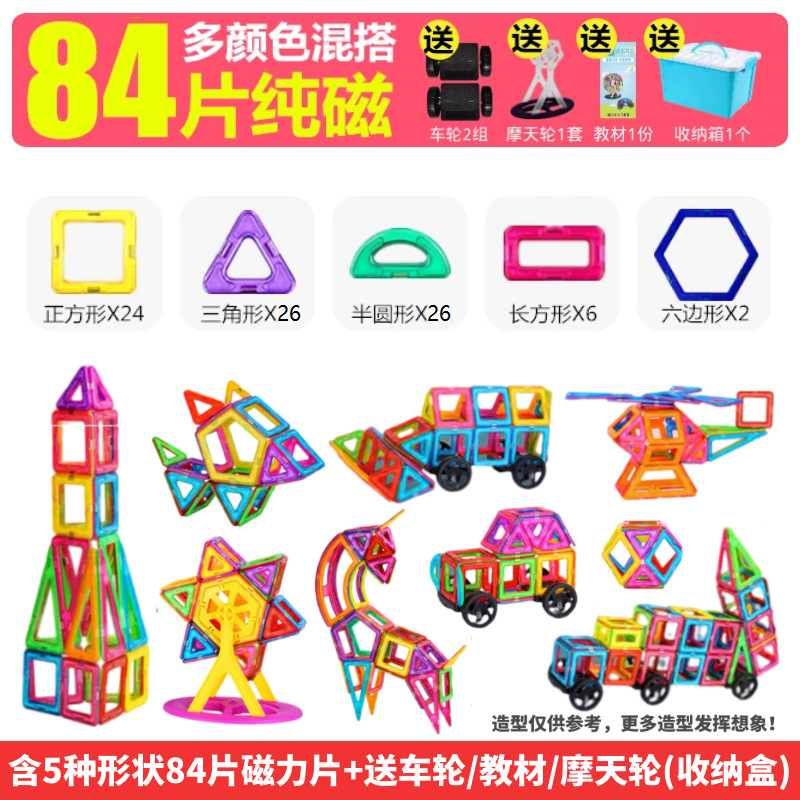 批发儿童磁力片积木吸铁石玩具磁性铁男女孩拼装益智跨境一件代发