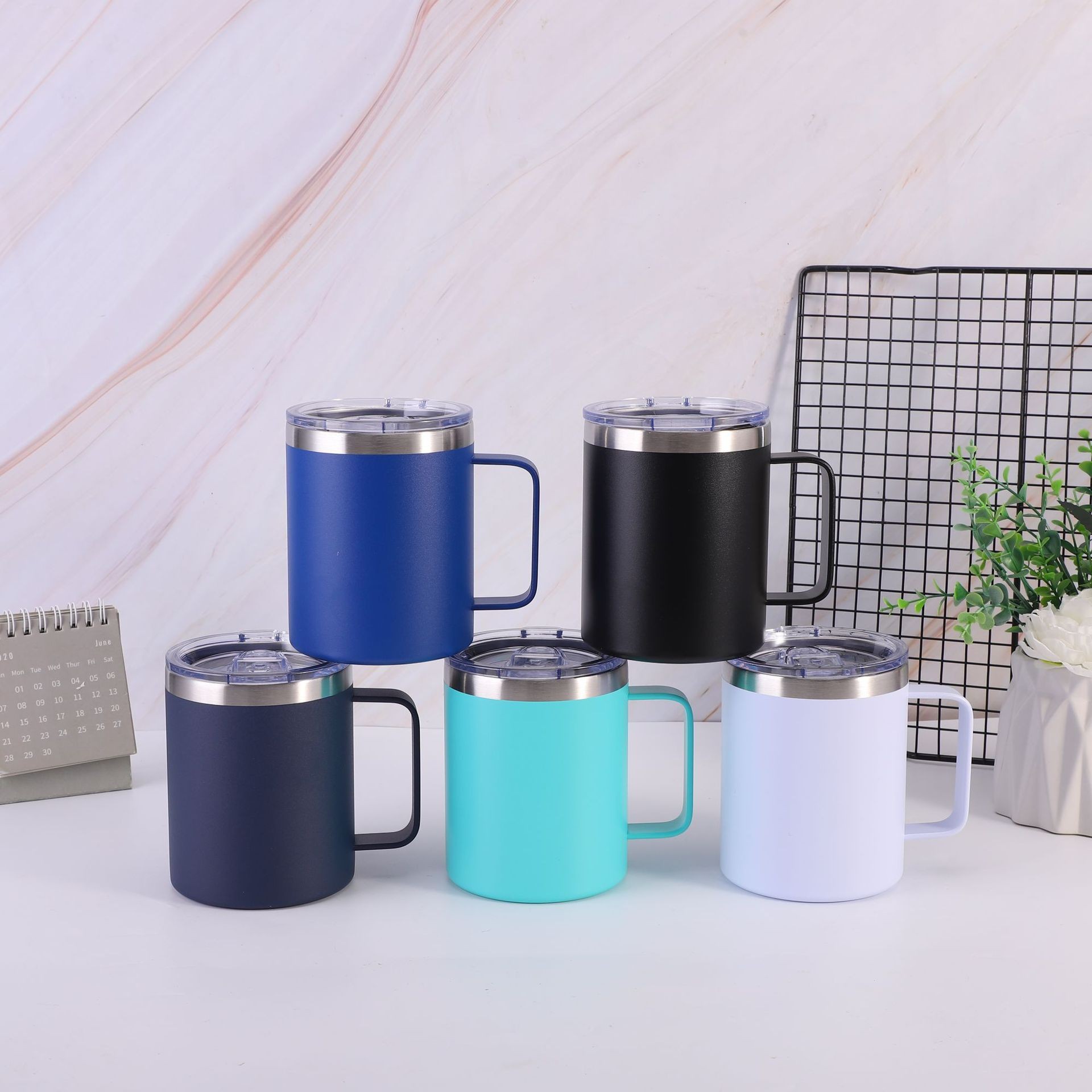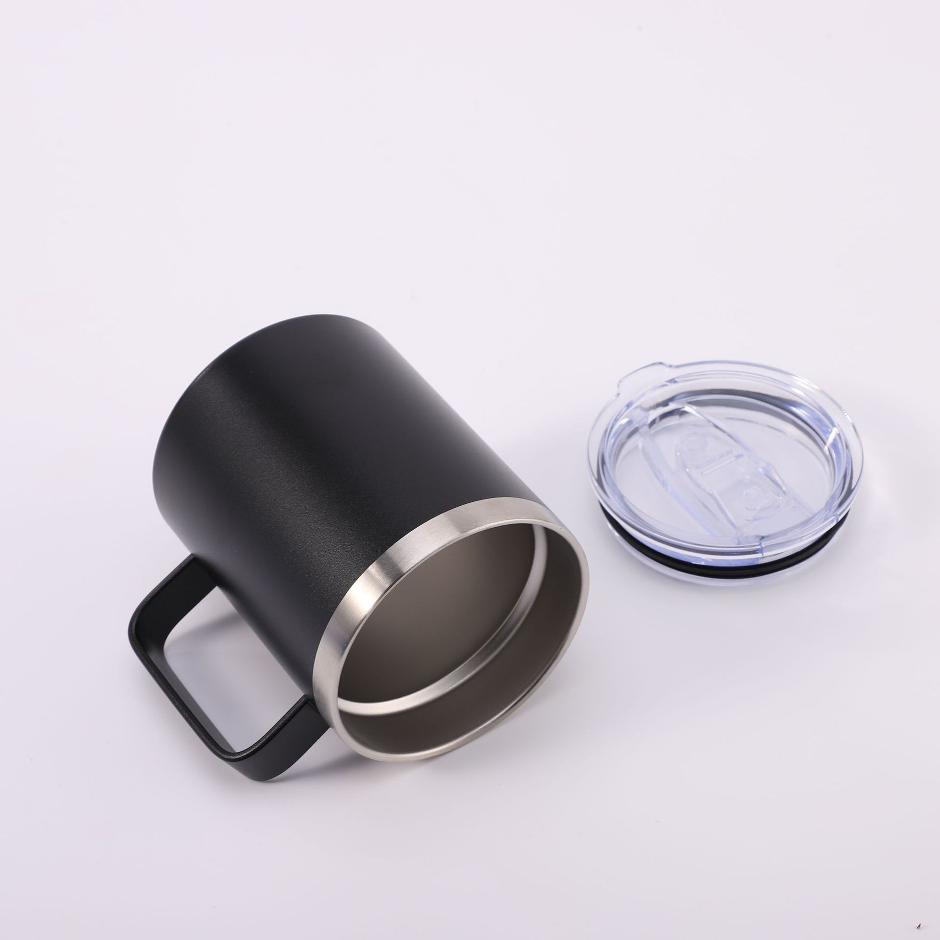 12oz带手柄马克杯304不锈钢保温杯创意便携带盖办公啤酒杯