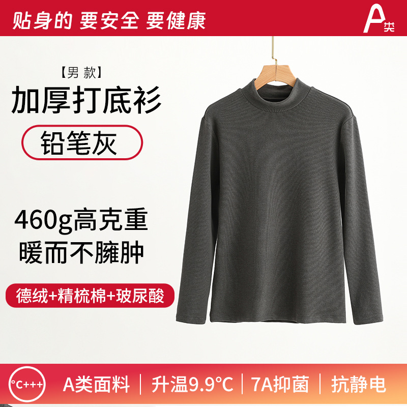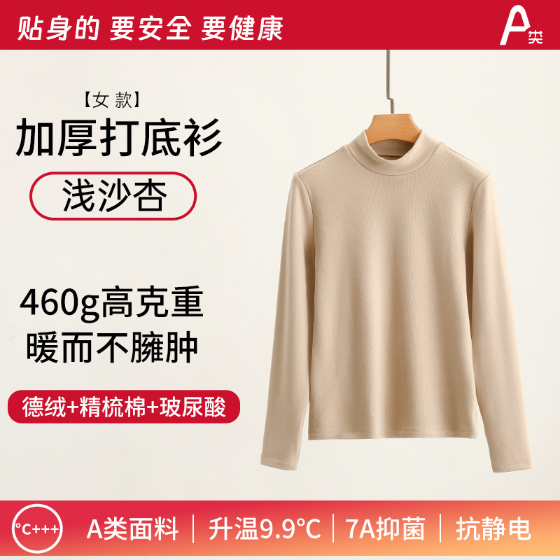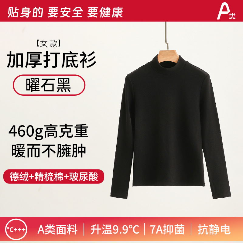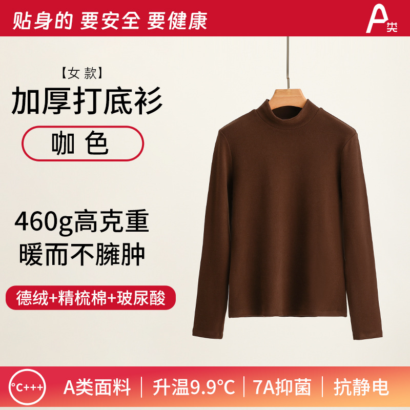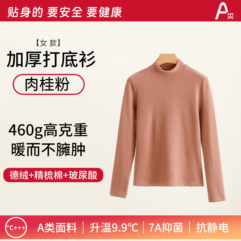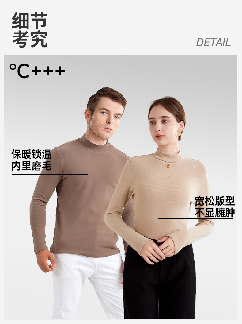 加厚460g德绒加绒女半高领打底衫可外穿保暖内衣男士上衣批发秋衣
