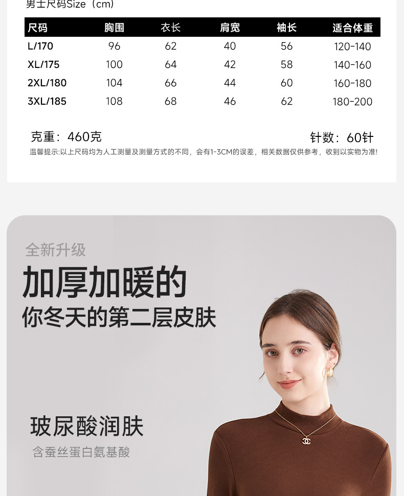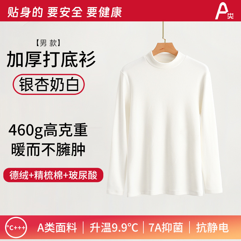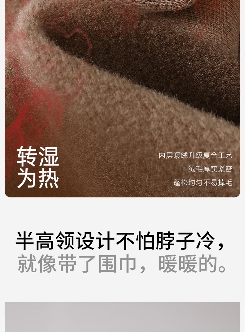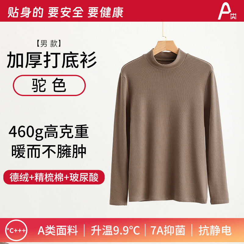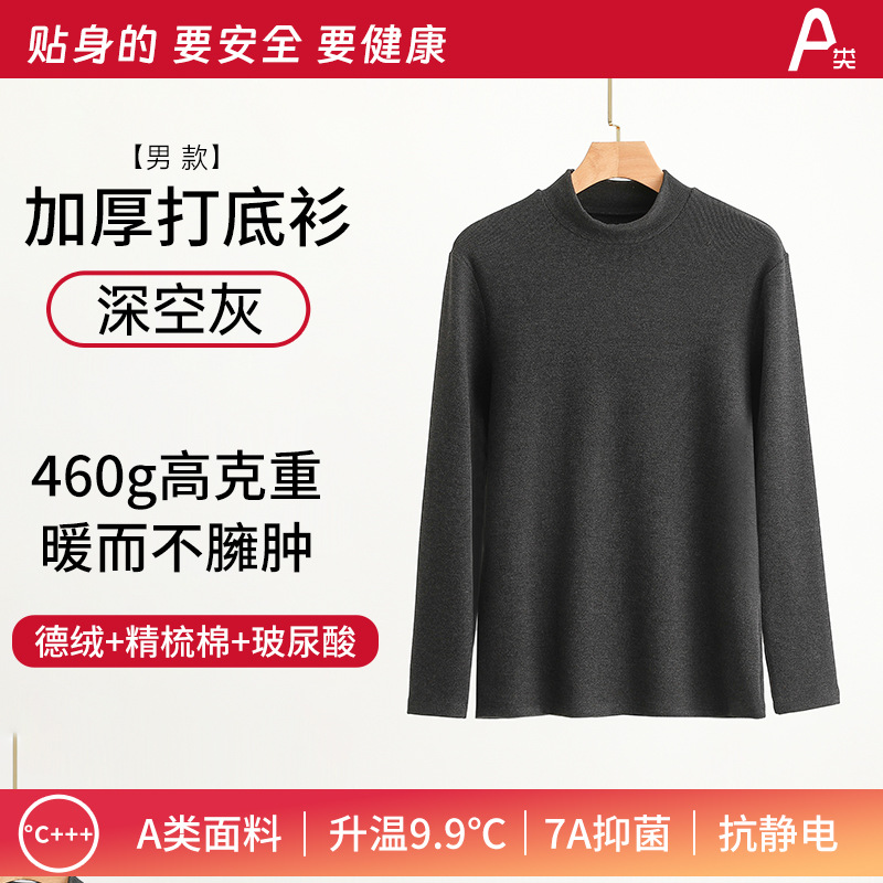 加厚460g德绒加绒女半高领打底衫可外穿保暖内衣男士上衣批发秋衣