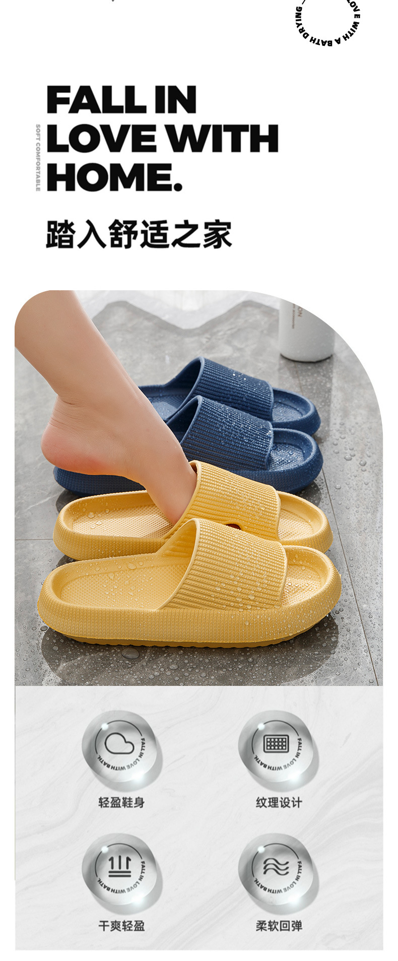 踩屎感厚底家用拖鞋女夏季家居防滑室内室外情侣浴室拖鞋跨境专供