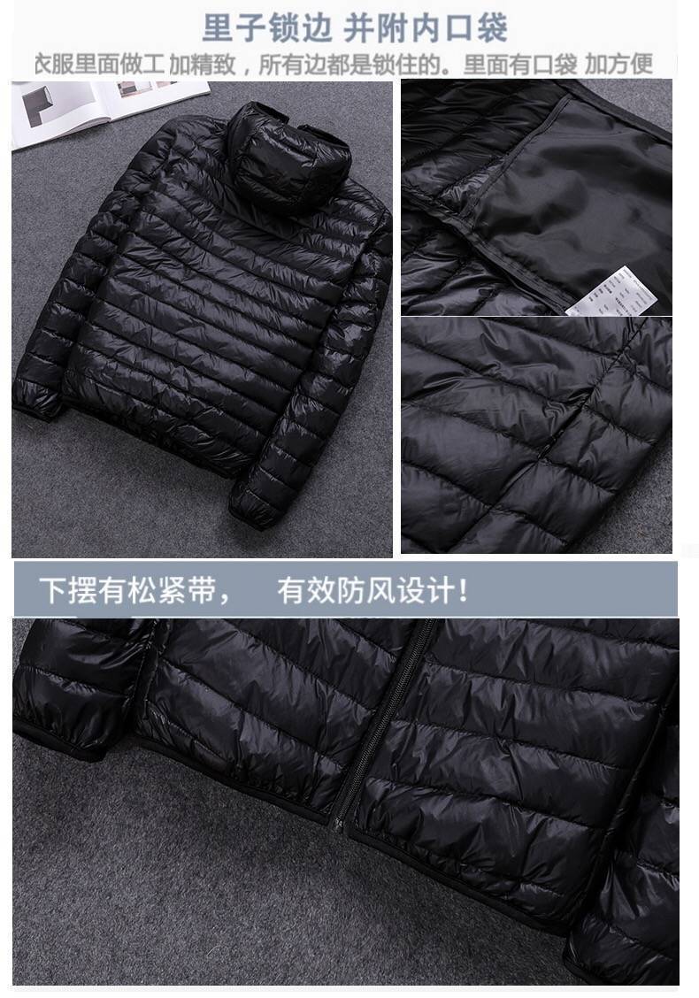 【飞繁羽绒】秋冬轻薄羽绒服男加大码短款连帽轻便款立领外套男装