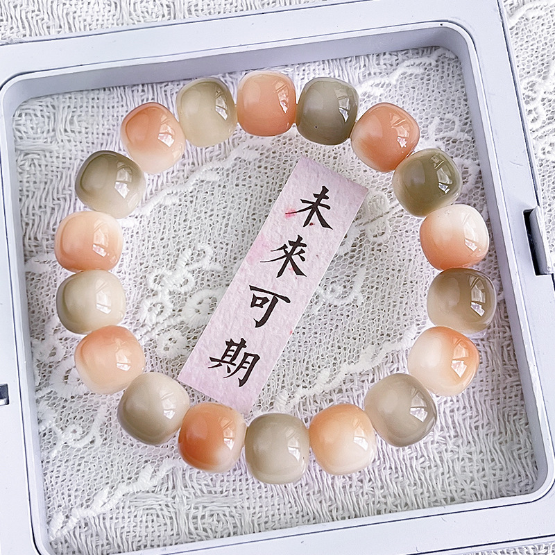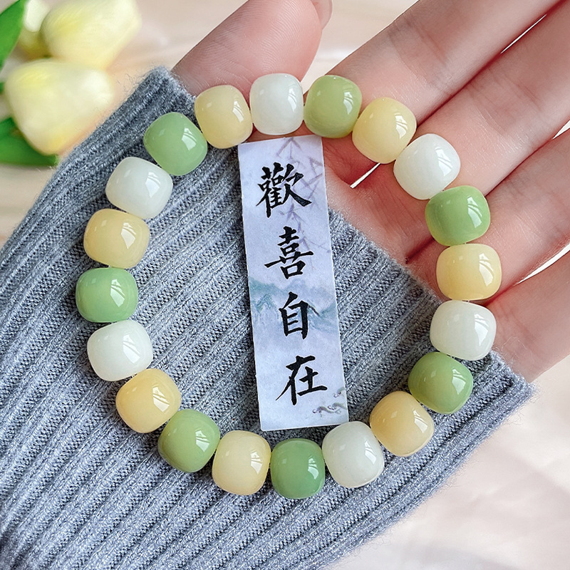 原生态白玉菩提根手串渐变绿单圈菩提文玩佛珠男女绕指柔手链批发