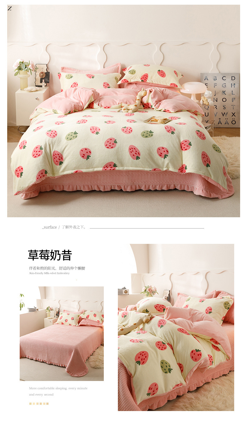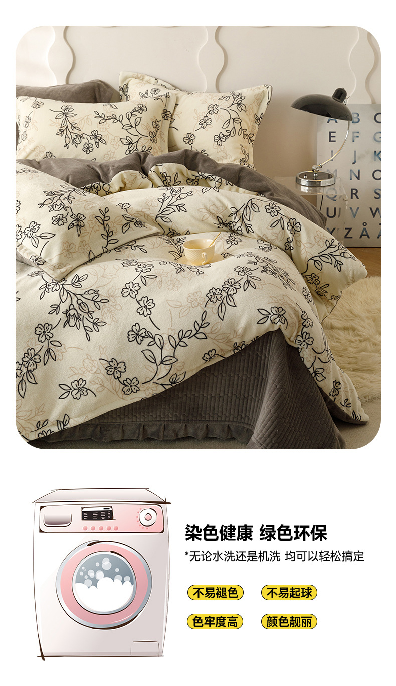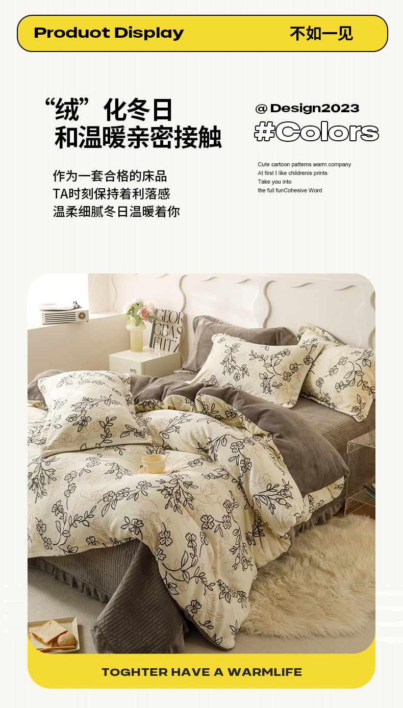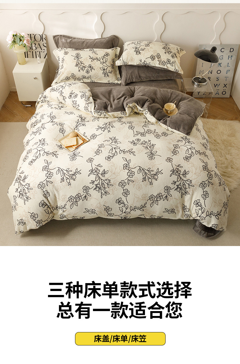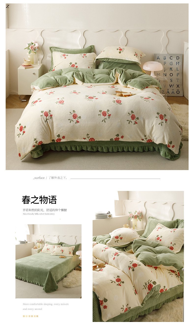 加厚冬款牛奶绒四件套床盖款床单床笠套件小清新南通家纺床上用品