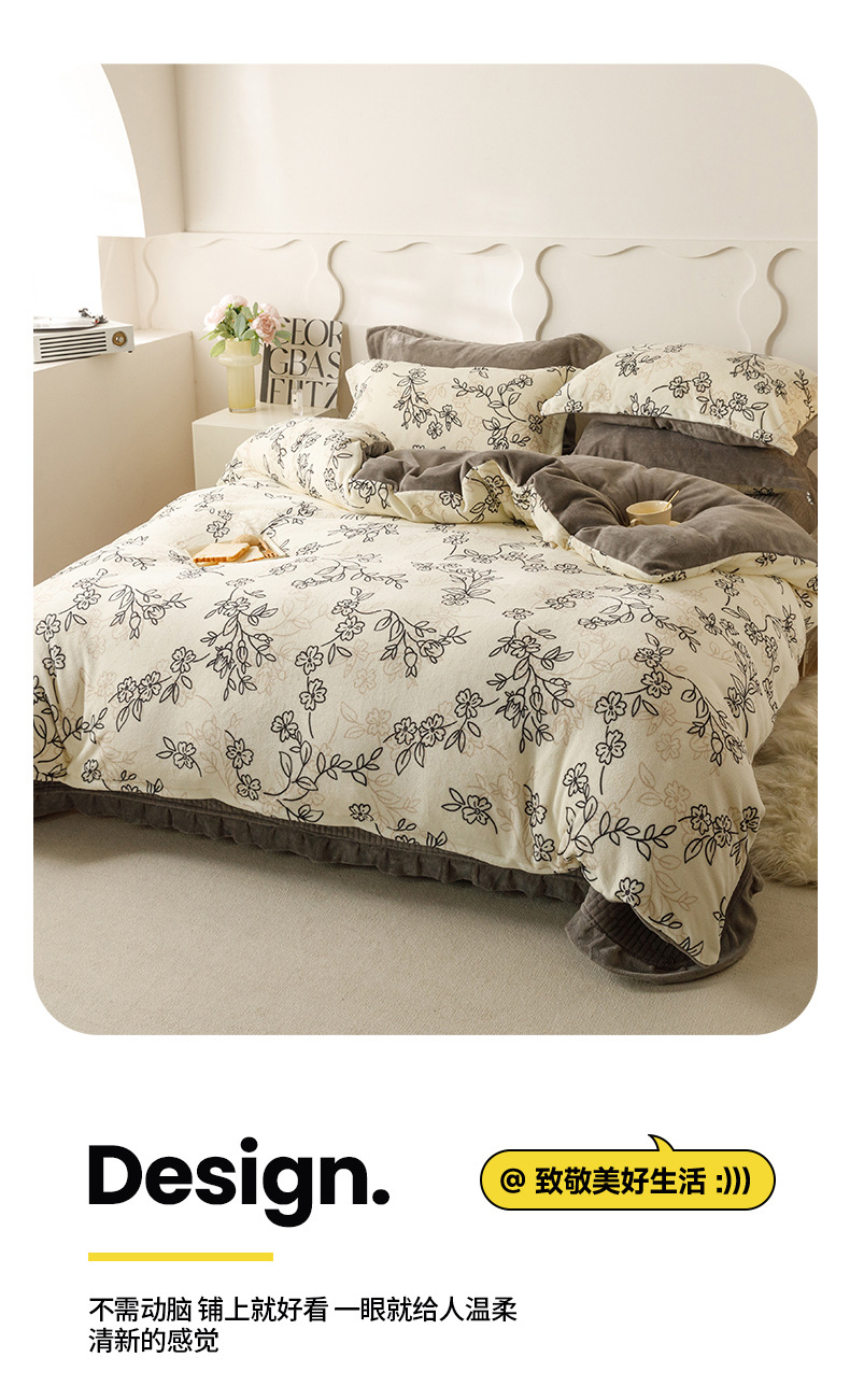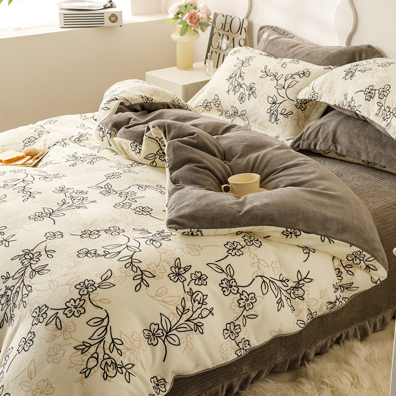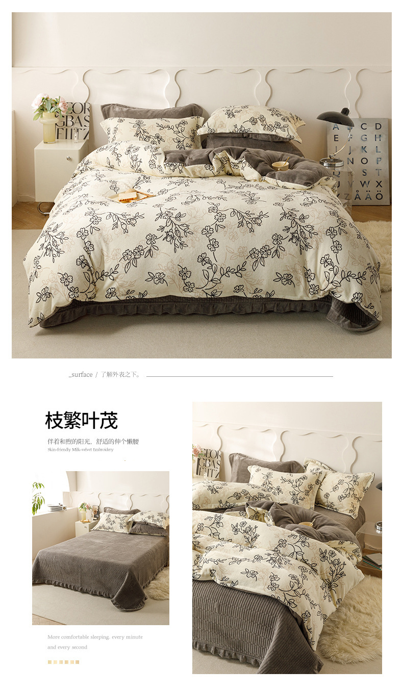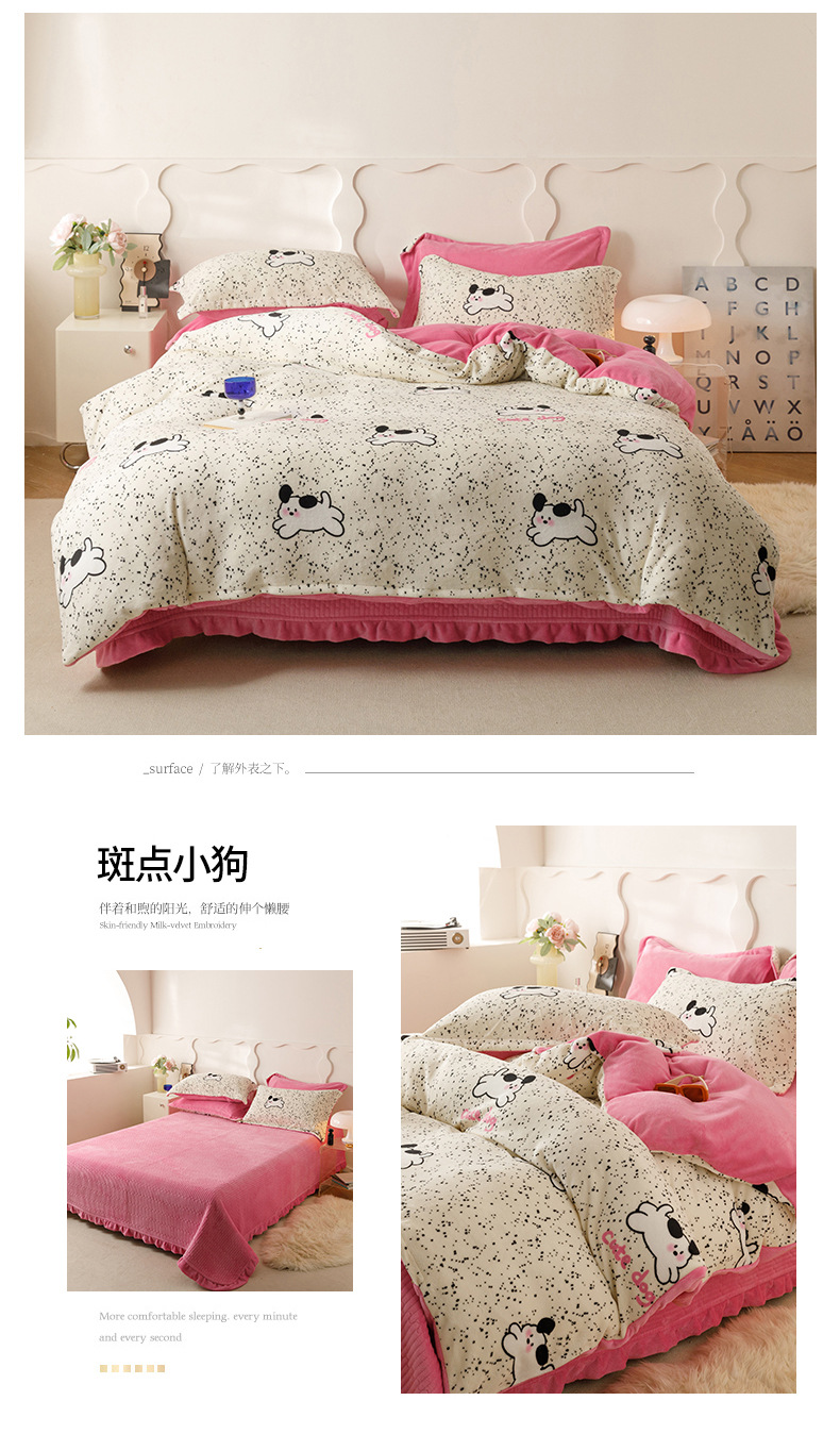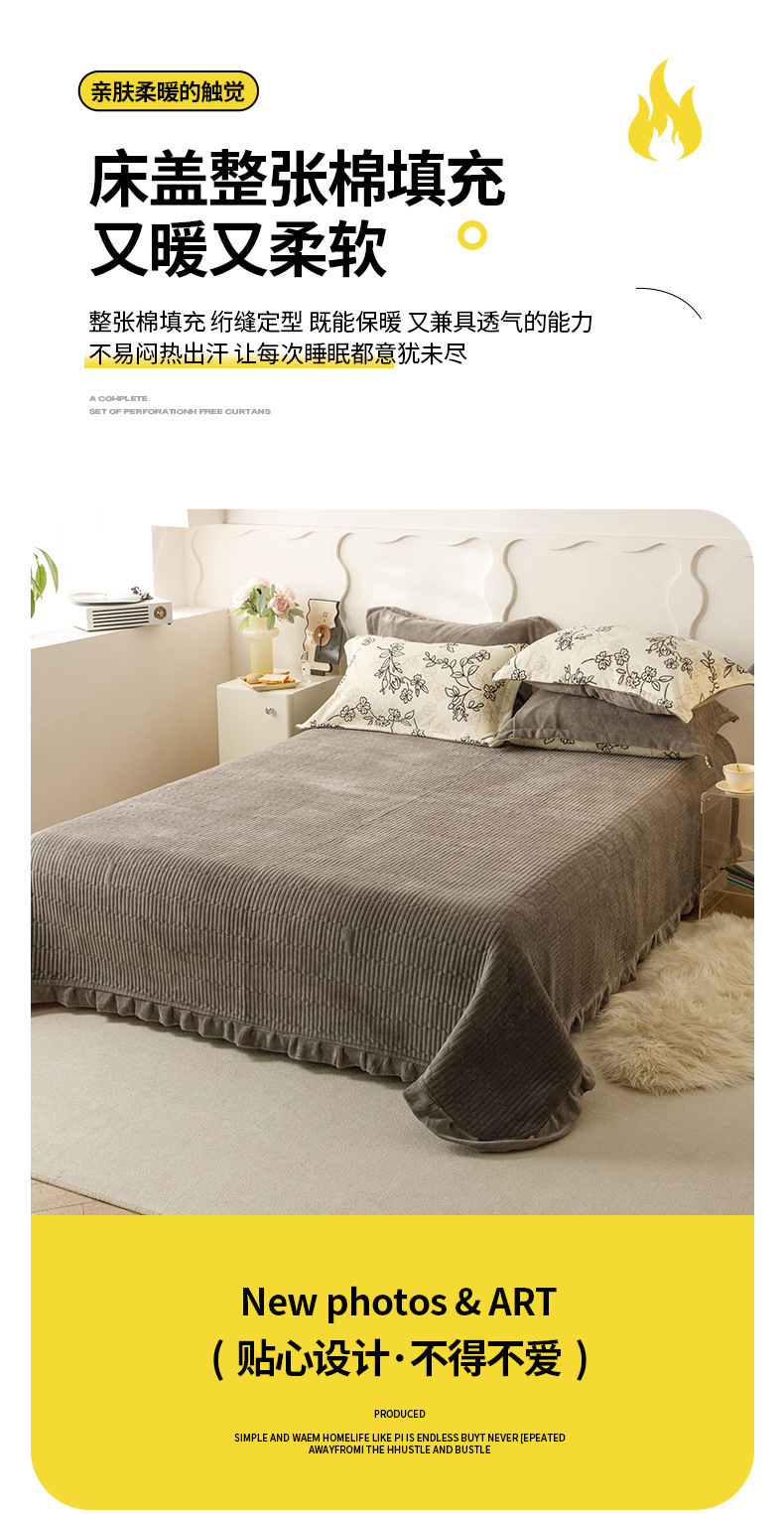 加厚冬款牛奶绒四件套床盖款床单床笠套件小清新南通家纺床上用品