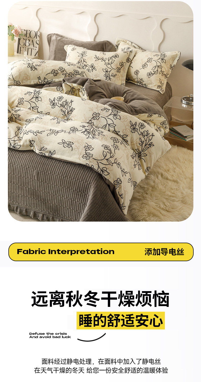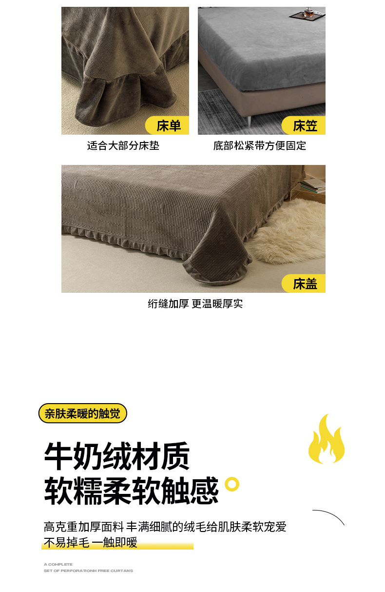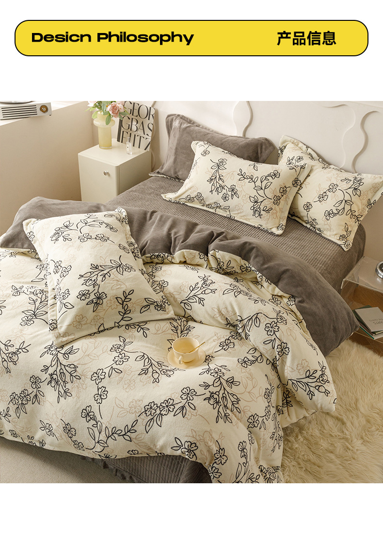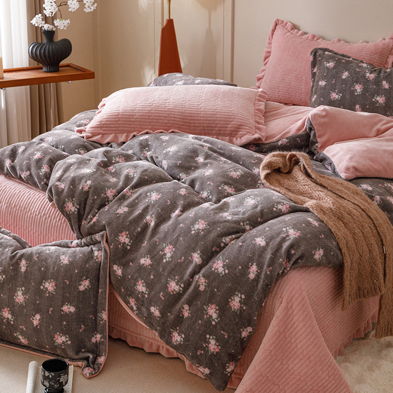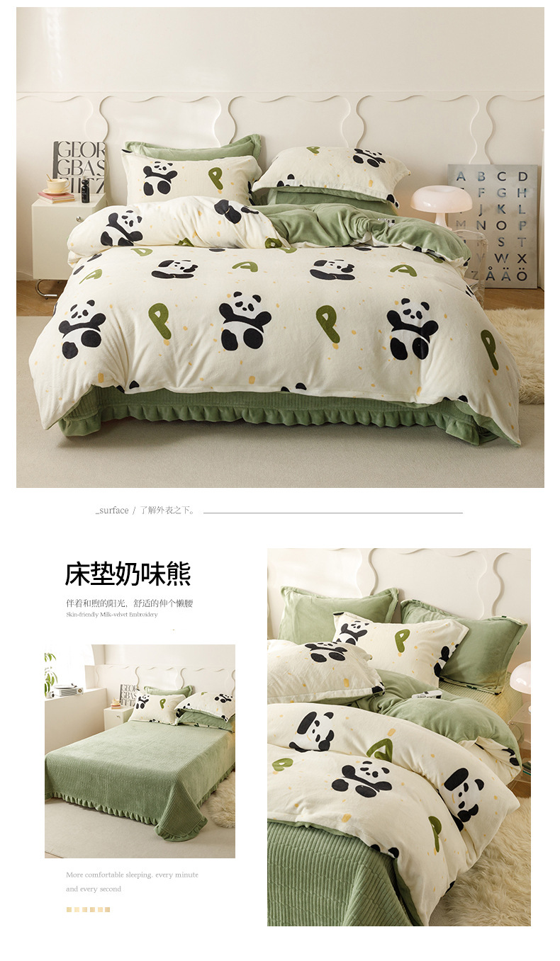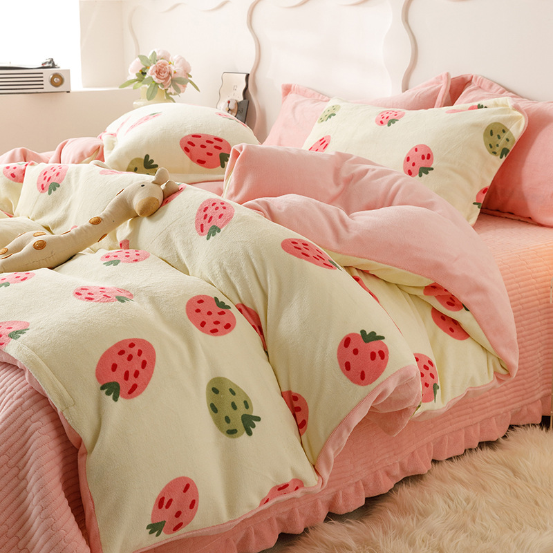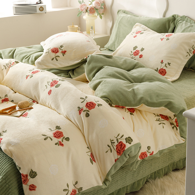 加厚冬款牛奶绒四件套床盖款床单床笠套件小清新南通家纺床上用品