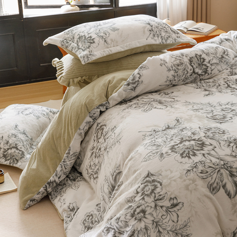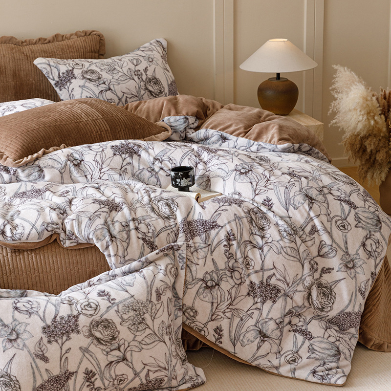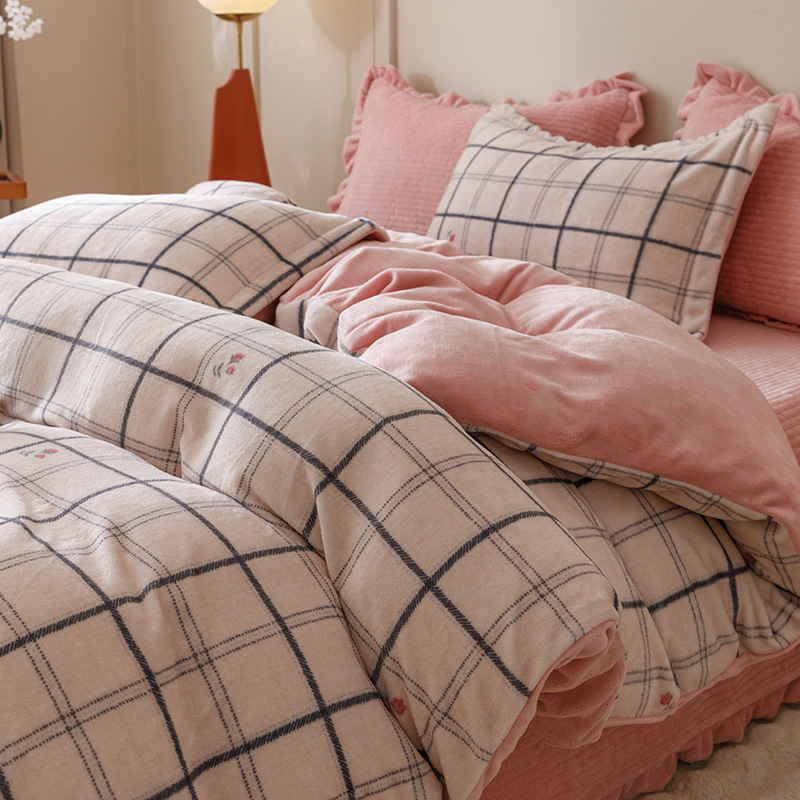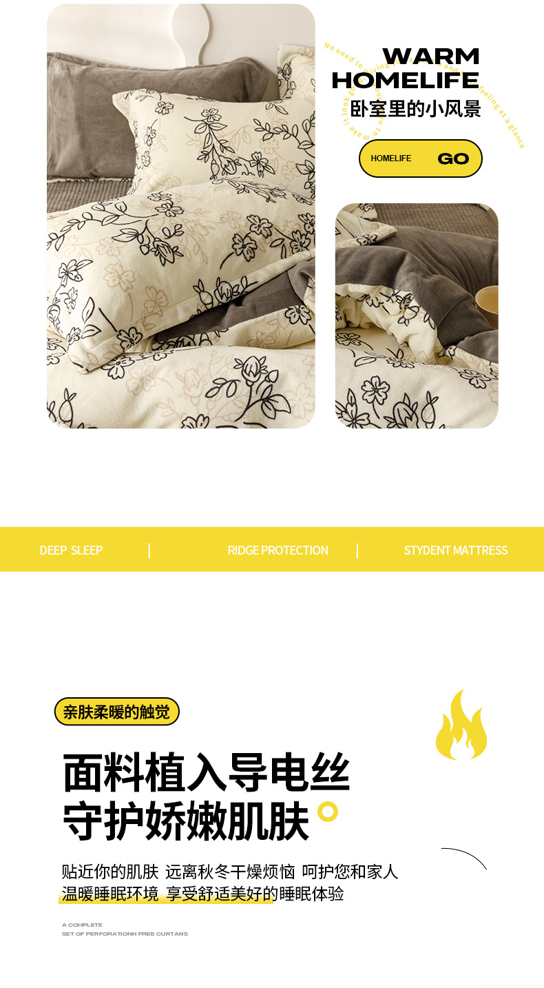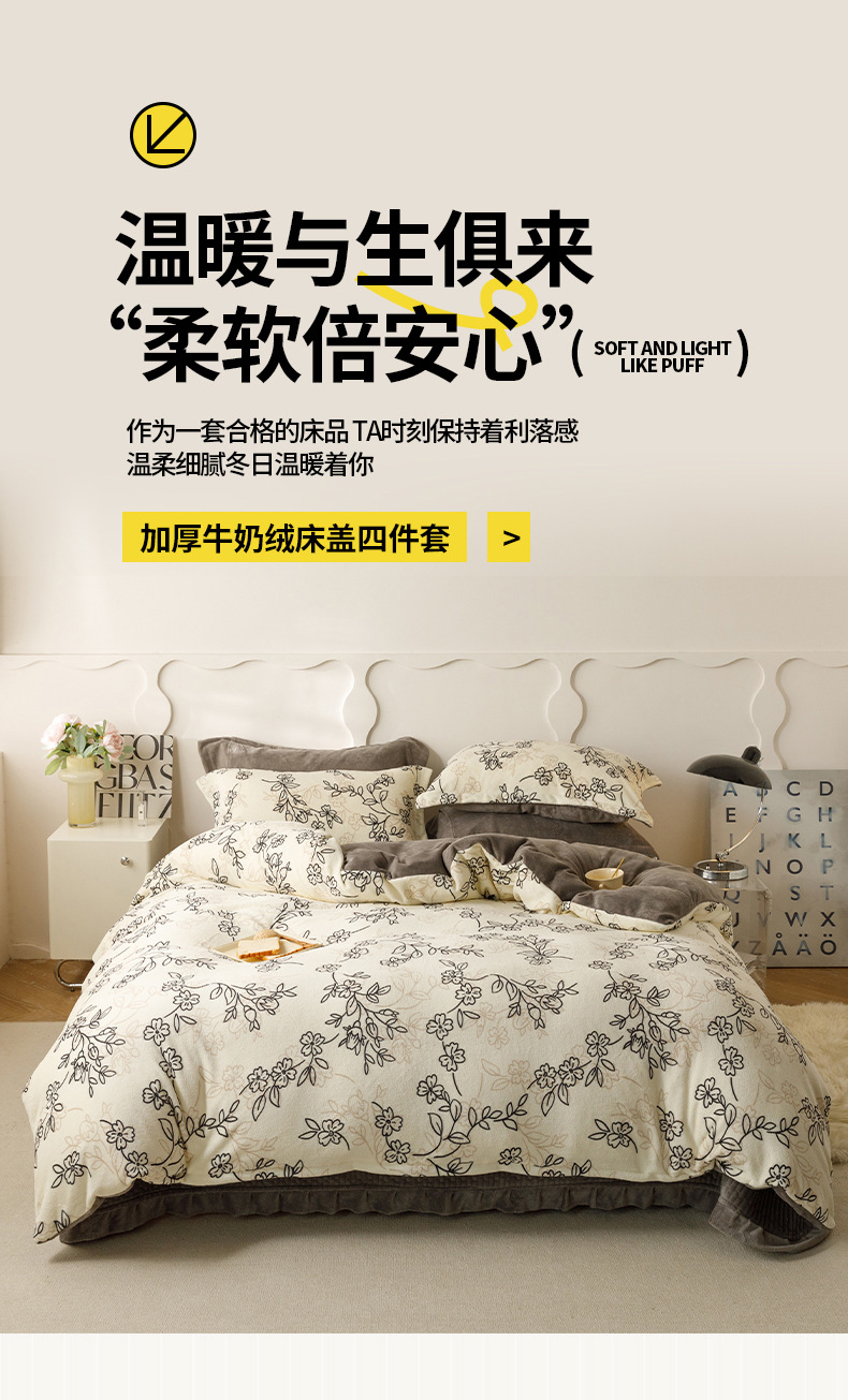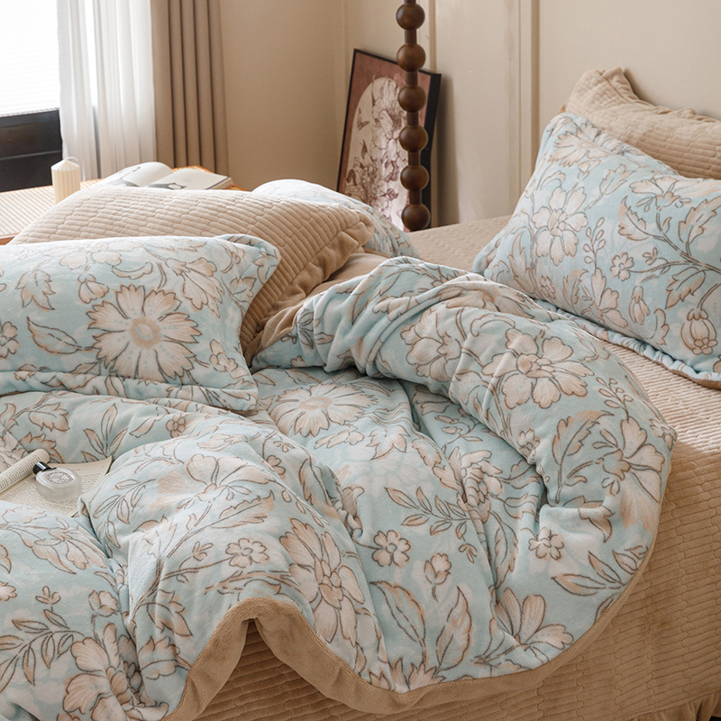 加厚冬款牛奶绒四件套床盖款床单床笠套件小清新南通家纺床上用品