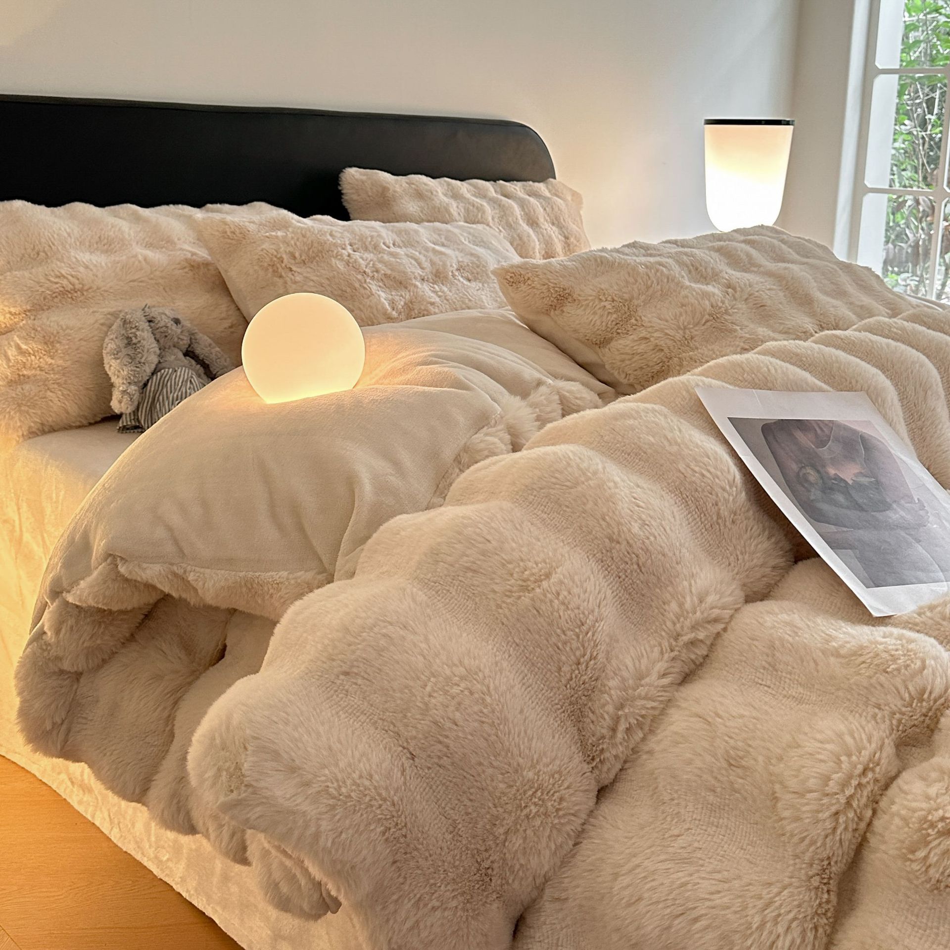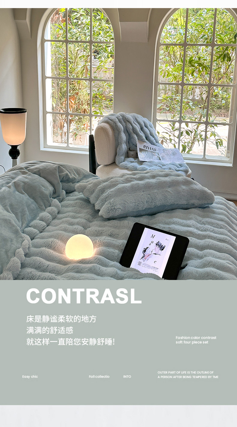 A类加厚兔毛牛奶绒四件套新款秋冬季加绒珊瑚绒床单被套三件套