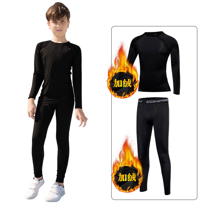 秋冬加绒保暖儿童紧身衣训练服运动套装足球篮球打底速干衣健身服