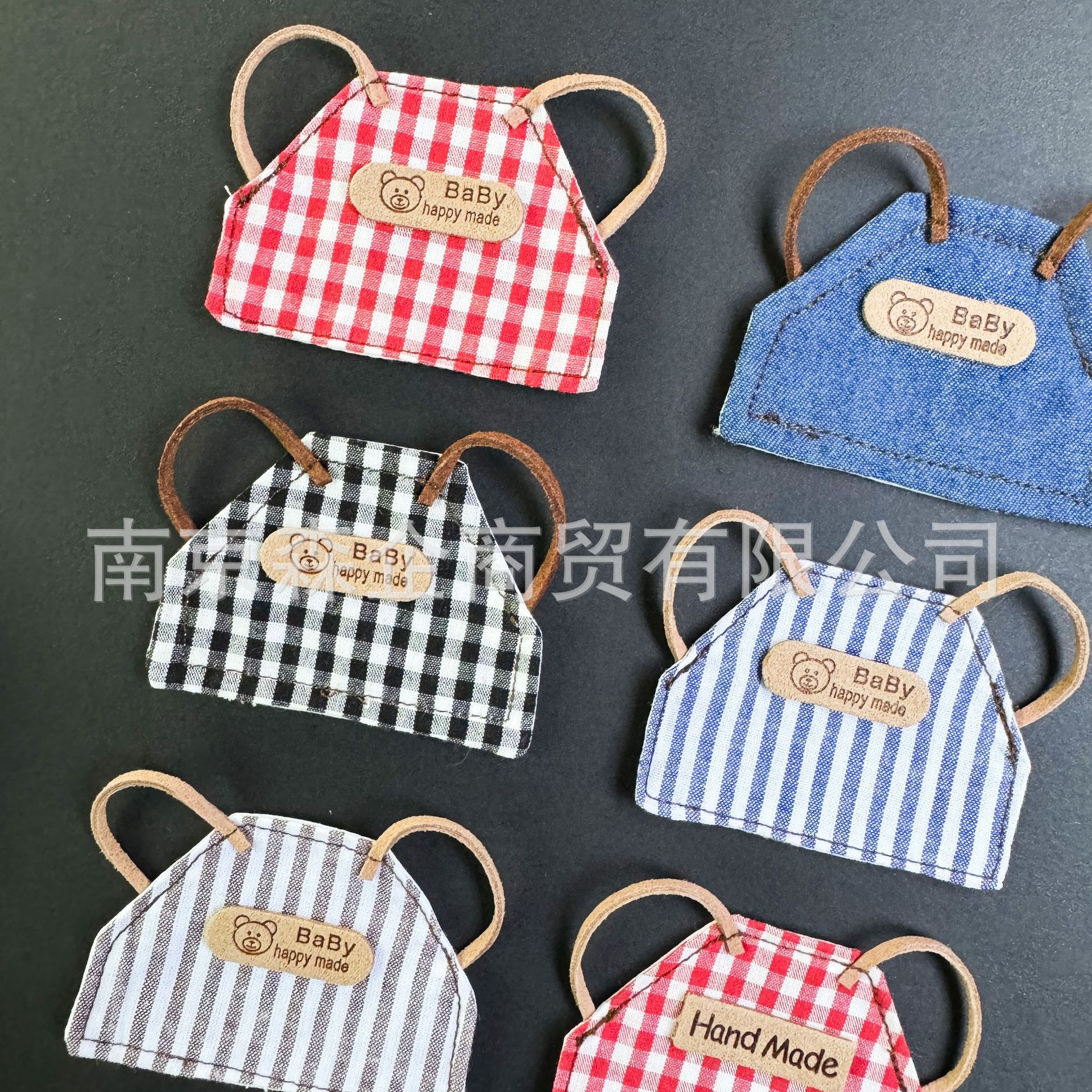 新款毛料娃娃diy复古牛仔围裙 娃衣迷你玩偶公仔格子条纹围裙批发