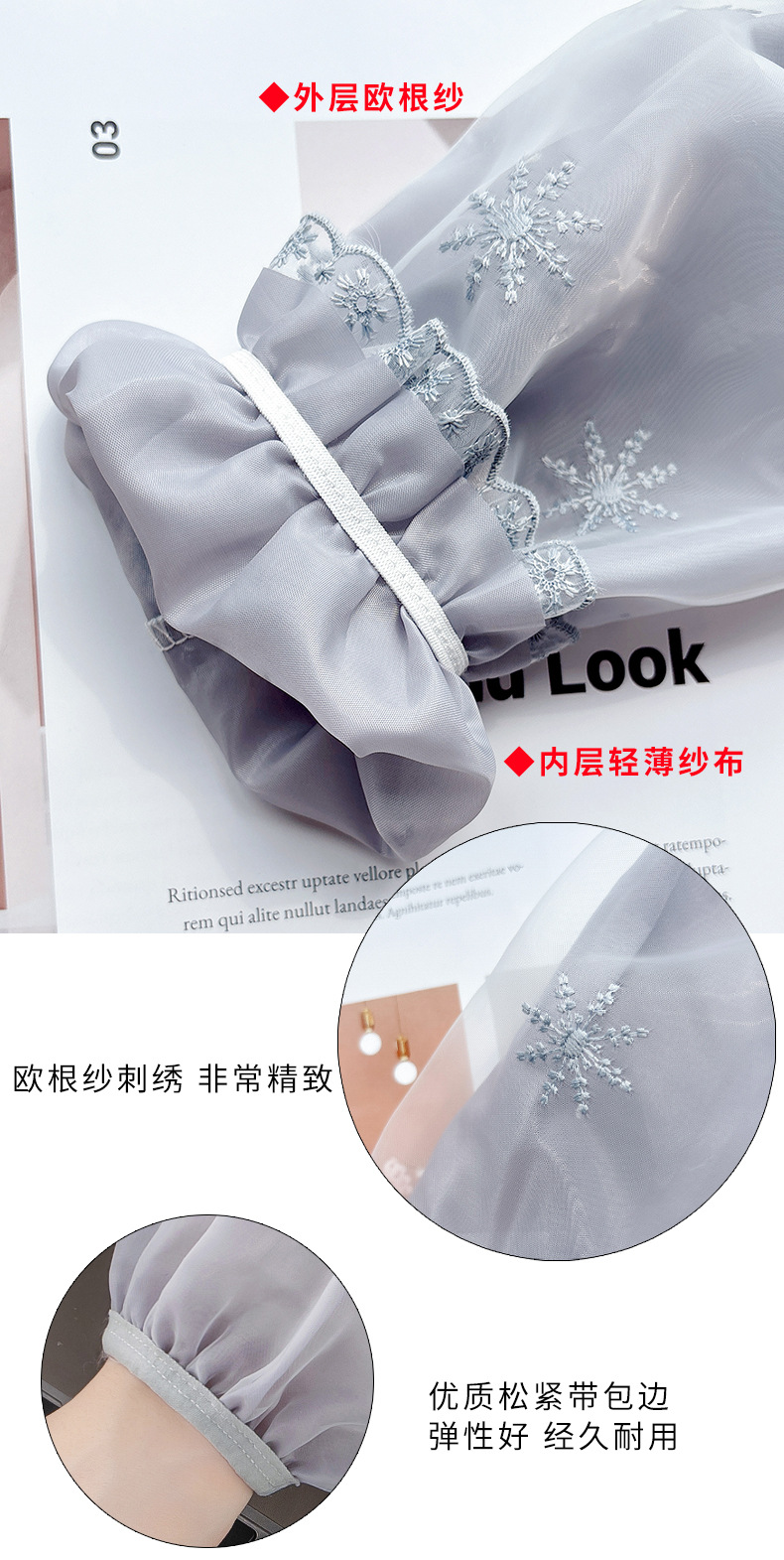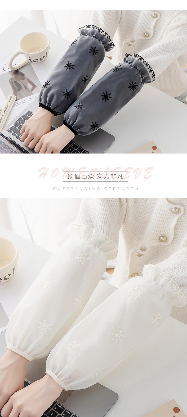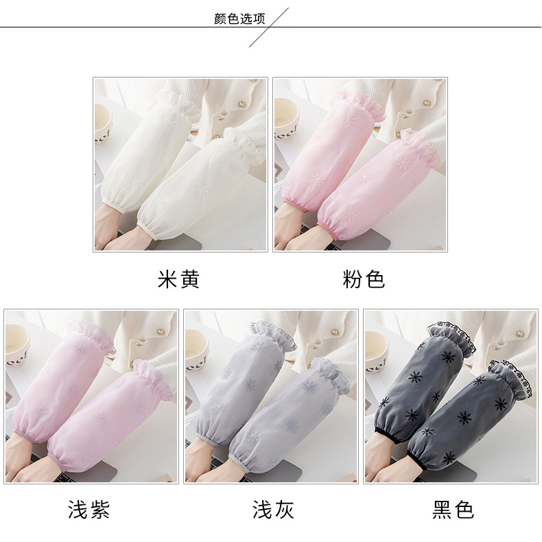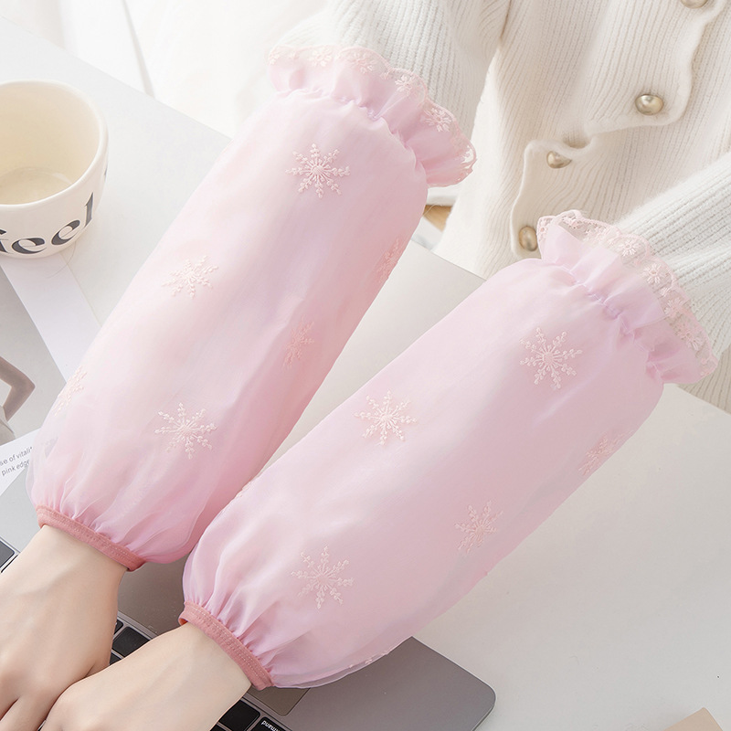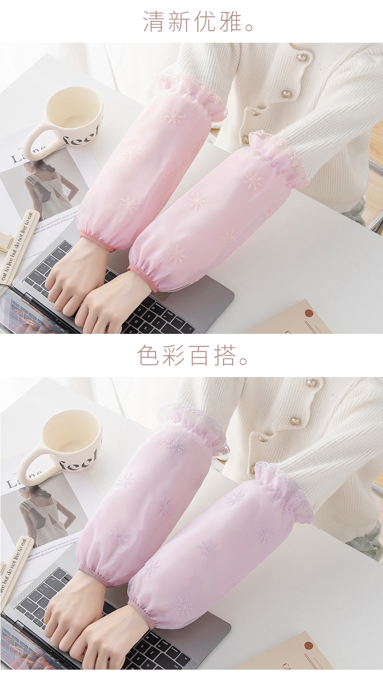 秋冬新款双层蕾丝长款防污袖套女成人上班工作羽绒服套袖家用护袖
