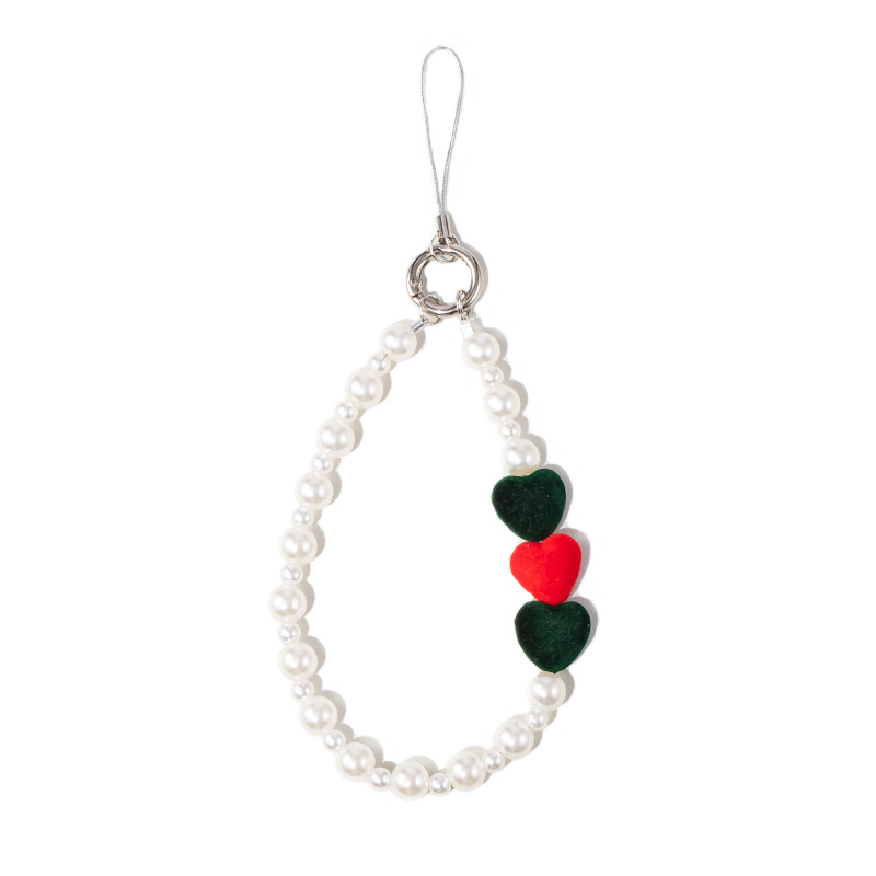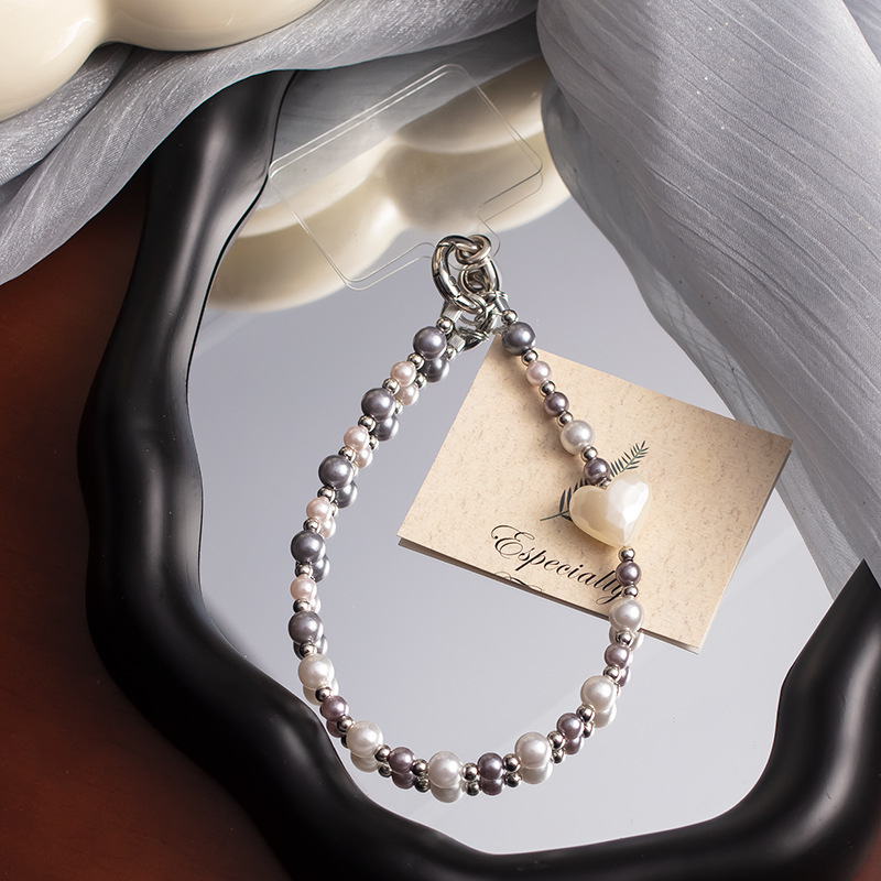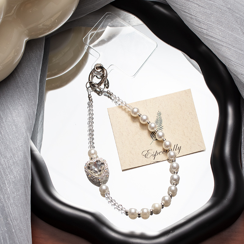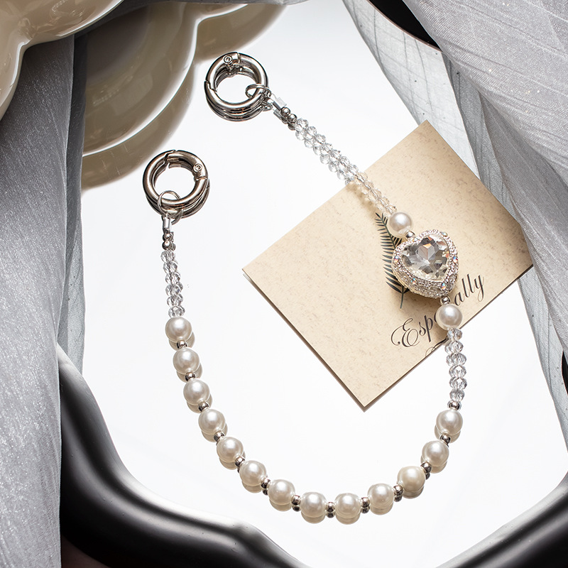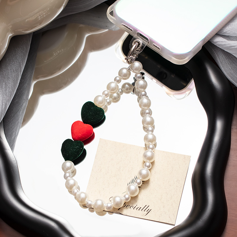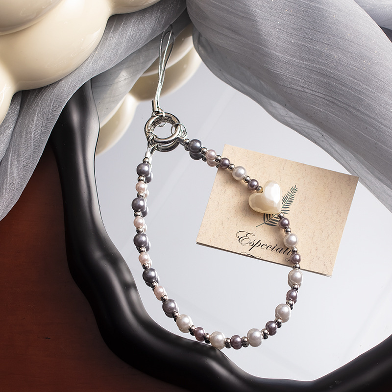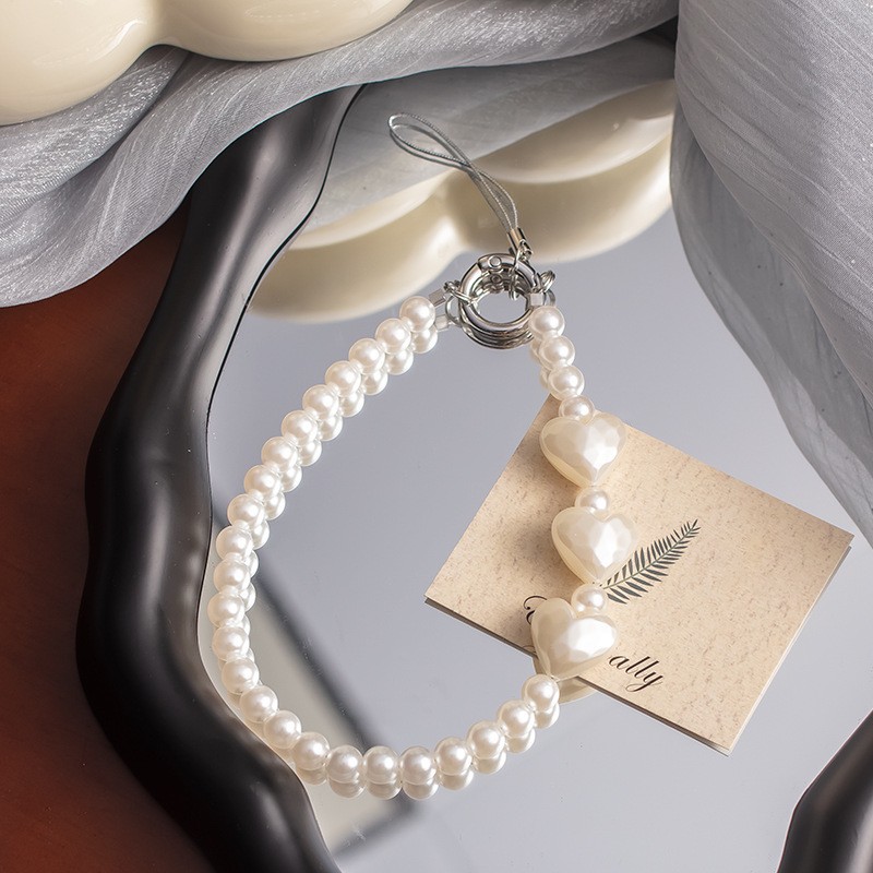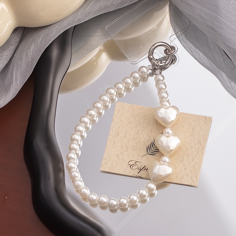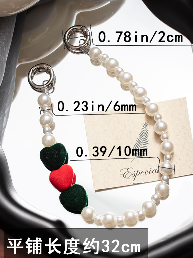 手机挂绳爱心珍珠手机链短款手机绳手腕带热销手机壳链条手机掛绳