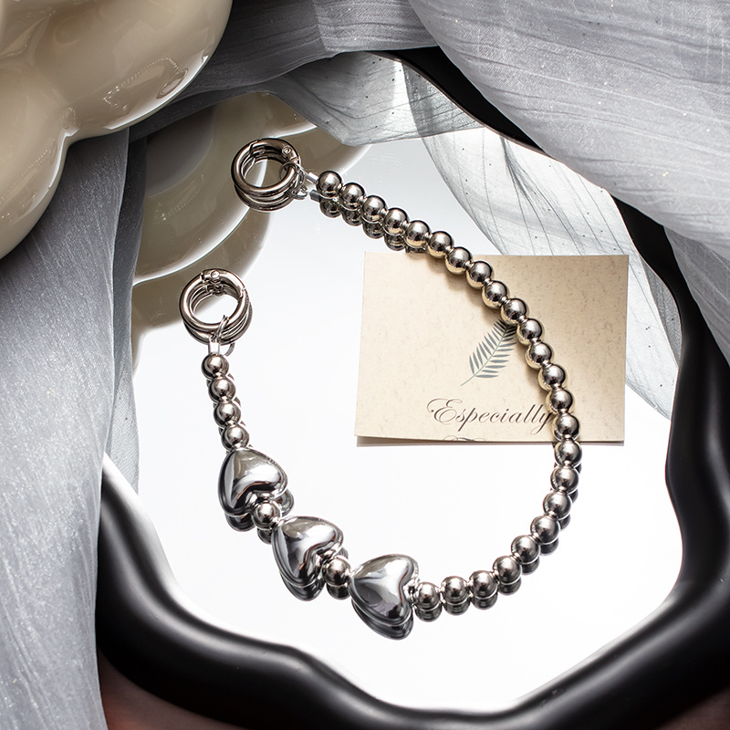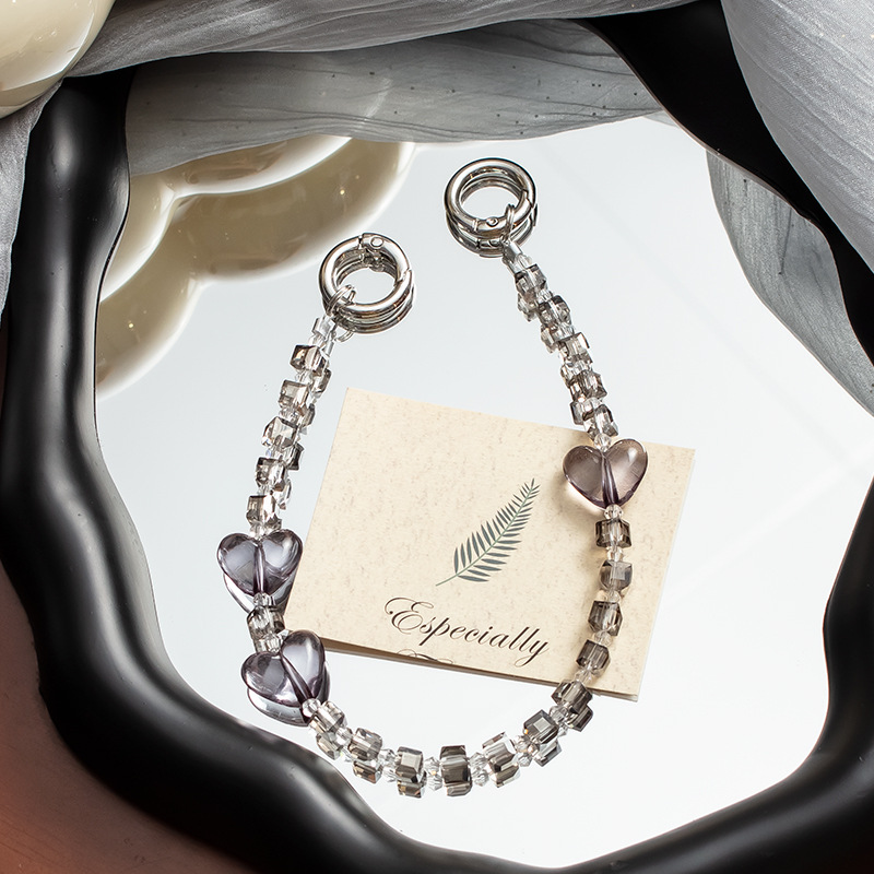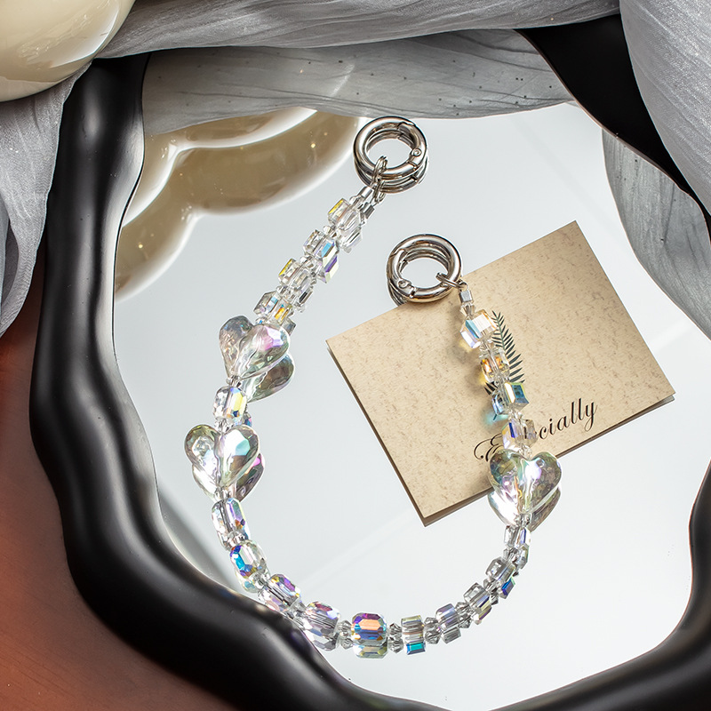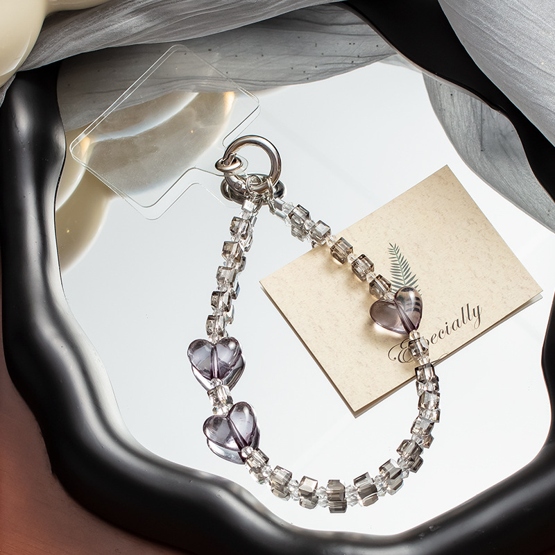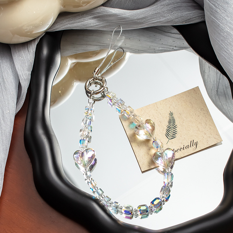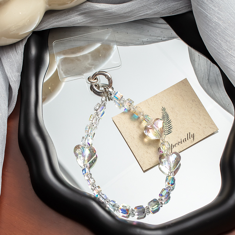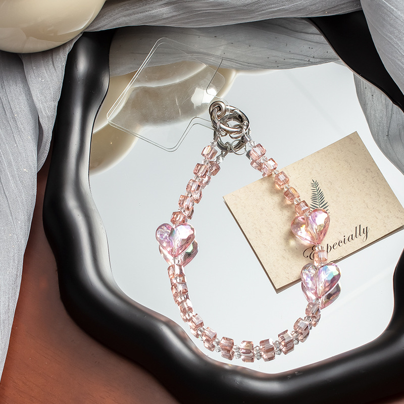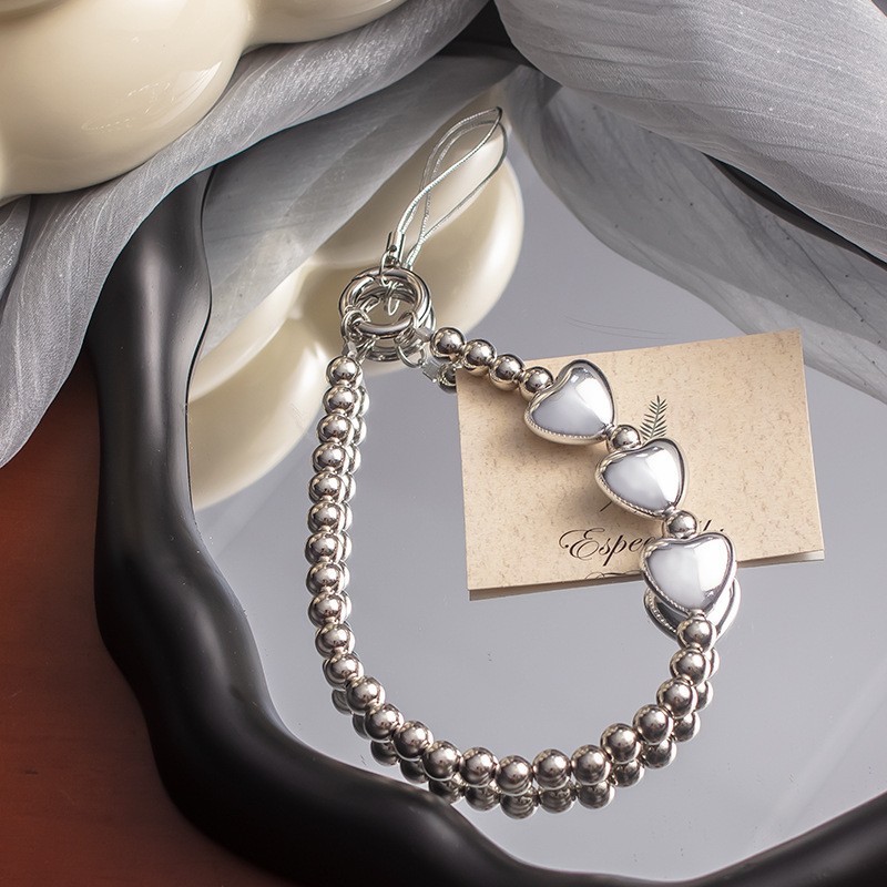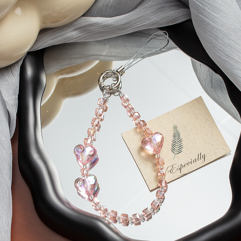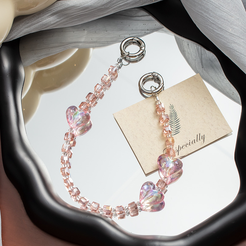 手机挂绳爱心珍珠手机链短款手机绳手腕带热销手机壳链条手机掛绳