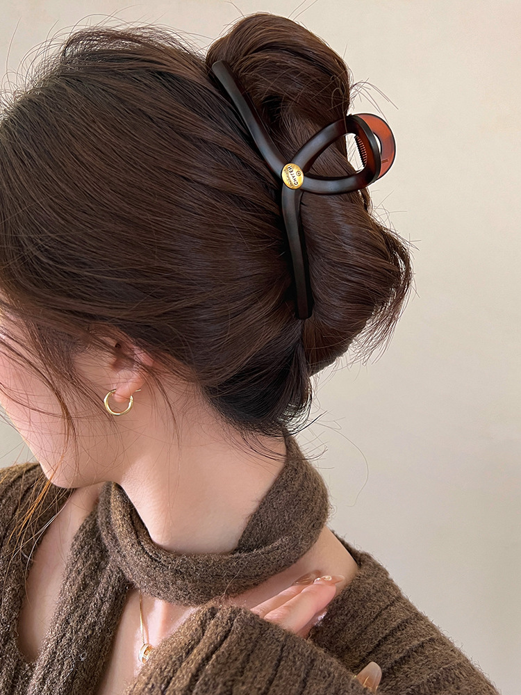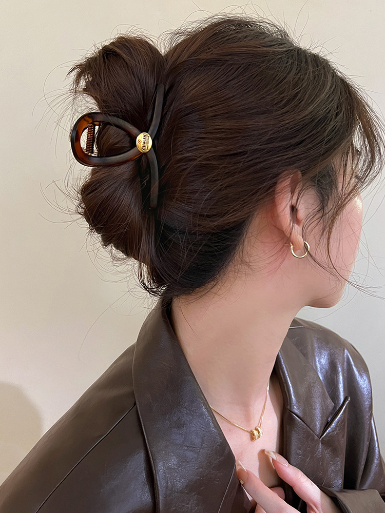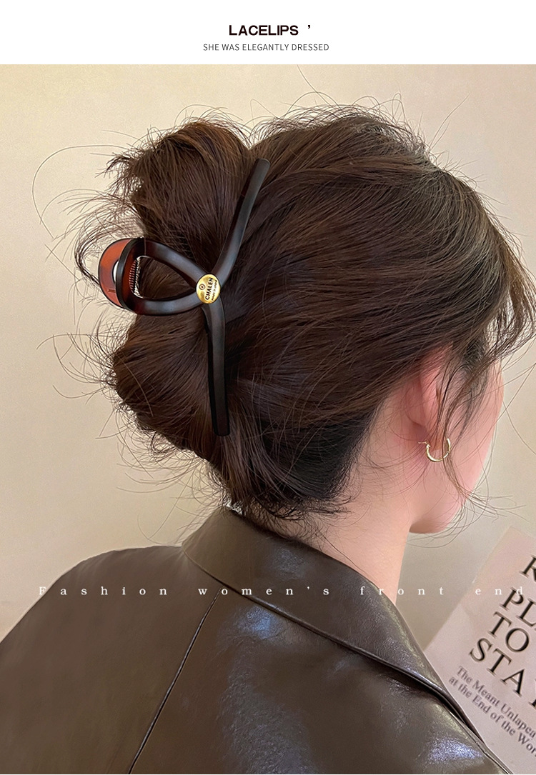 大号玳瑁色金标字母抓夹女2024新款高级感气质盘发鲨鱼夹发夹头饰