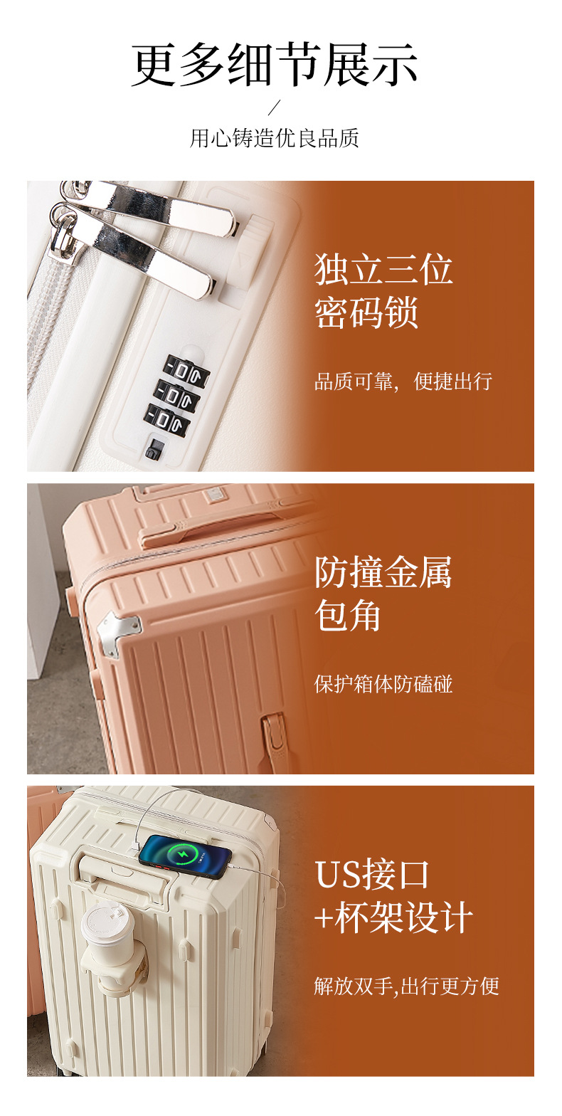 2024新款纯色旅行大容量行李箱女静音万向轮拉杆箱密码箱旅行箱子