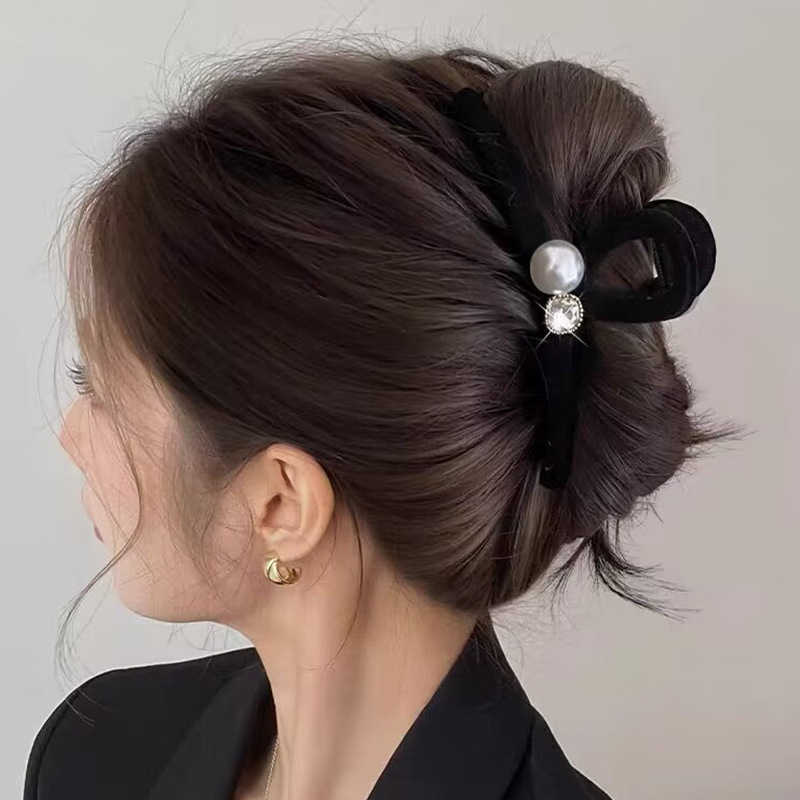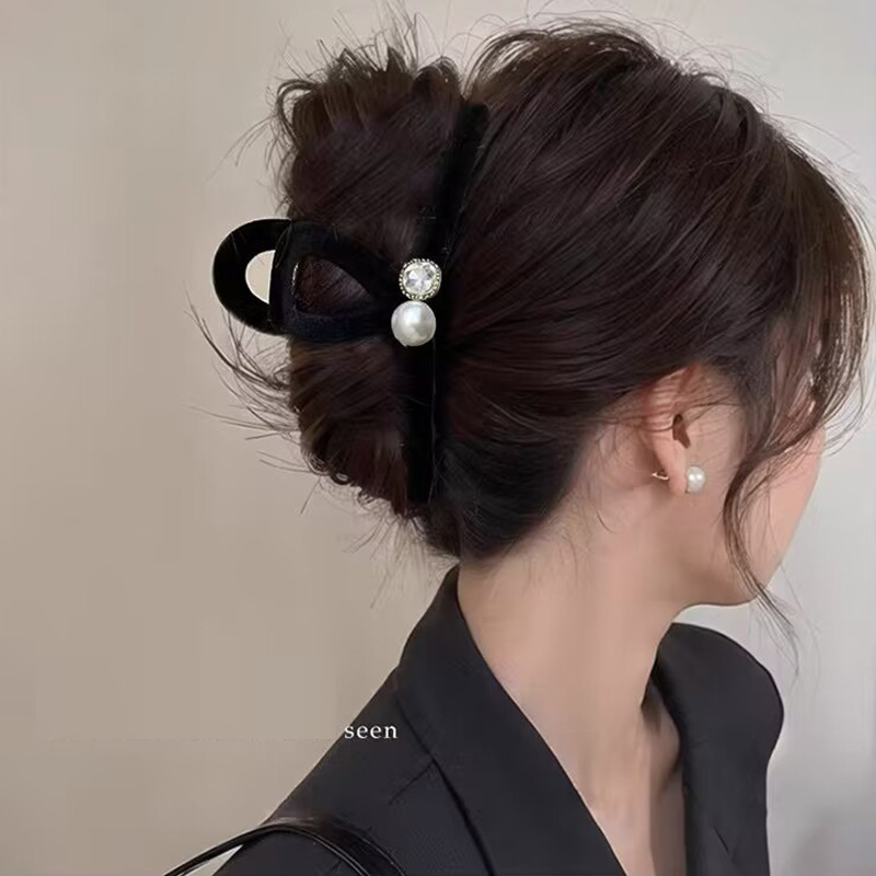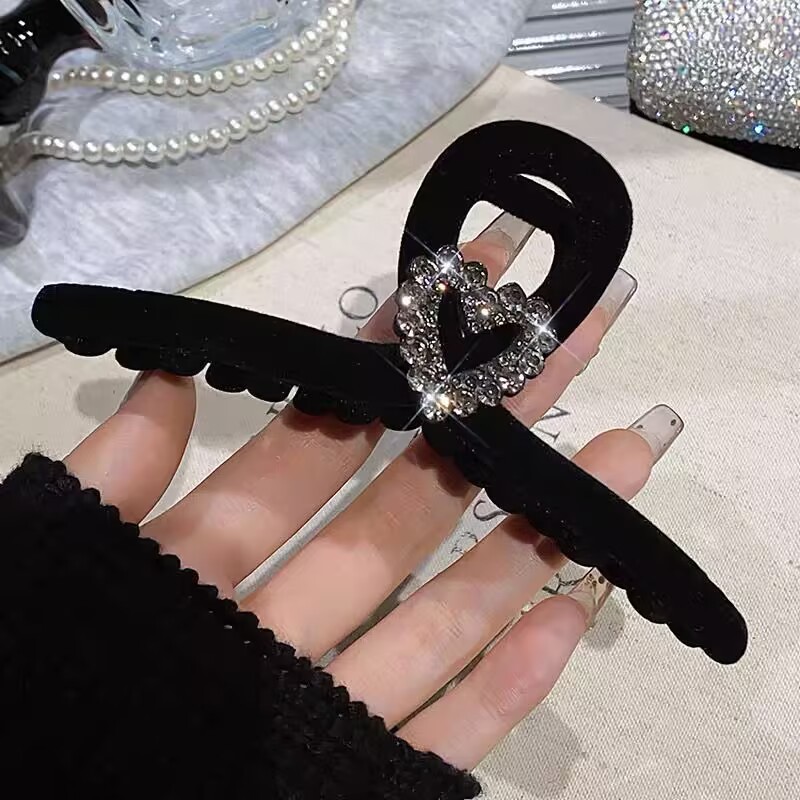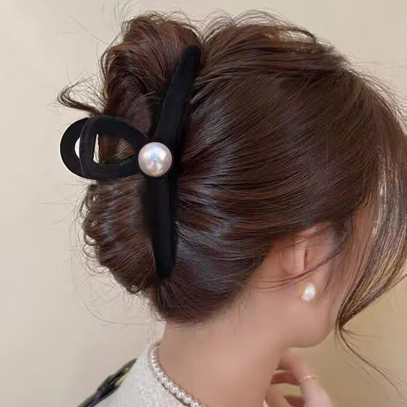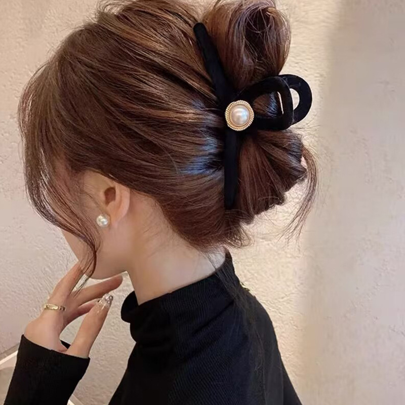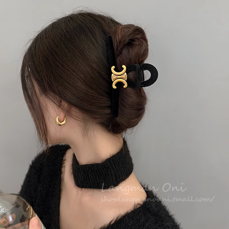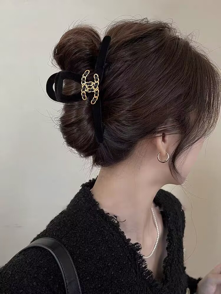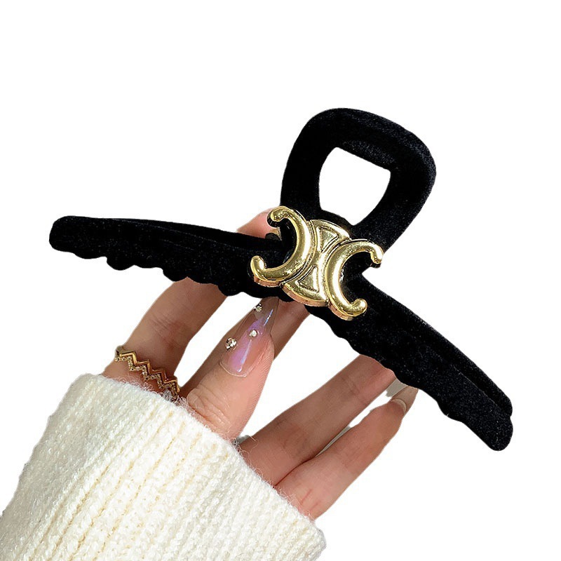 高级黑色植绒大号抓夹优雅发夹后脑勺盘发鲨鱼夹子发量多发卡头饰