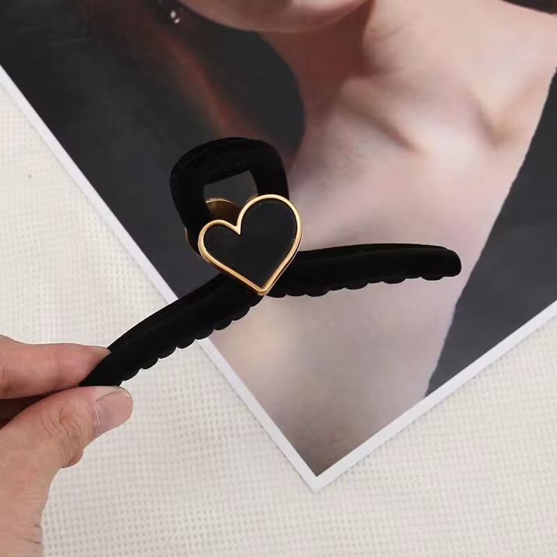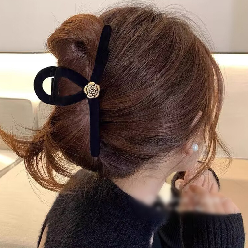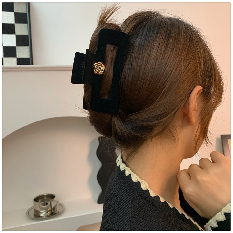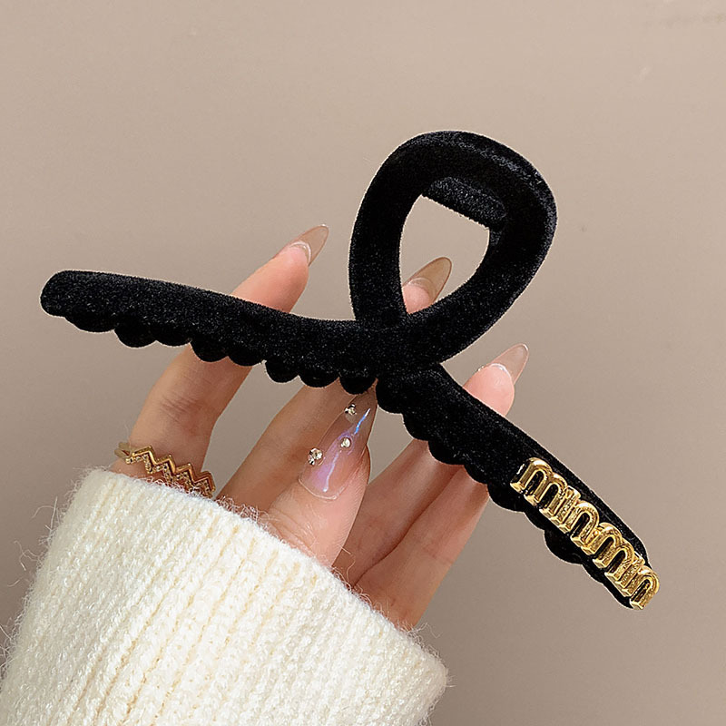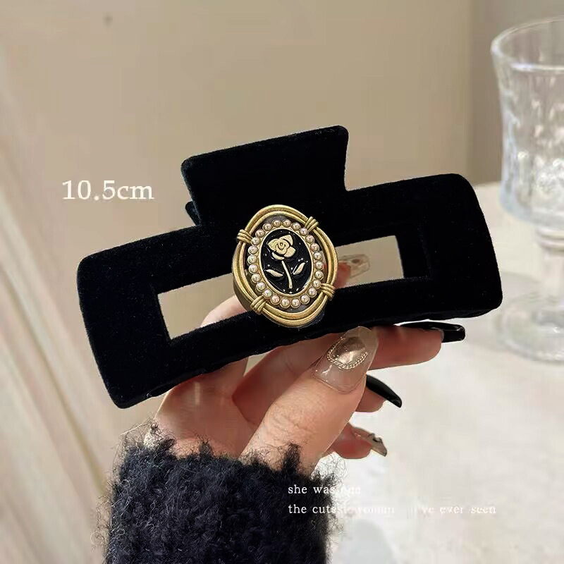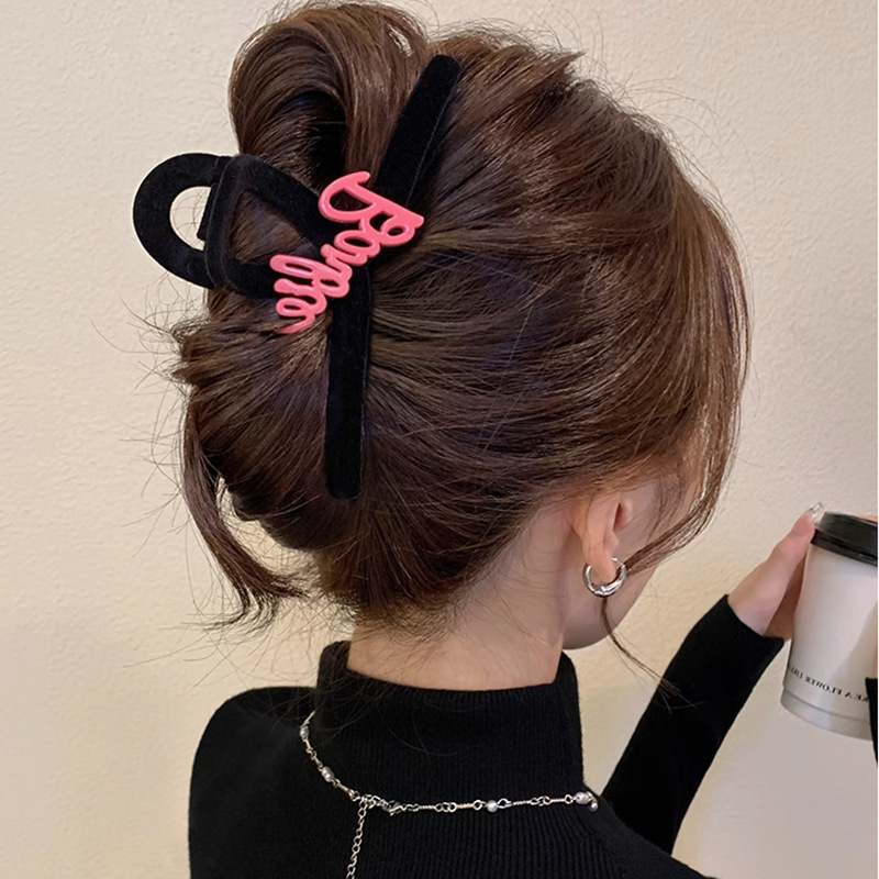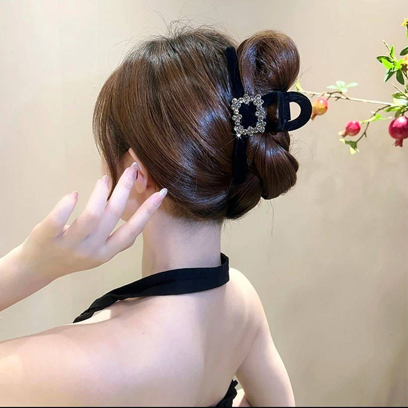 高级黑色植绒大号抓夹优雅发夹后脑勺盘发鲨鱼夹子发量多发卡头饰