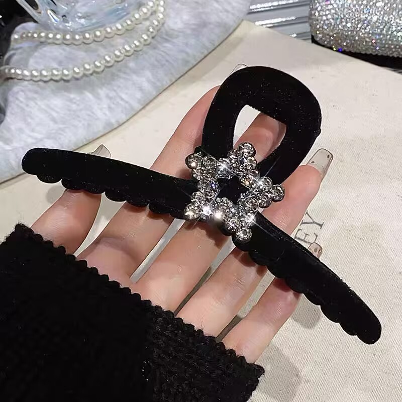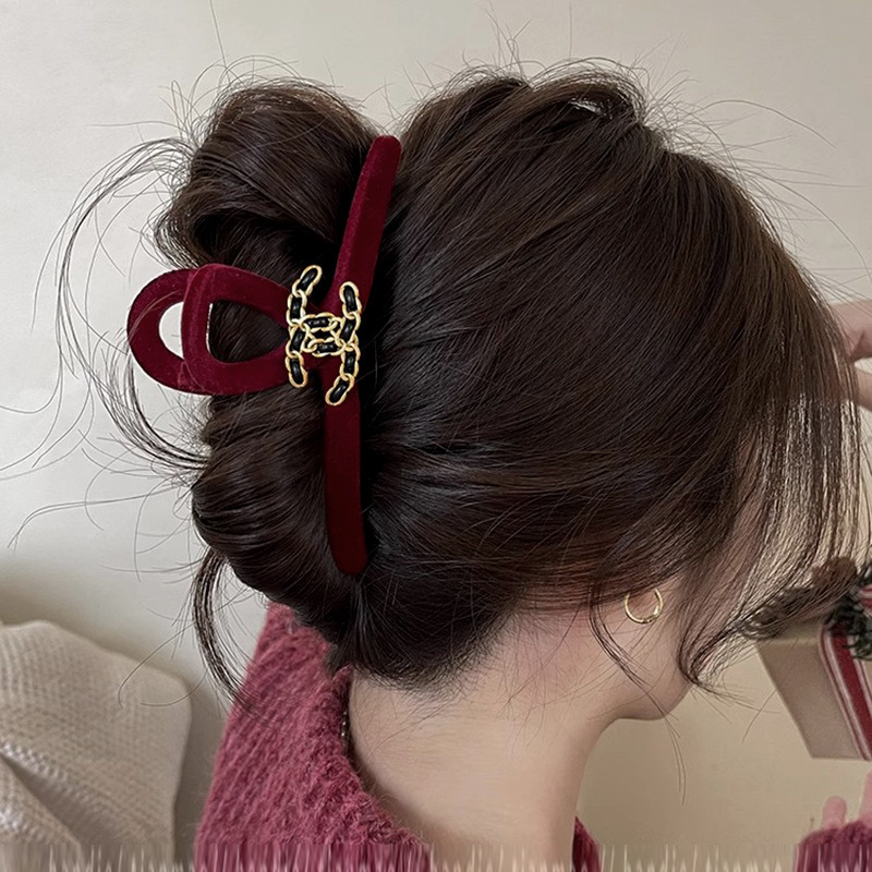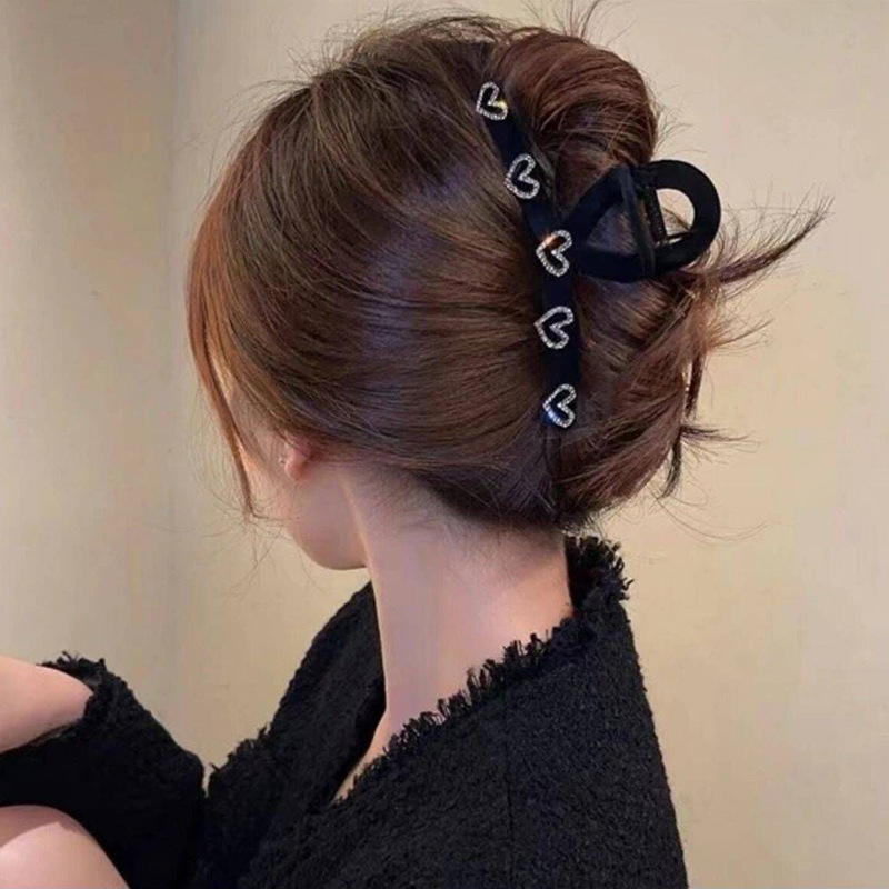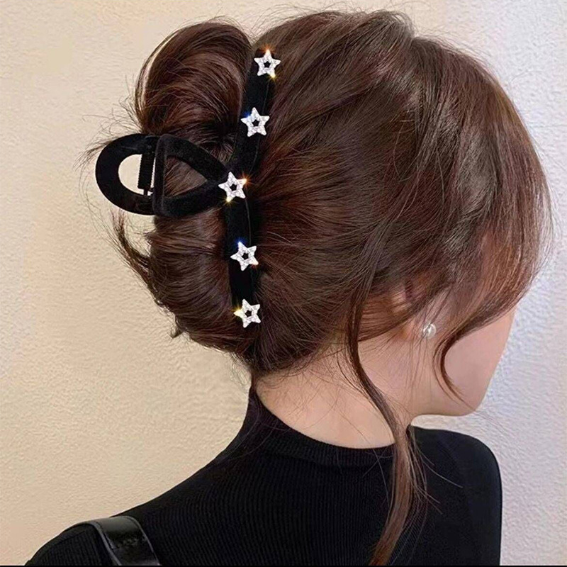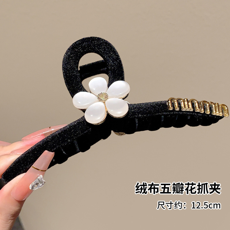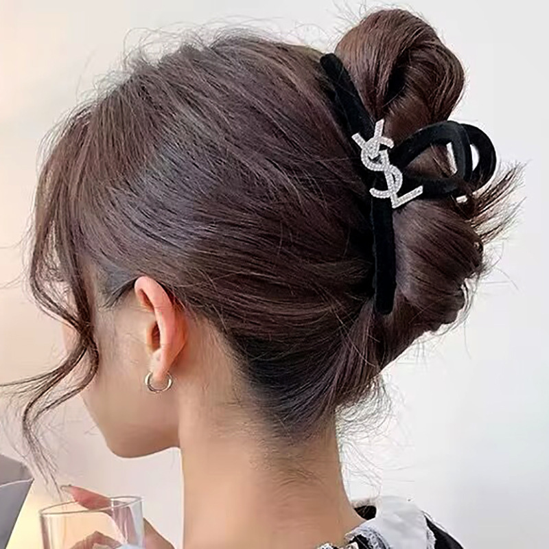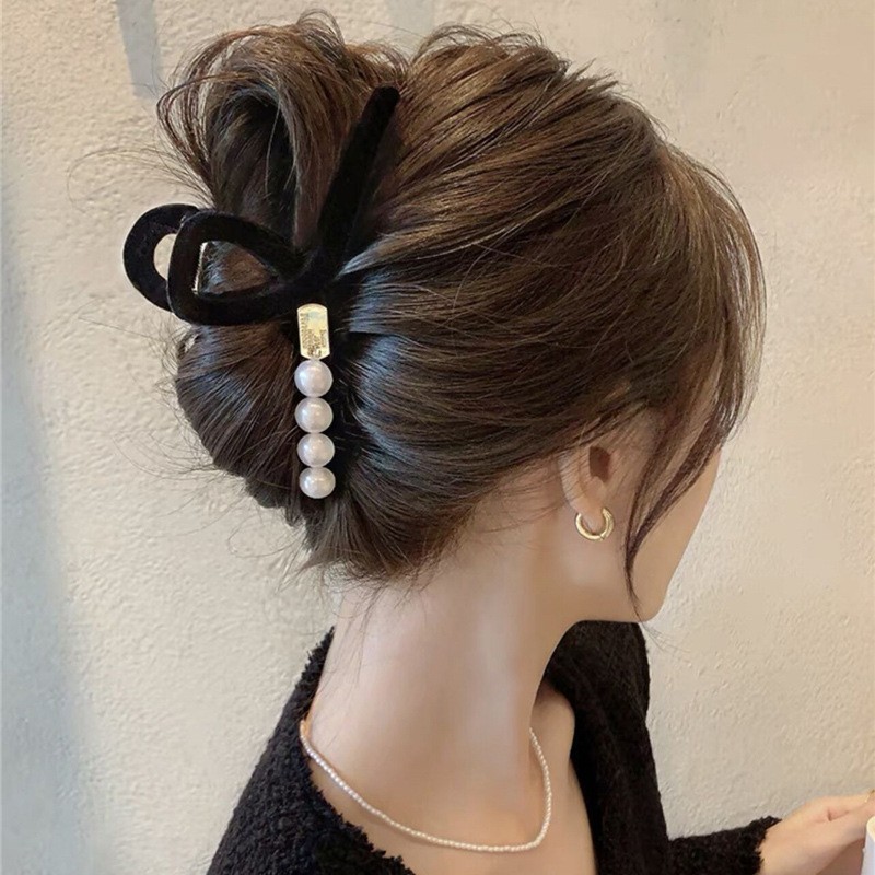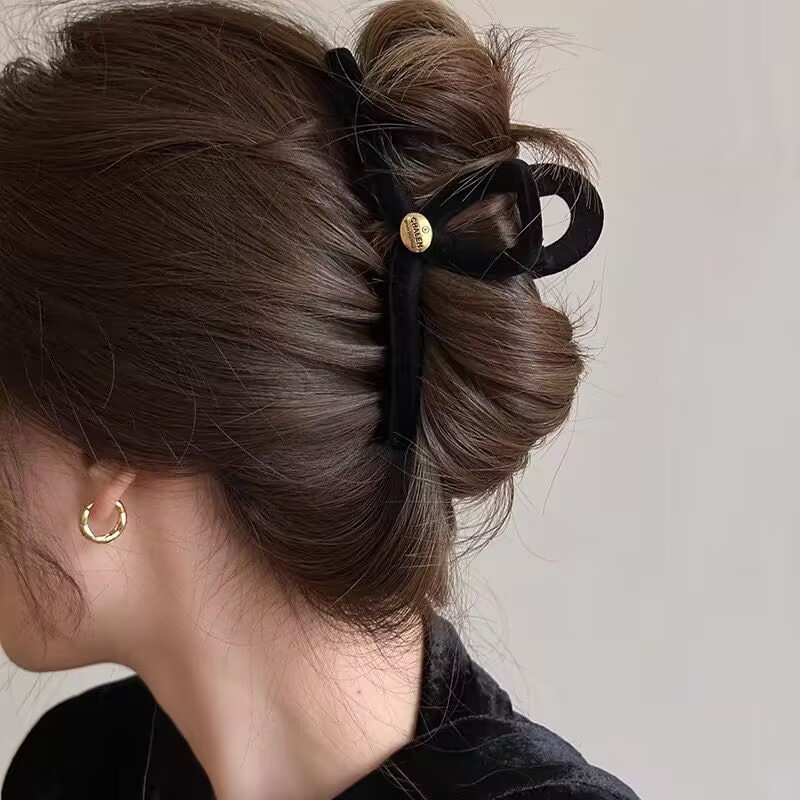 高级黑色植绒大号抓夹优雅发夹后脑勺盘发鲨鱼夹子发量多发卡头饰