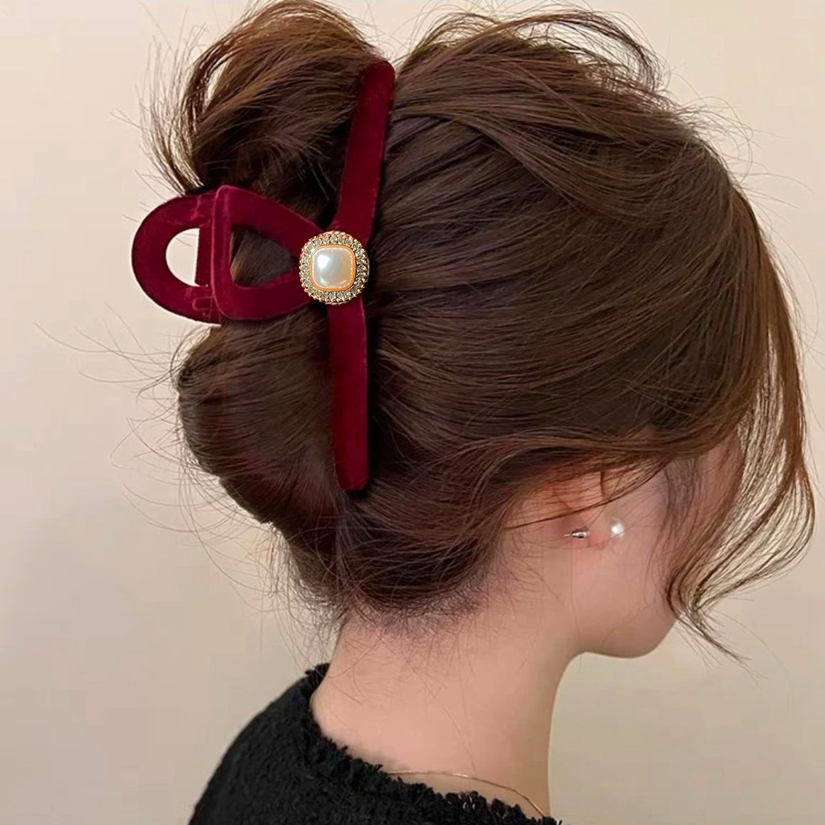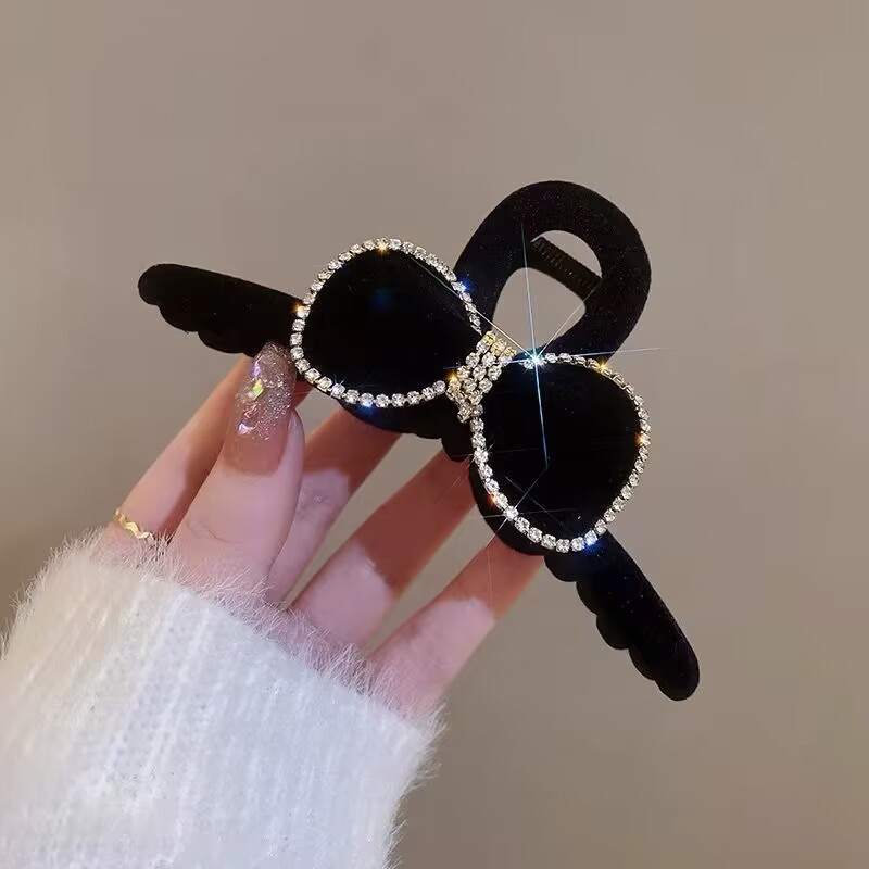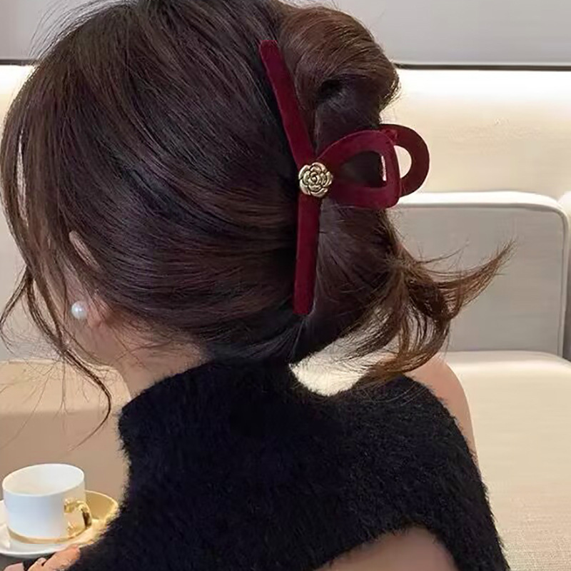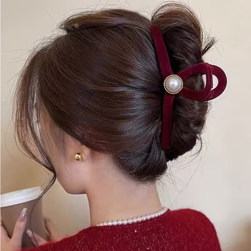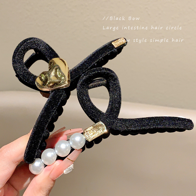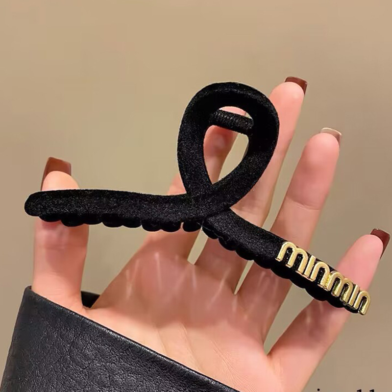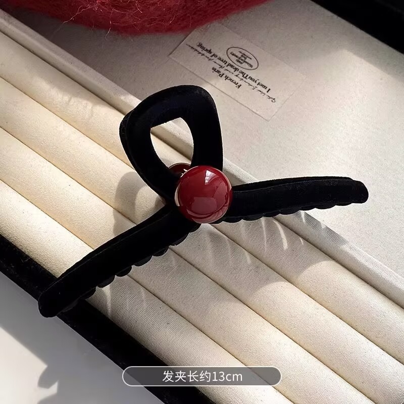 高级黑色植绒大号抓夹优雅发夹后脑勺盘发鲨鱼夹子发量多发卡头饰