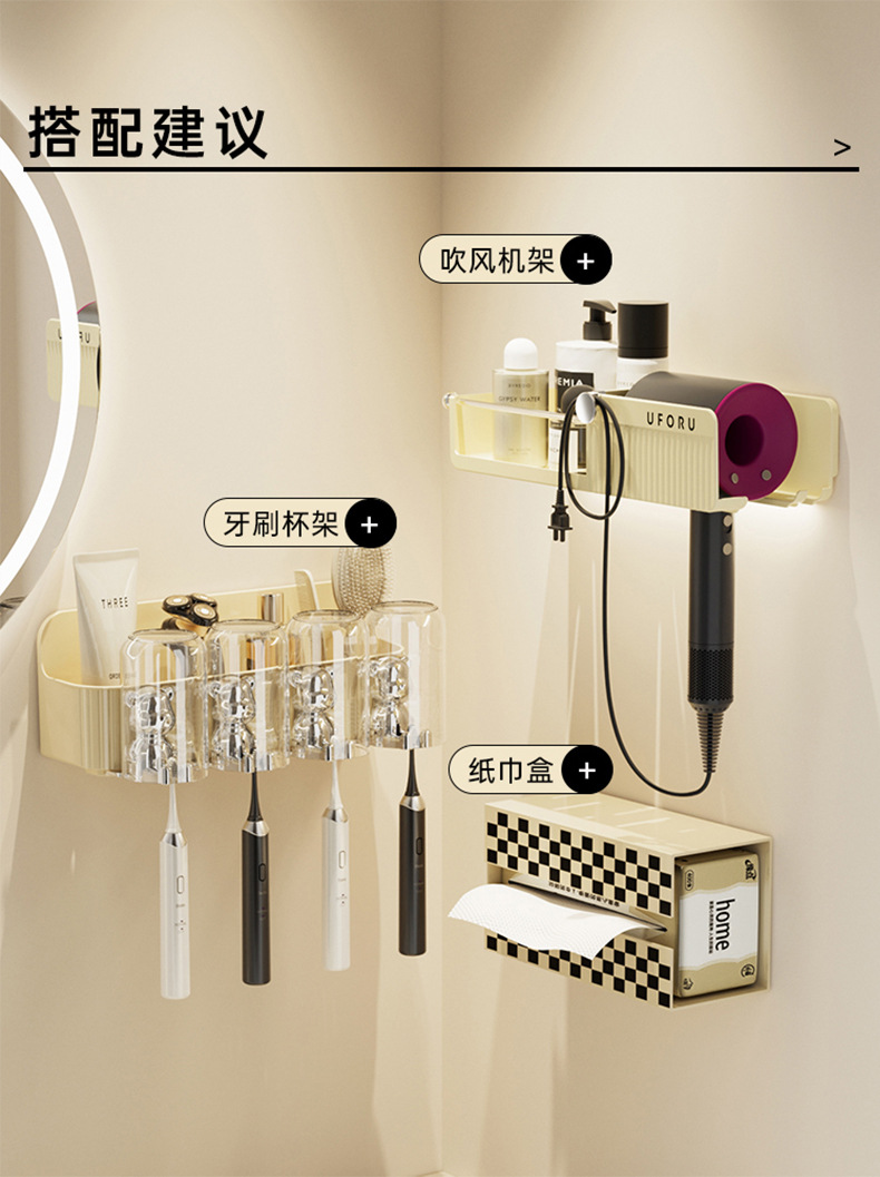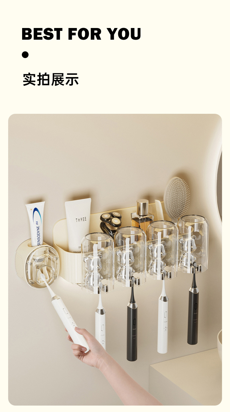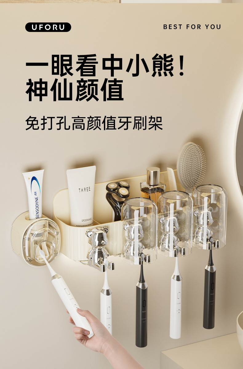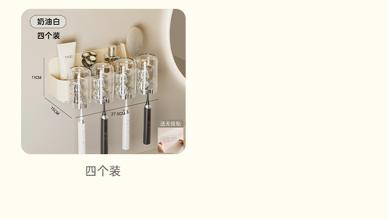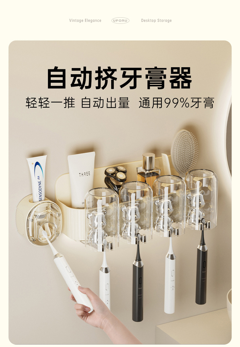 uforu 牙刷杯架壁挂免打孔厕所自动挤牙膏器浴室漱口杯牙刷置物架