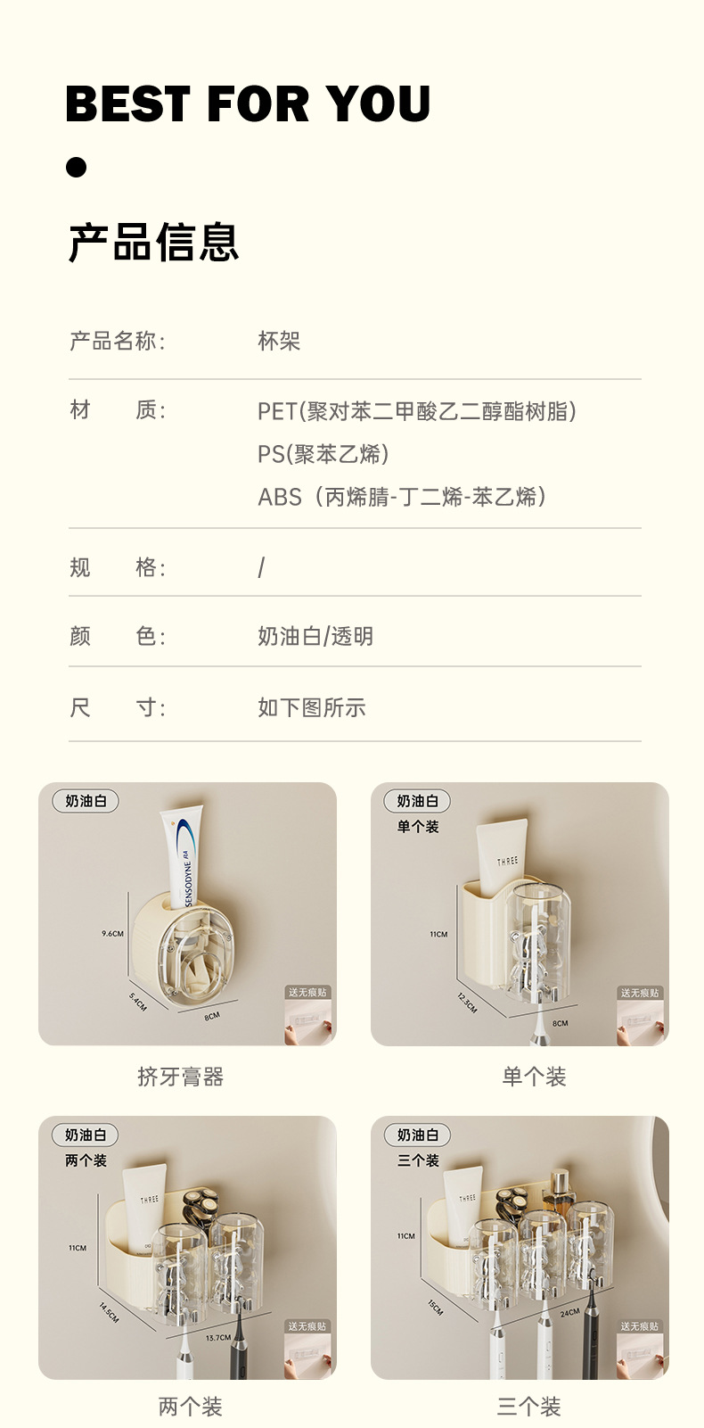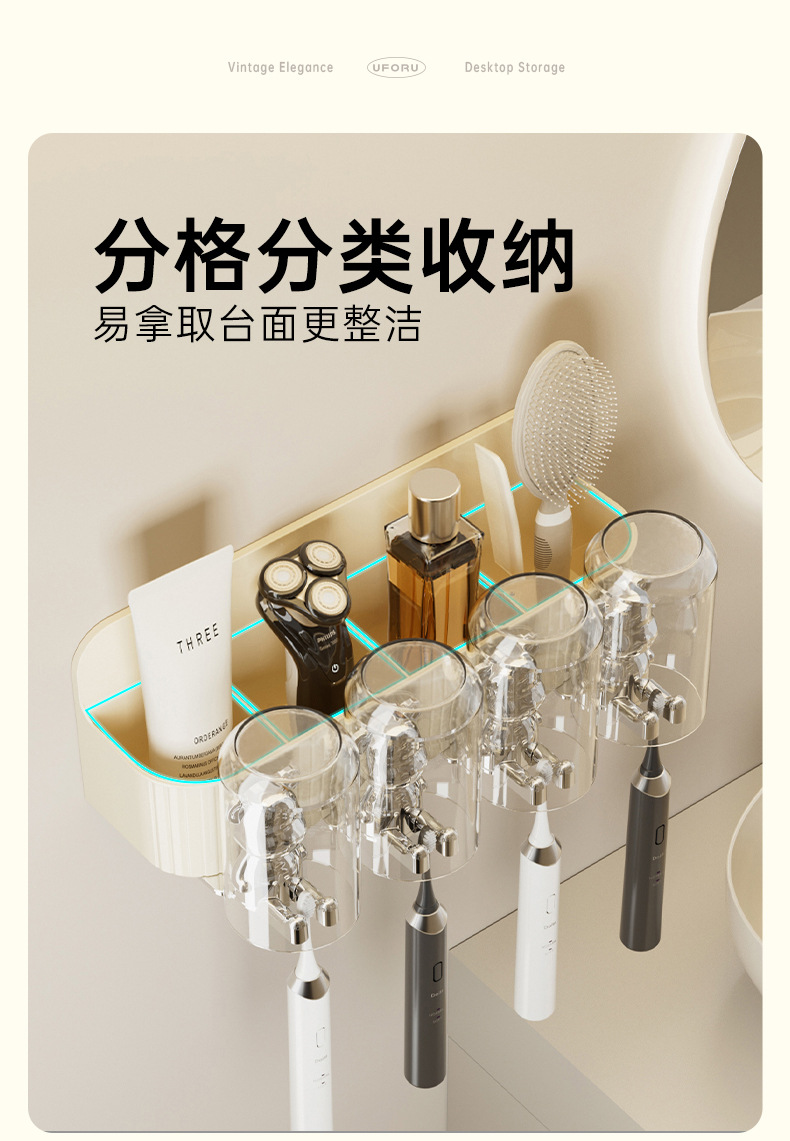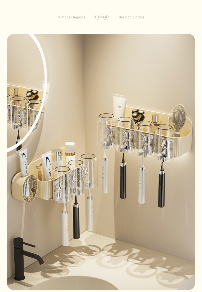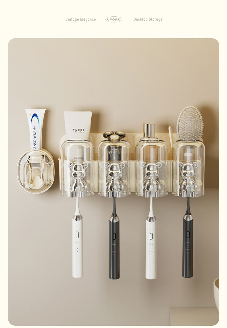 uforu 牙刷杯架壁挂免打孔厕所自动挤牙膏器浴室漱口杯牙刷置物架