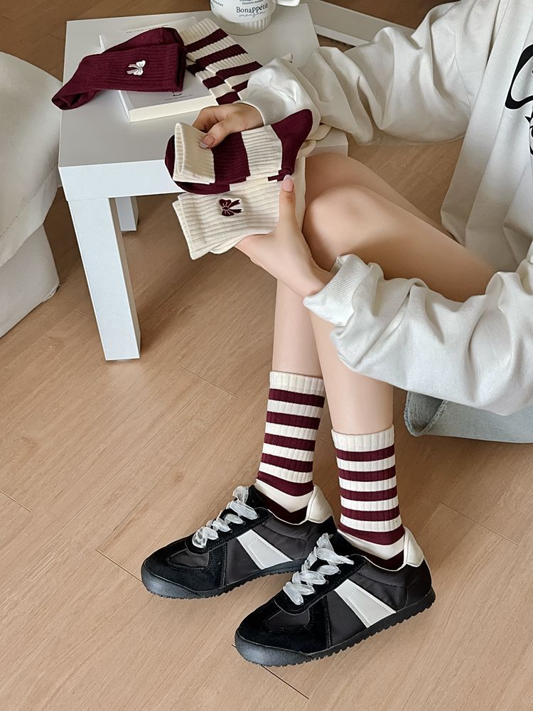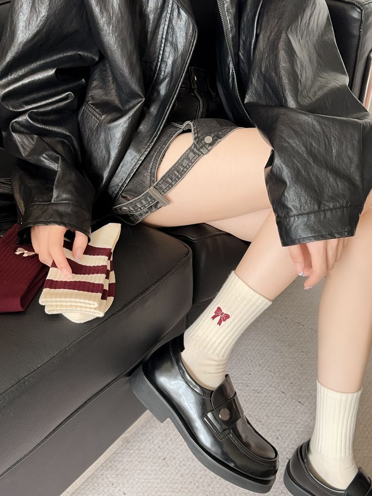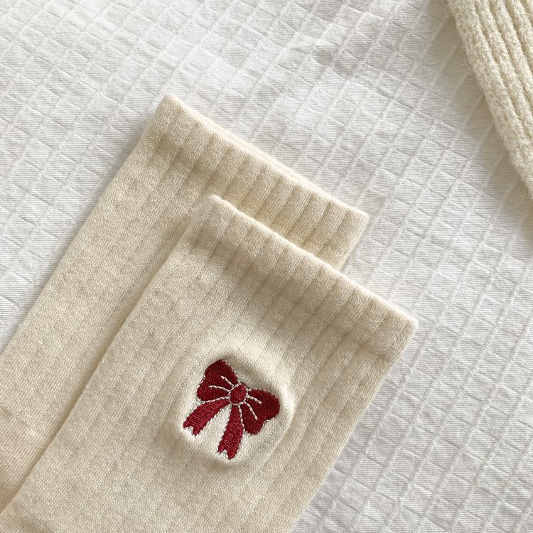 2024新款安哥拉红袜子女中筒袜酒红色秋冬款休闲百搭长筒袜春秋季
