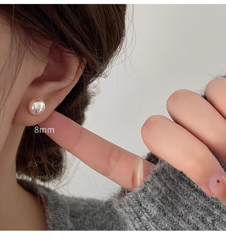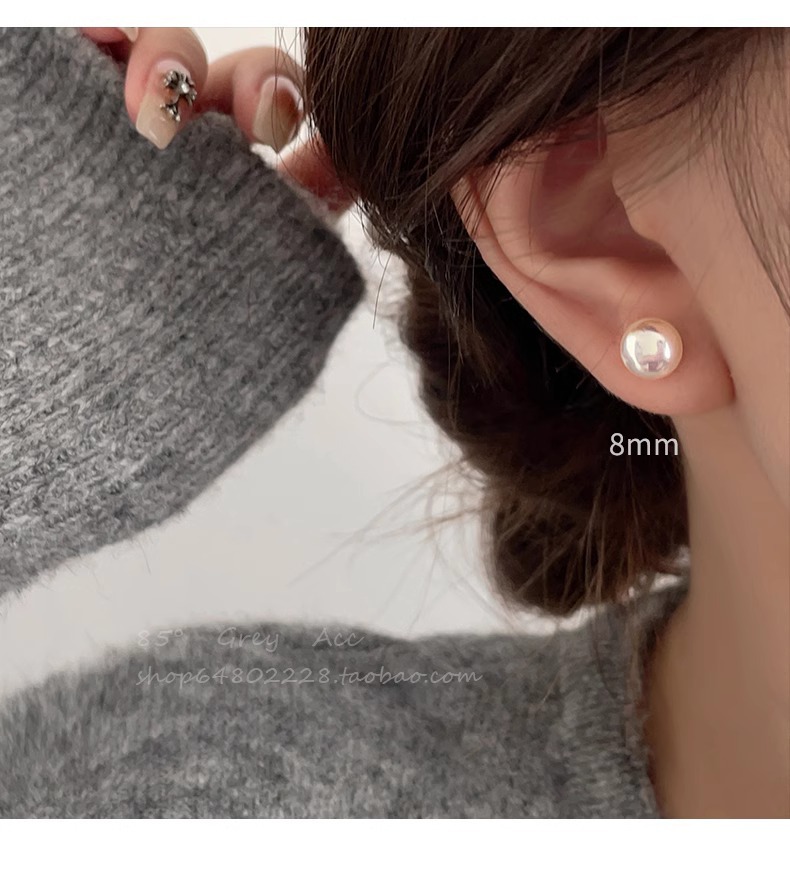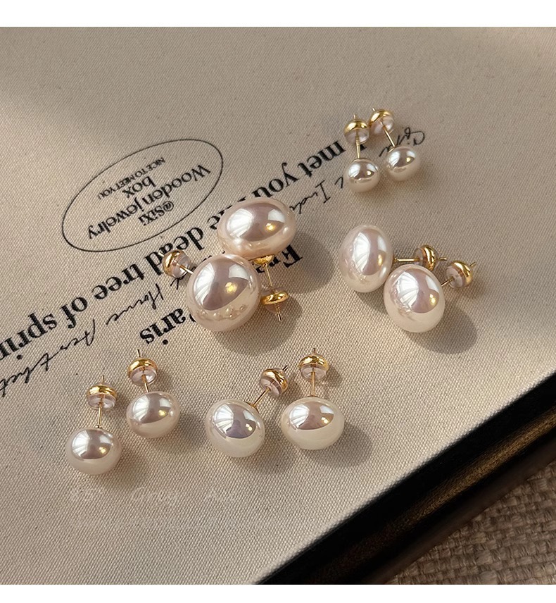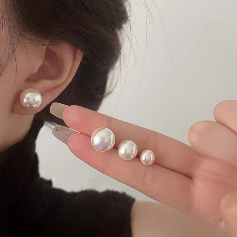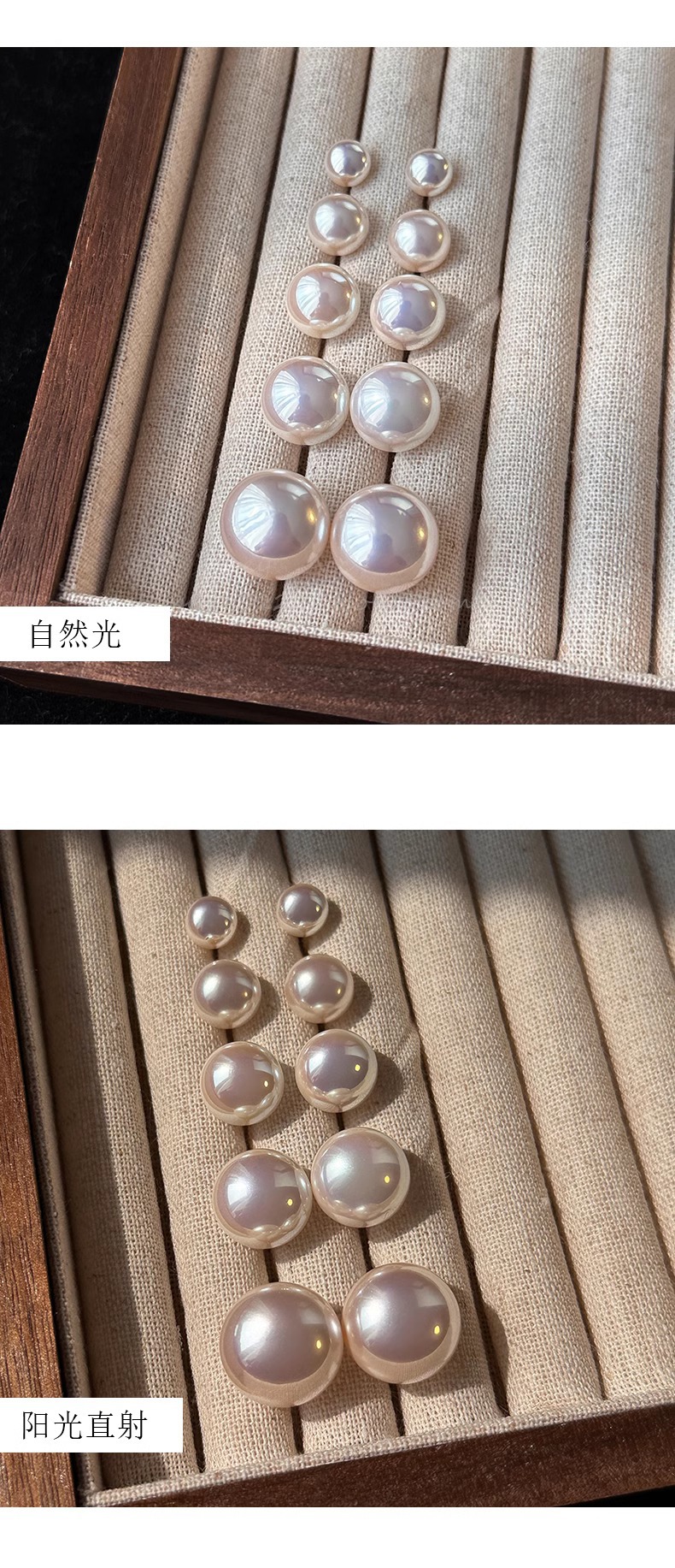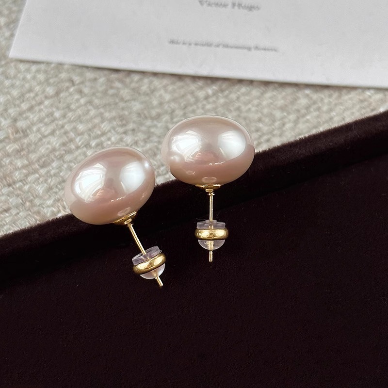 施家馒头粉光珍珠耳钉女925银针轻奢气质耳环2024新款小众耳饰品