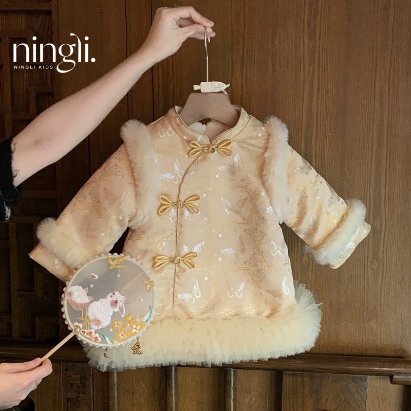 柠里唐装拜年服女童汉服秋冬儿童周岁礼服宝宝喜庆过年衣服中国风
