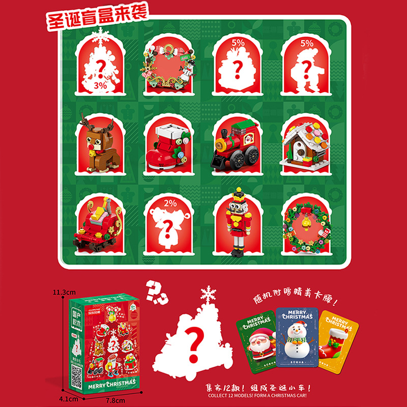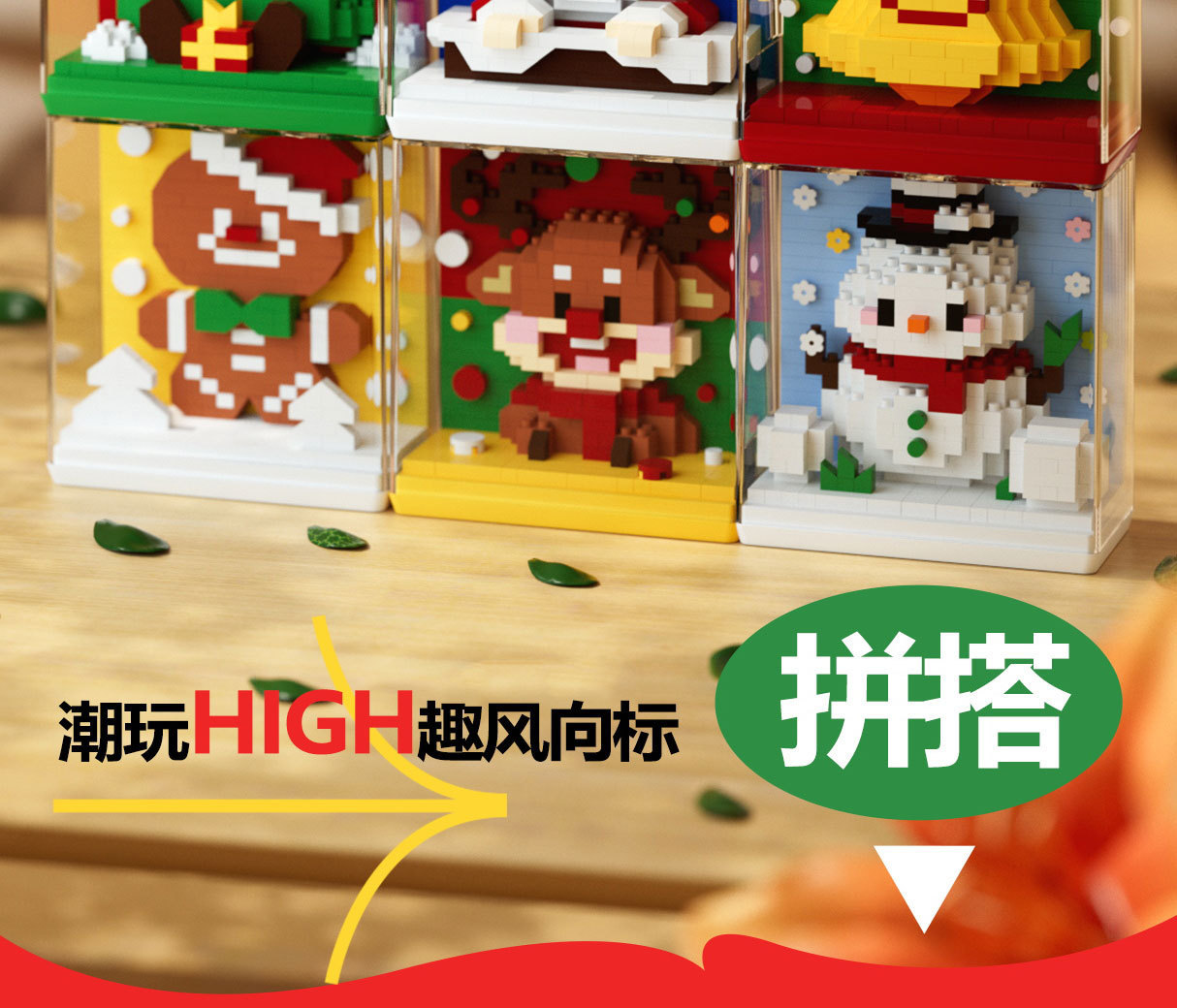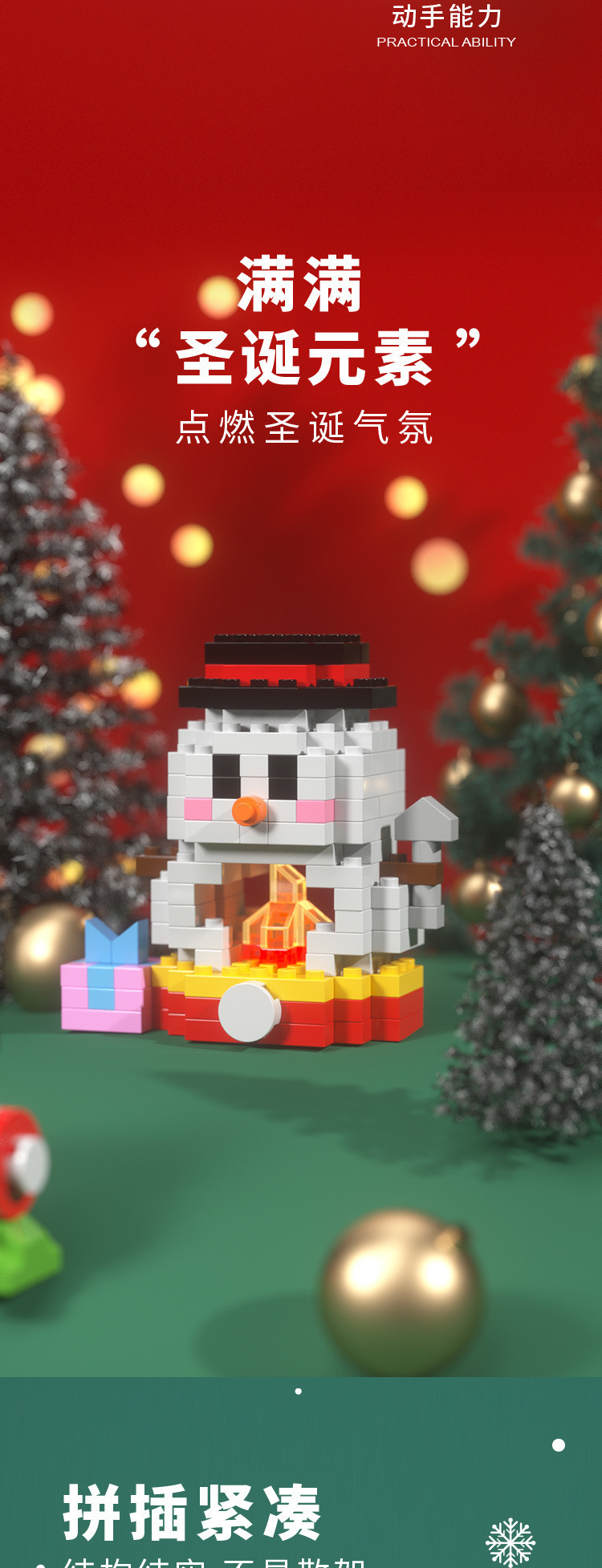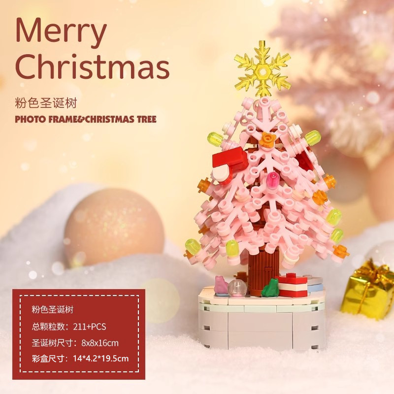 圣诞树八音乐盒拼装积木圣诞老人雪人儿童玩具节日装饰品兼容乐高
