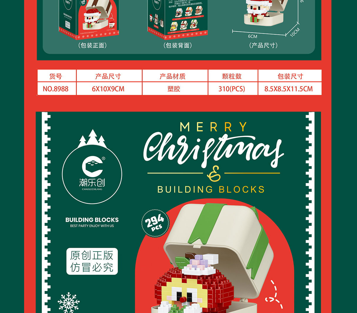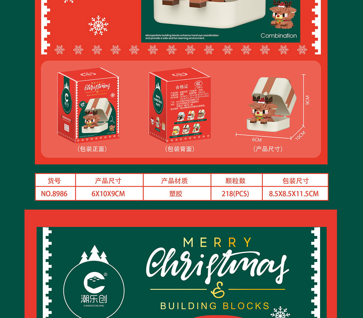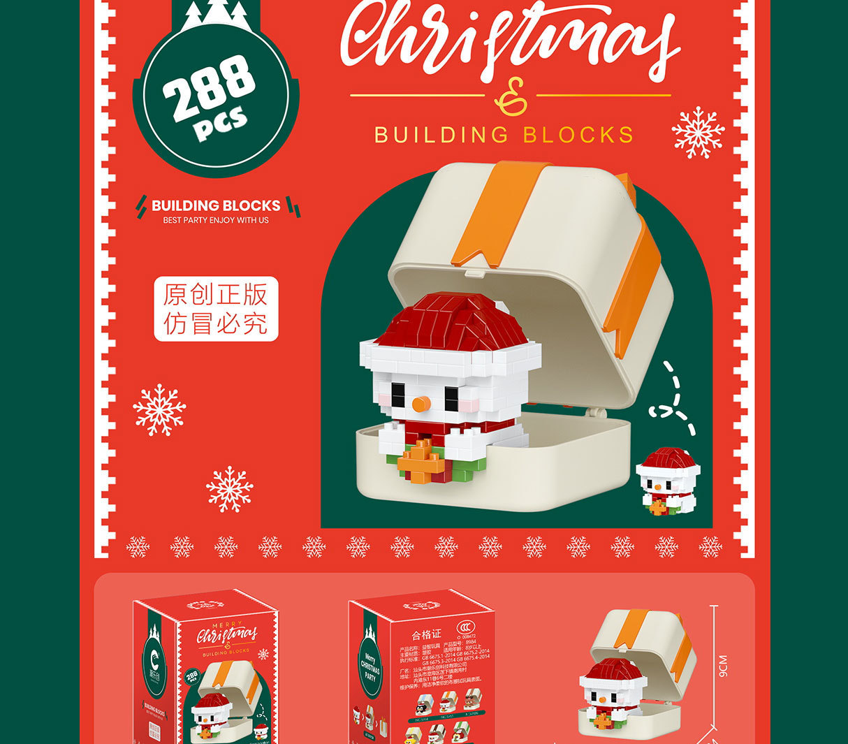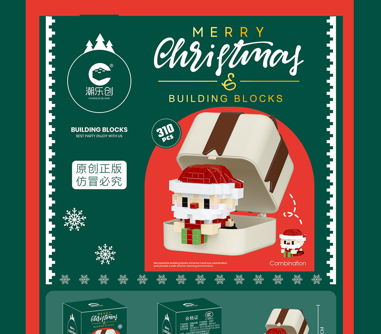 圣诞树八音乐盒拼装积木圣诞老人雪人儿童玩具节日装饰品兼容乐高