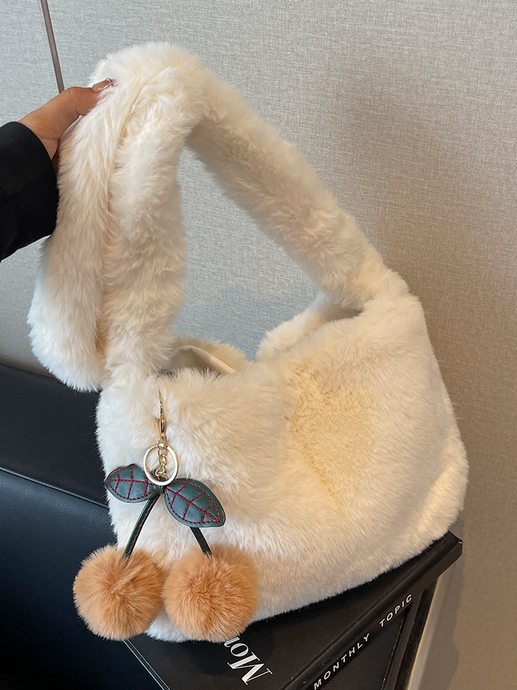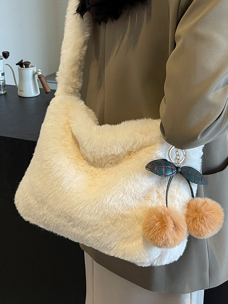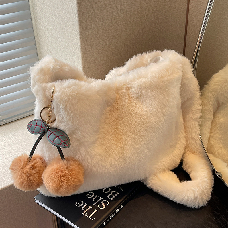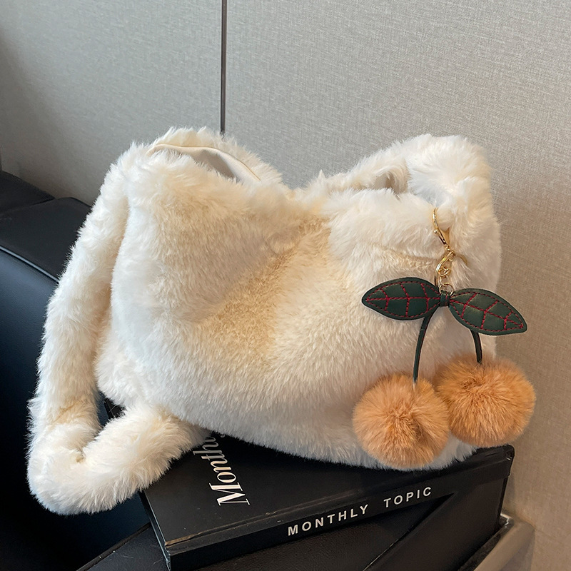 可爱毛绒樱桃包包2024秋冬新款单肩托特包女网红高级毛茸茸斜挎包