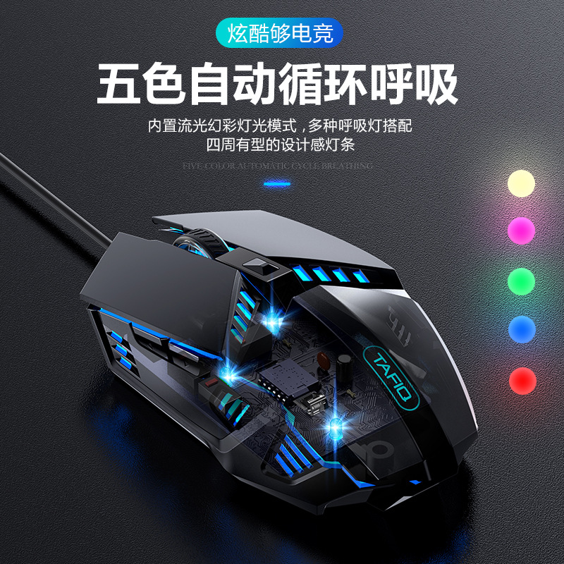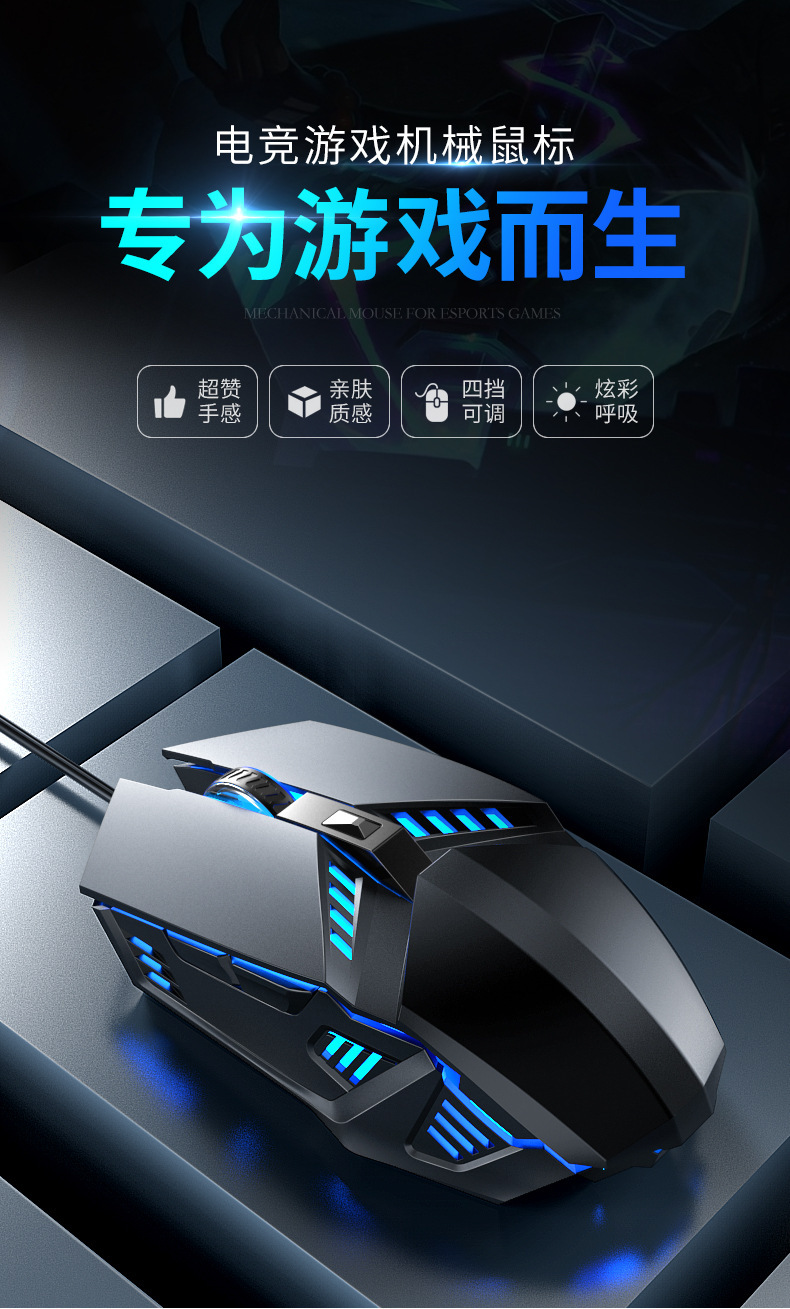 游戏鼠标发光有线电竞机械鼠标电脑配件宏编程六键鼠标跨境批发