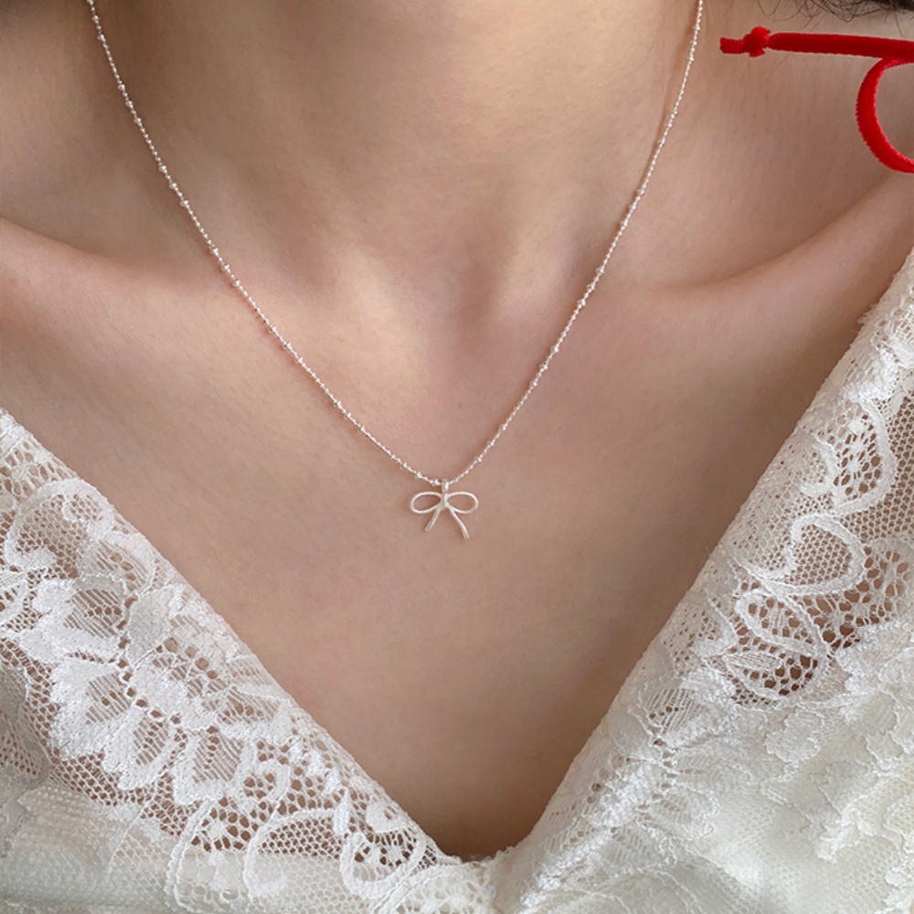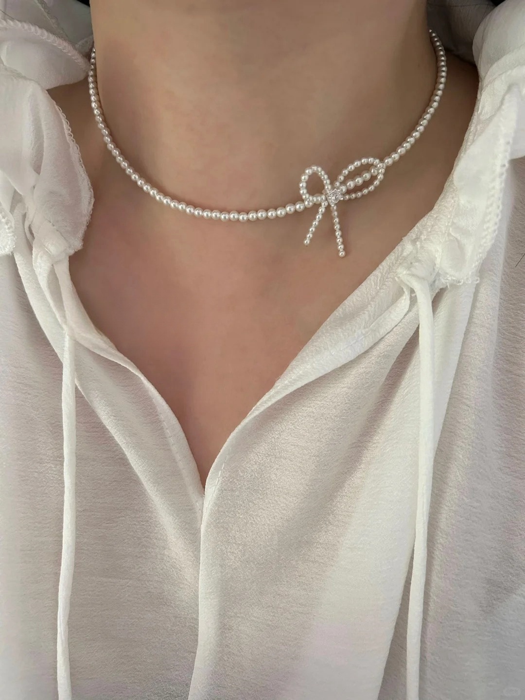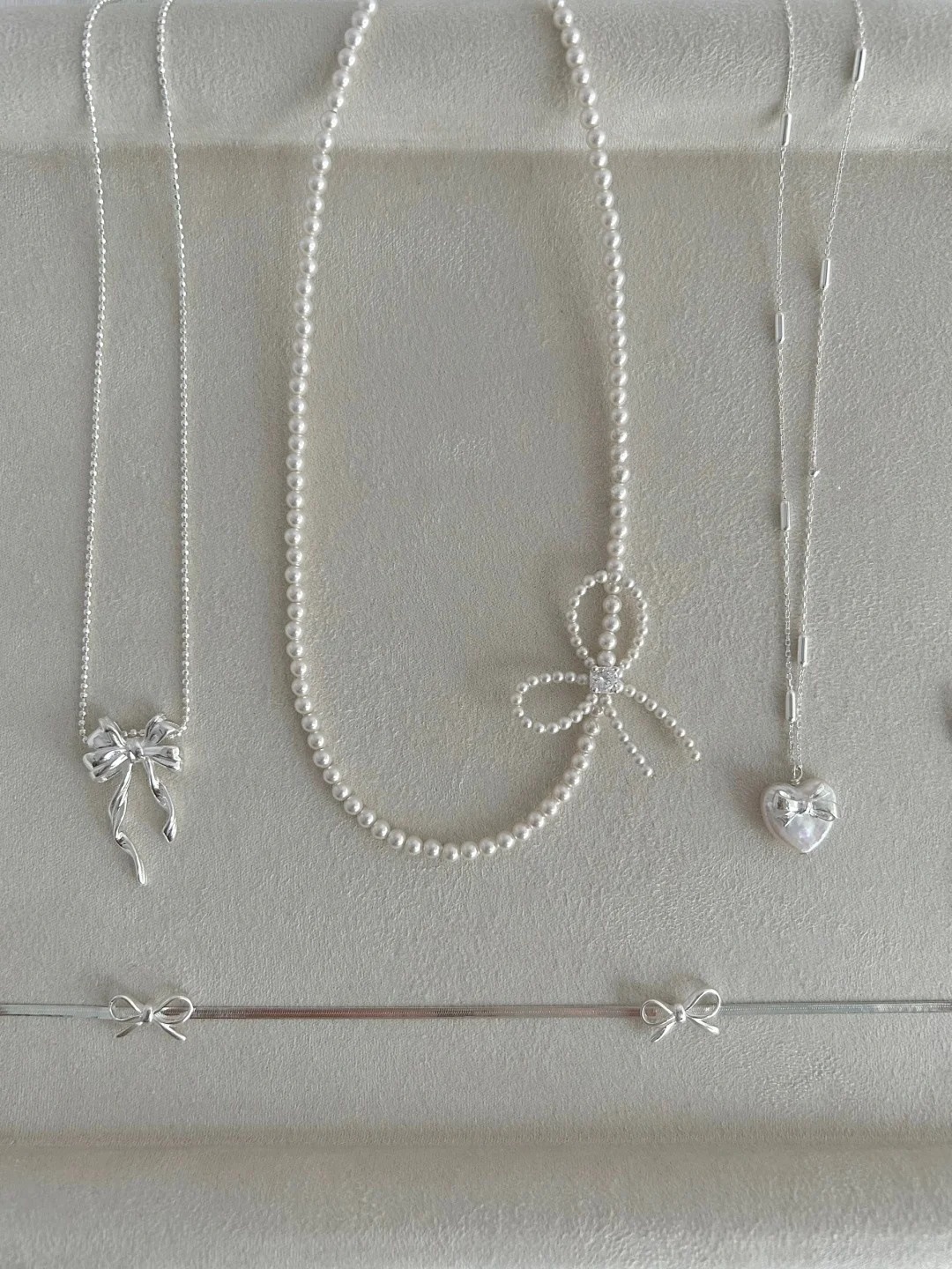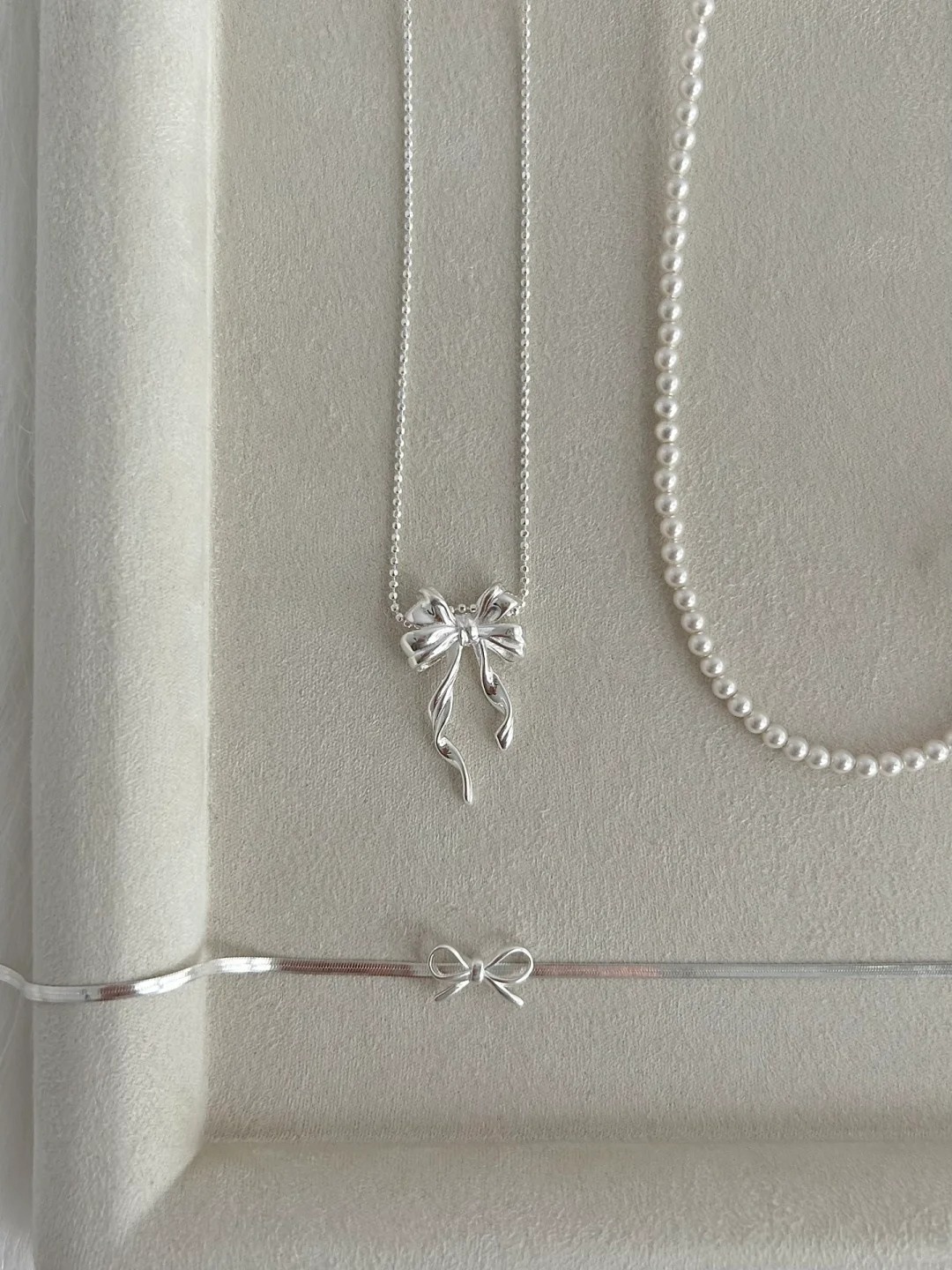 S925纯银珍珠蝴蝶结项链女秋冬新款不掉色女高级感小众百搭毛衣链