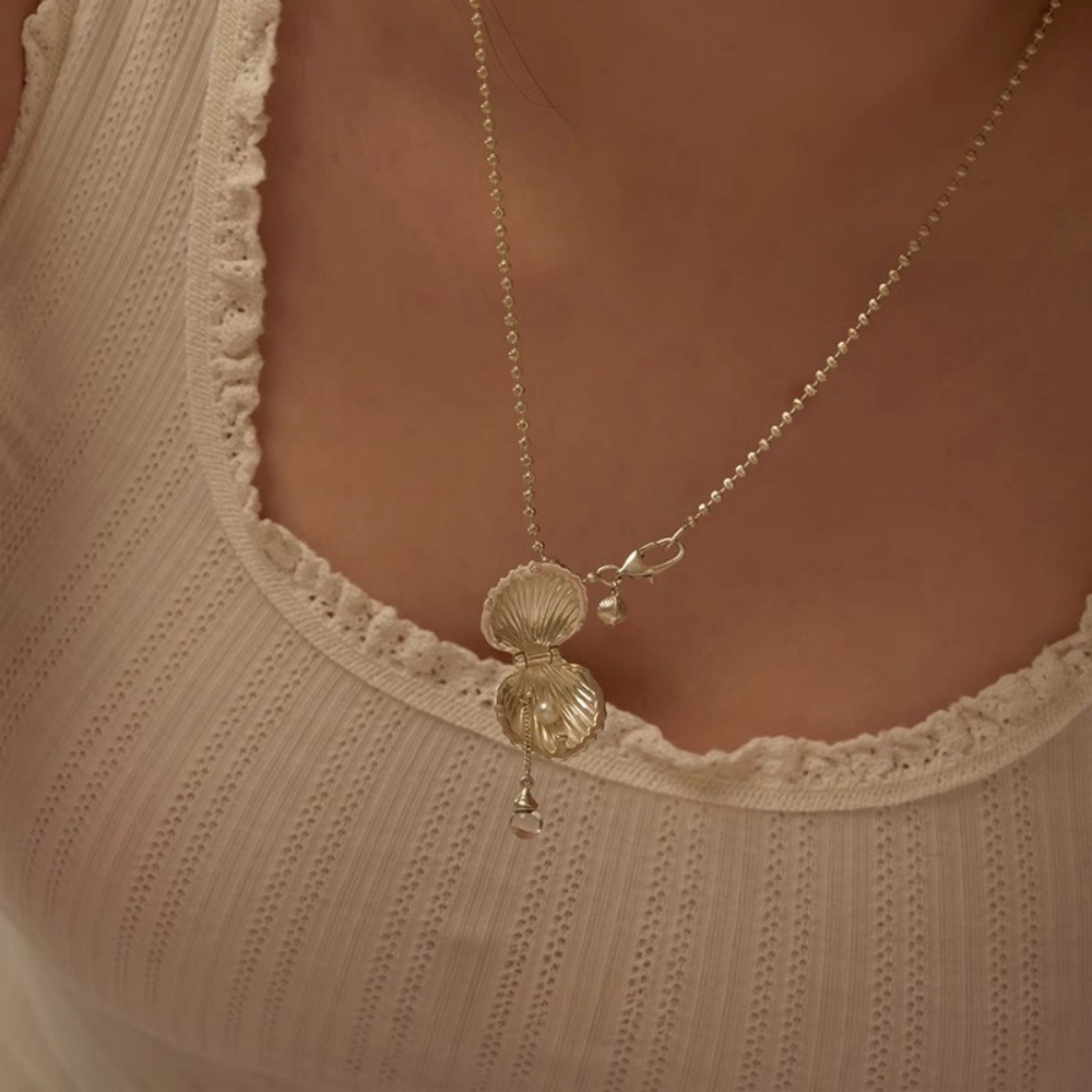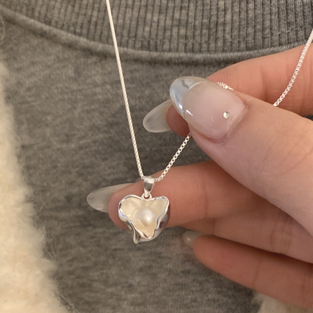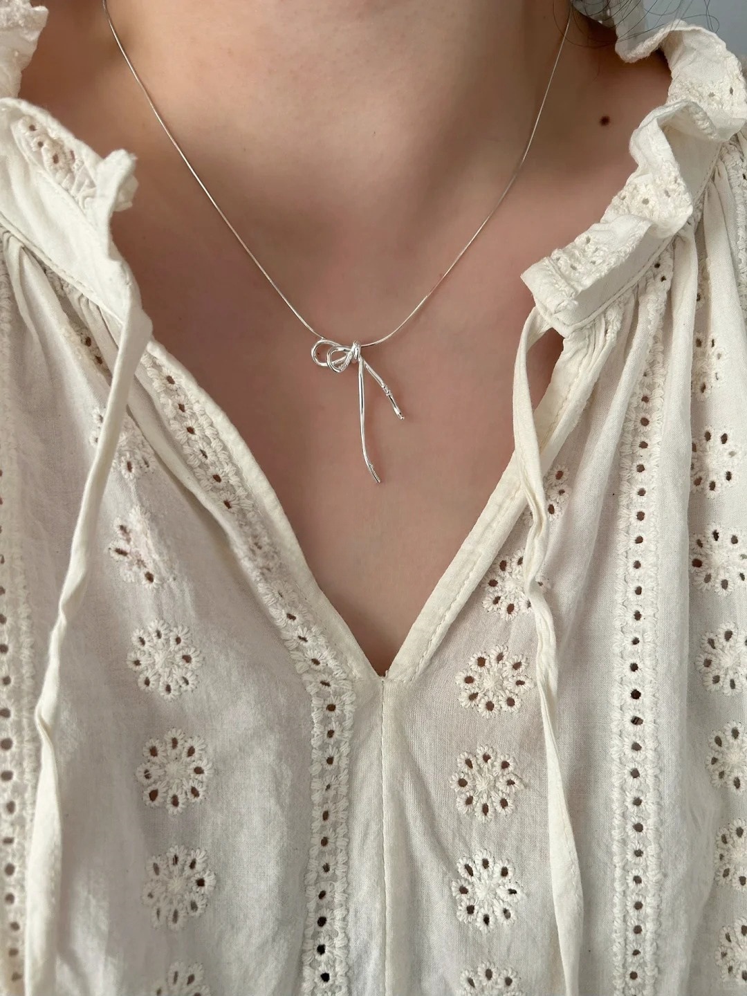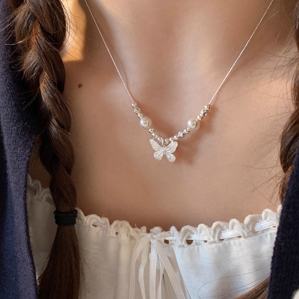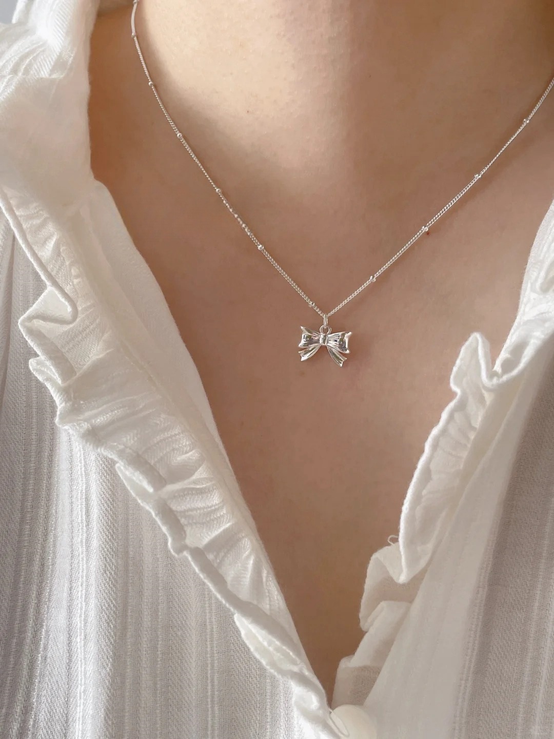 S925纯银珍珠蝴蝶结项链女秋冬新款不掉色女高级感小众百搭毛衣链
