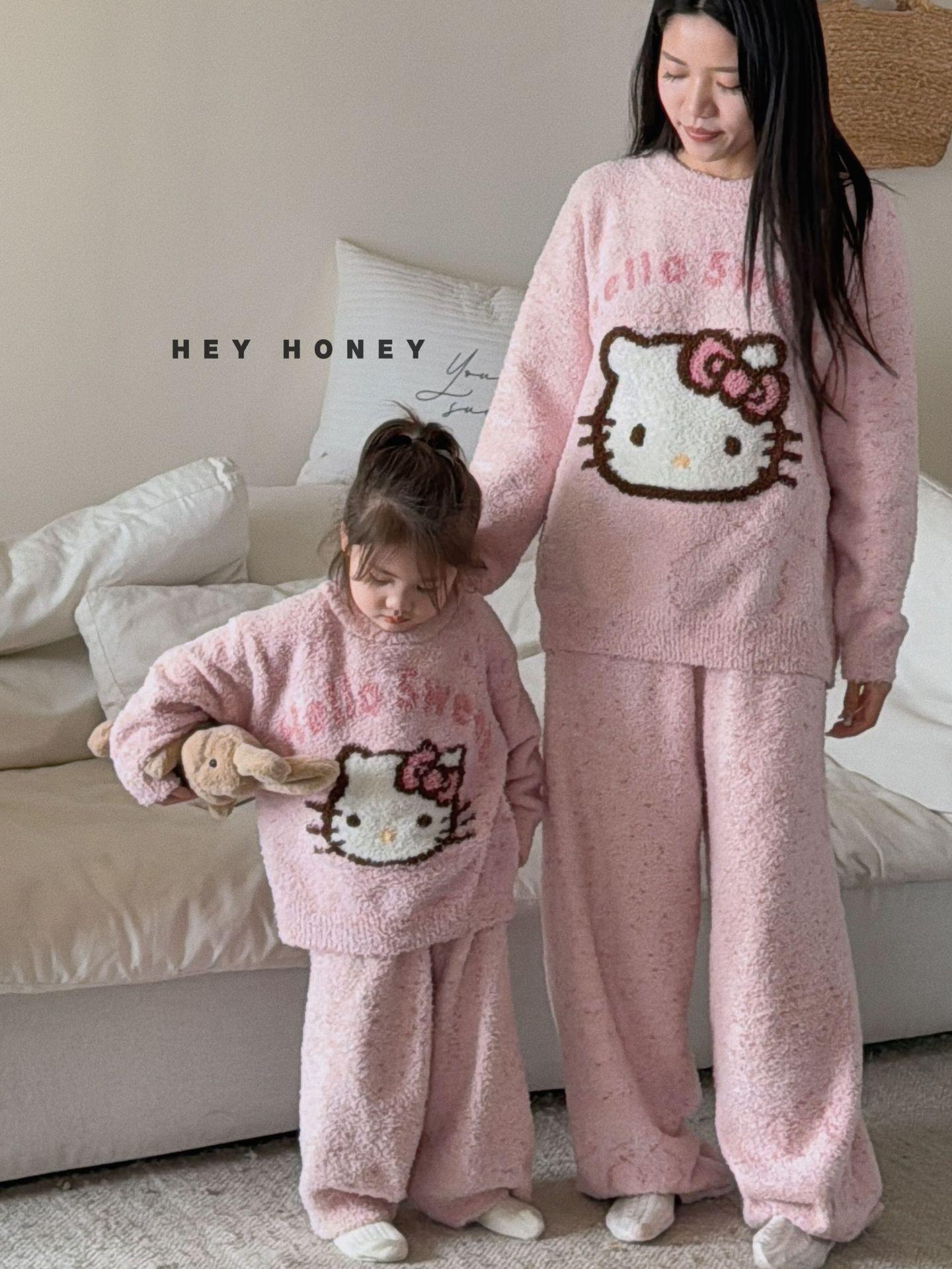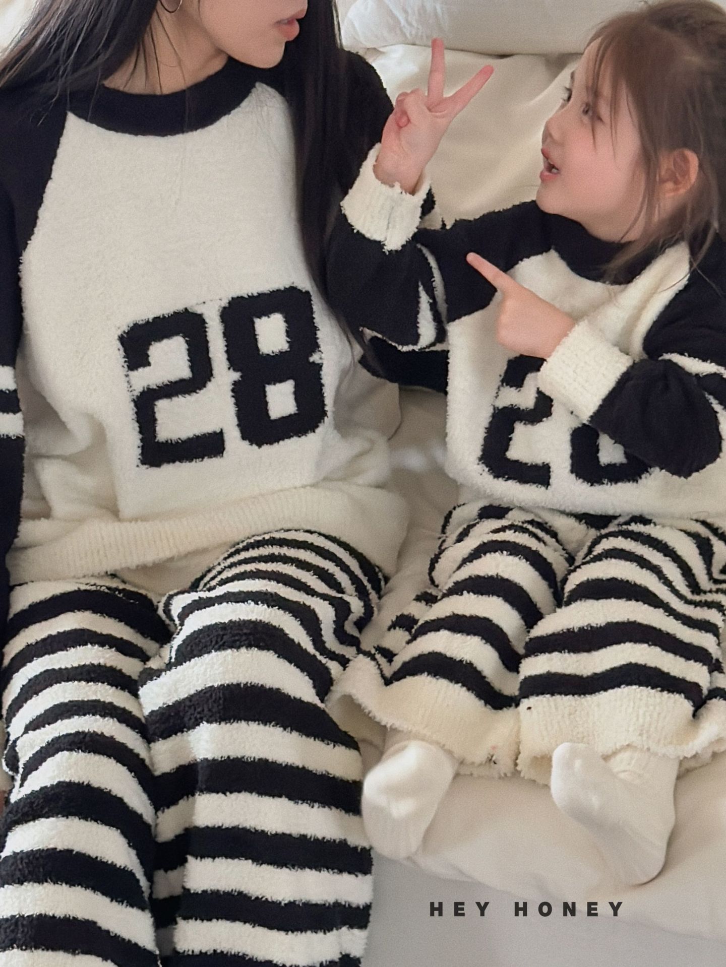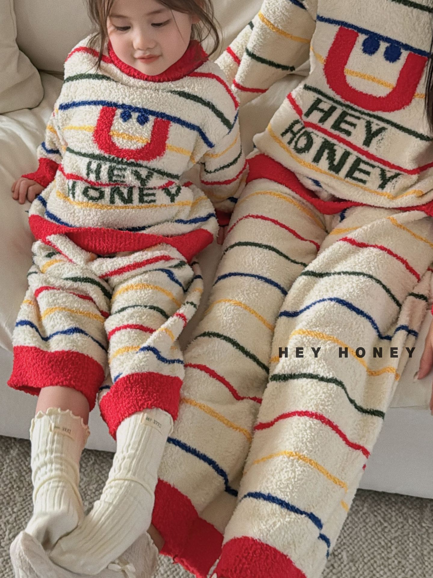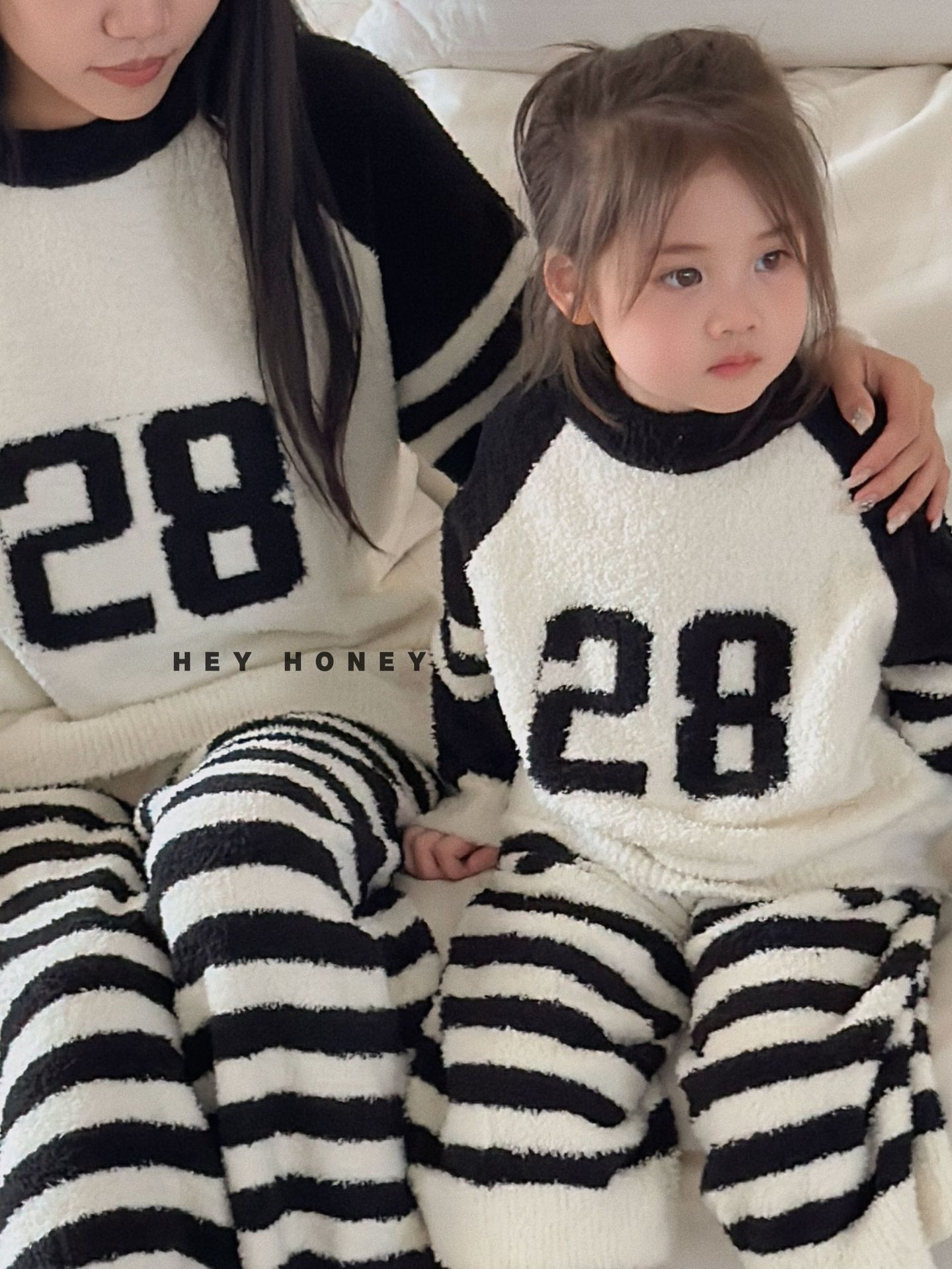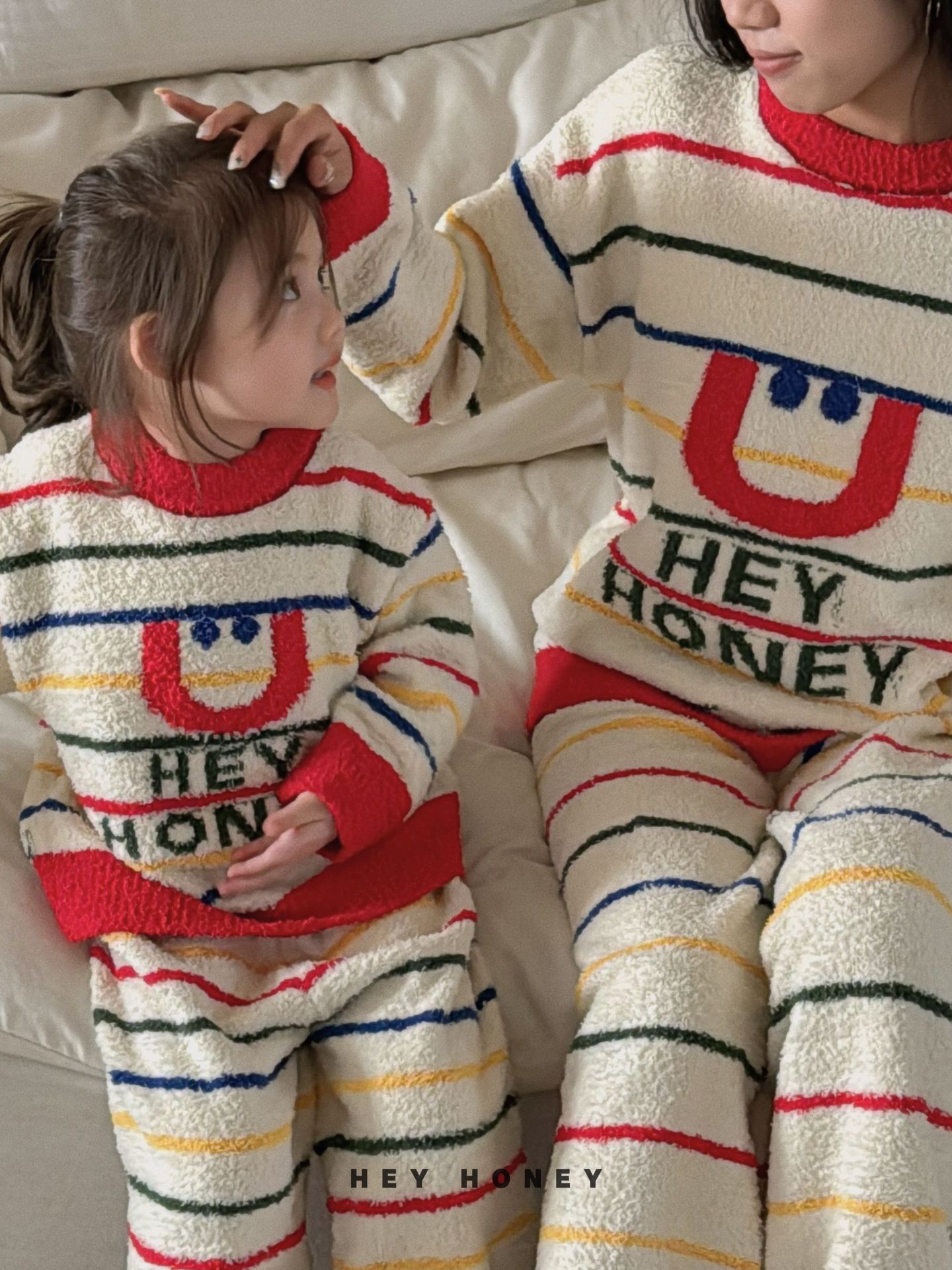 大小卷秋冬季新款半边绒可爱亲子装加厚保暖家居服套装